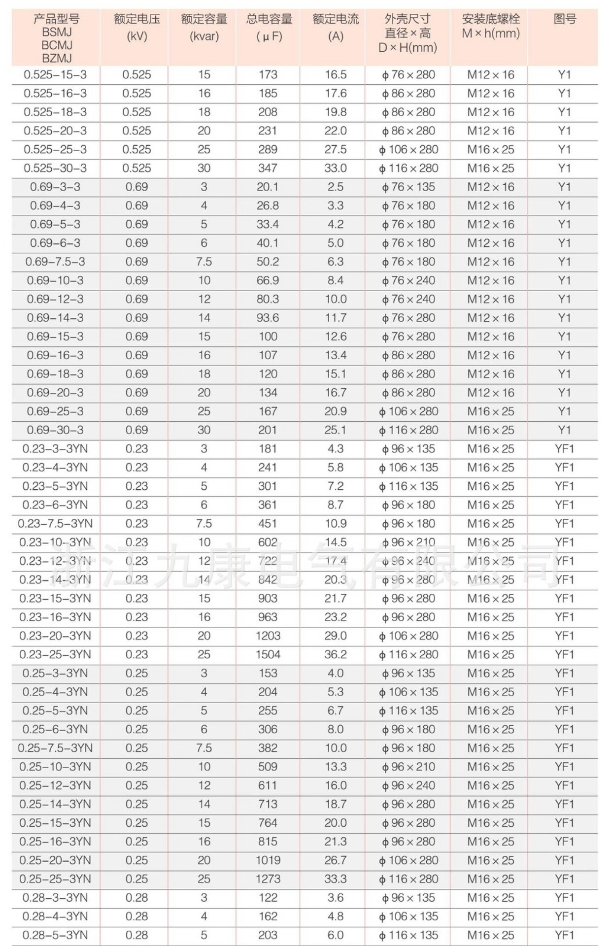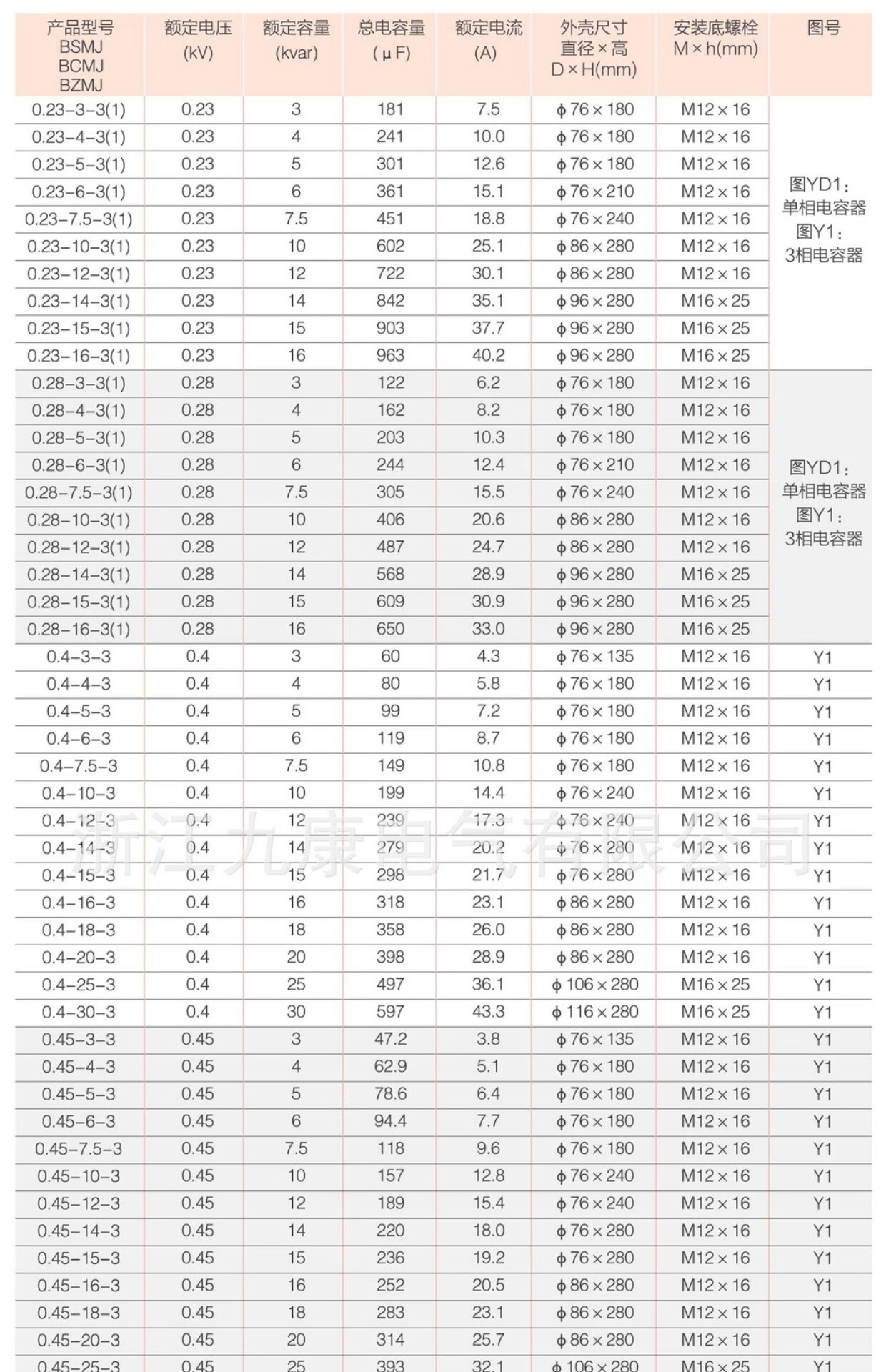 Jiukang Electric BGMJ0.4/0.45/0.48/-15/20/30/40-3 cylindrical low voltage parallel capacitor 045153