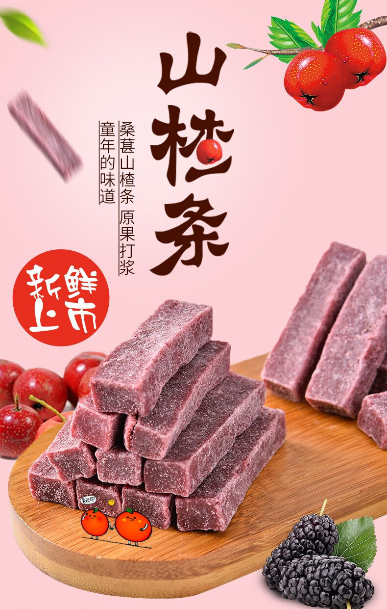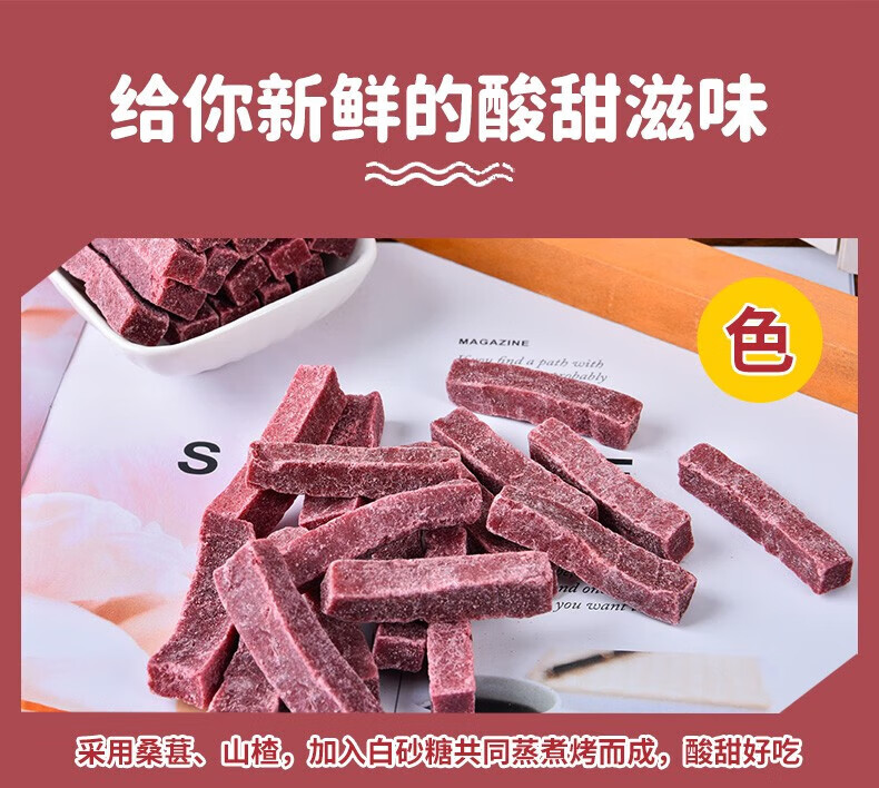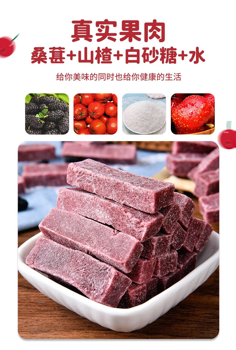Delicious mulberry and hawthorn strips snacks, dried fruits, candied fruit, no added snacks, nutritious and healthy food, mulberry and hawthorn strips 108g 1 bag