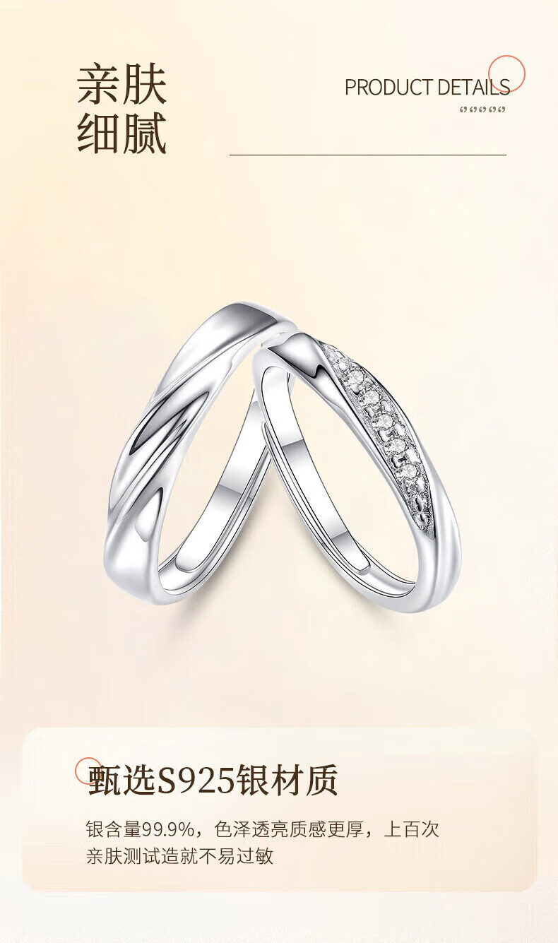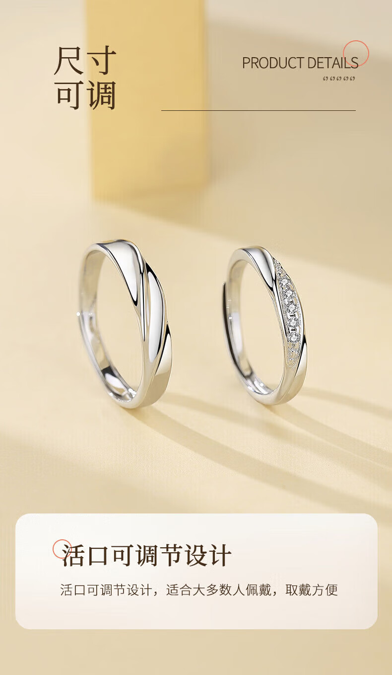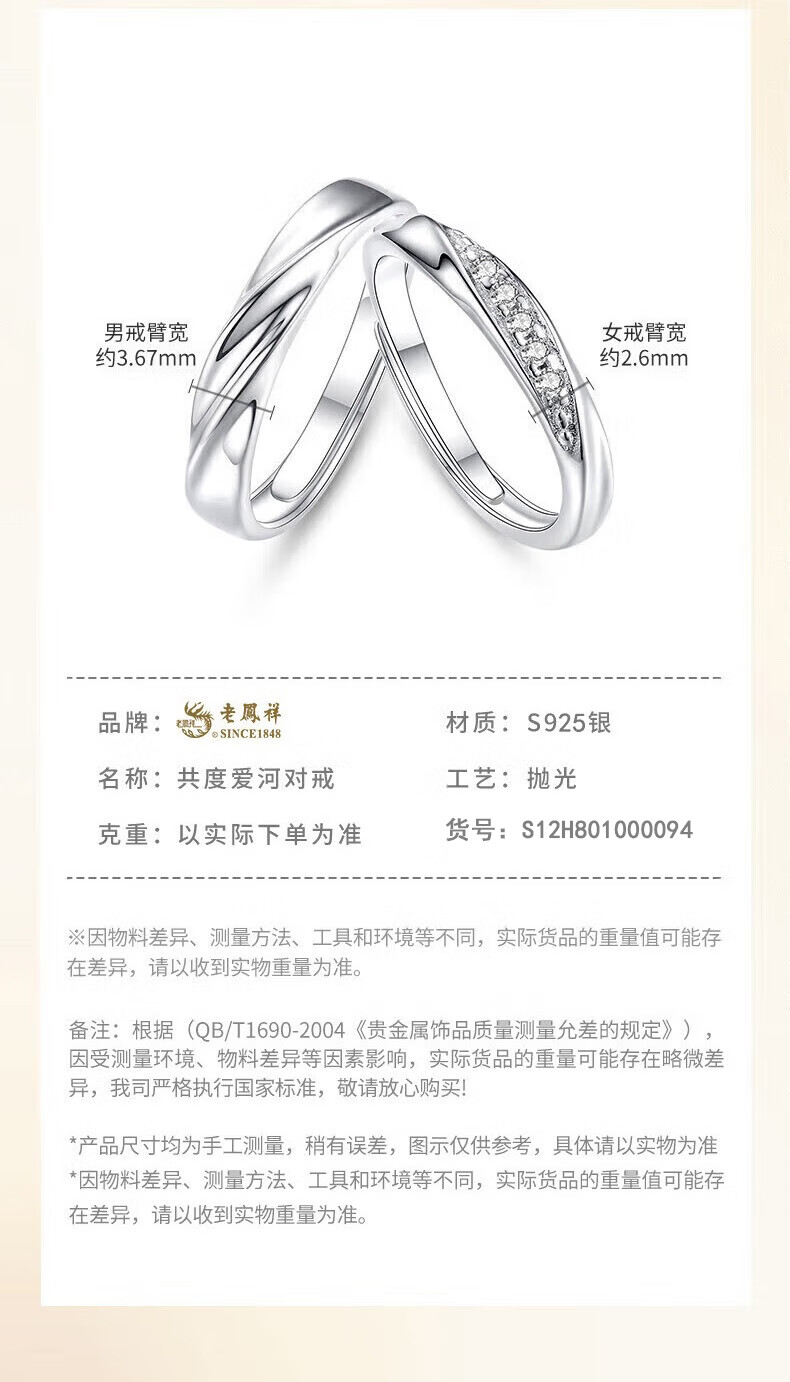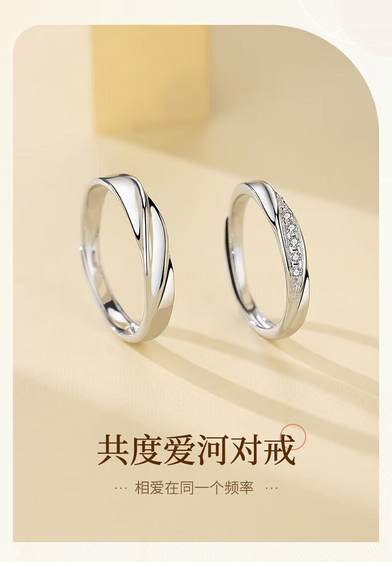 Lao Fengxiang silver ring for women 925 sterling silver Möbius couple's ring Chinese Valentine's Day gift for wife, girlfriend, today/next day delivery Möbius couple's ring