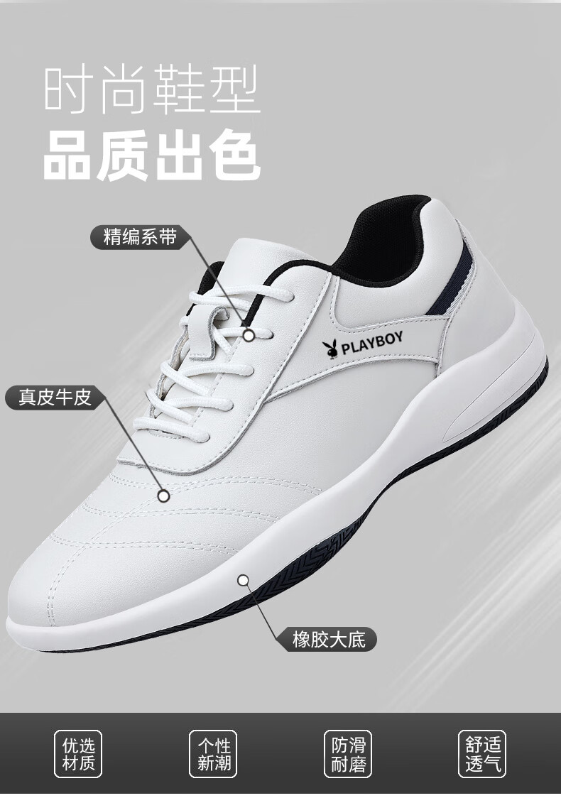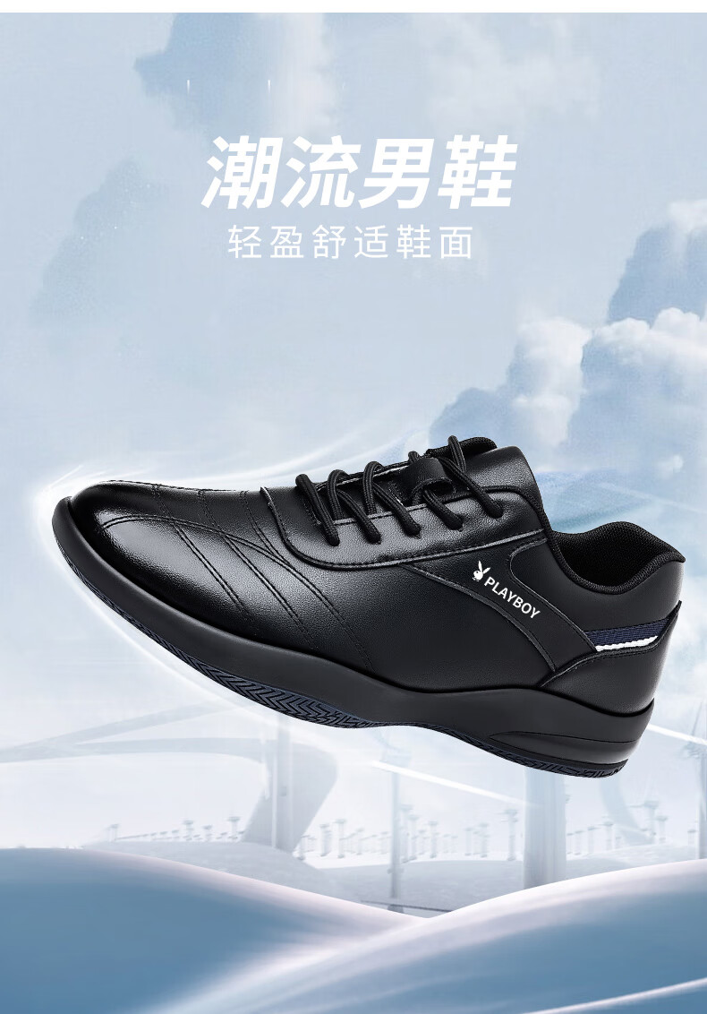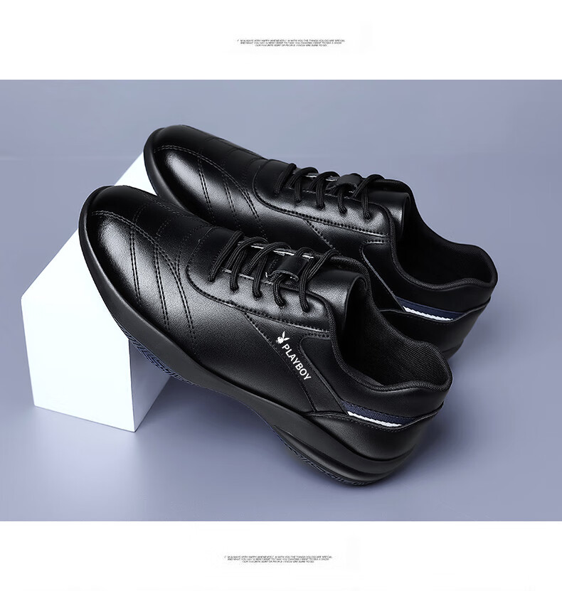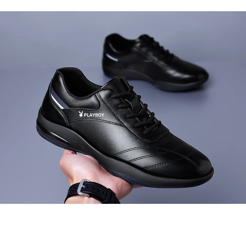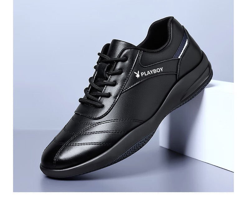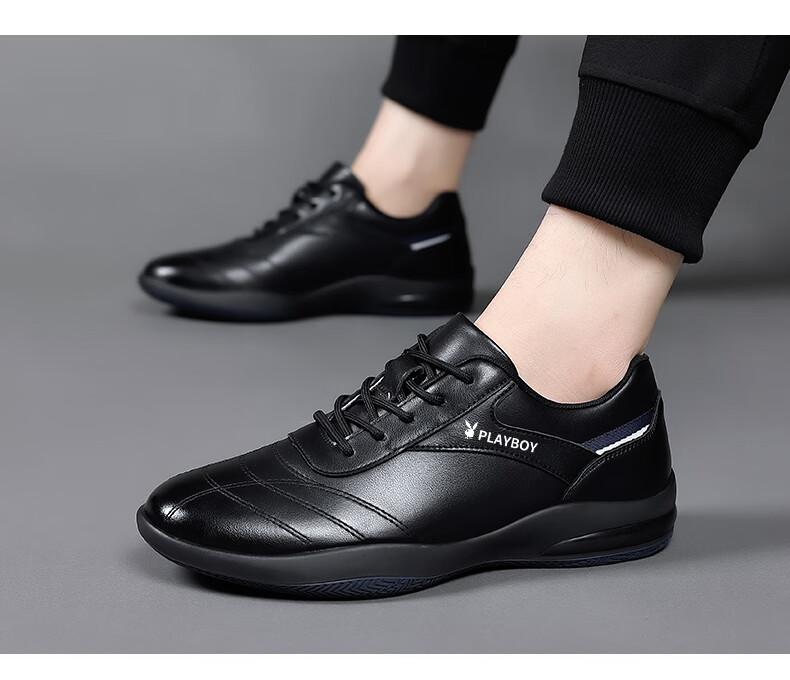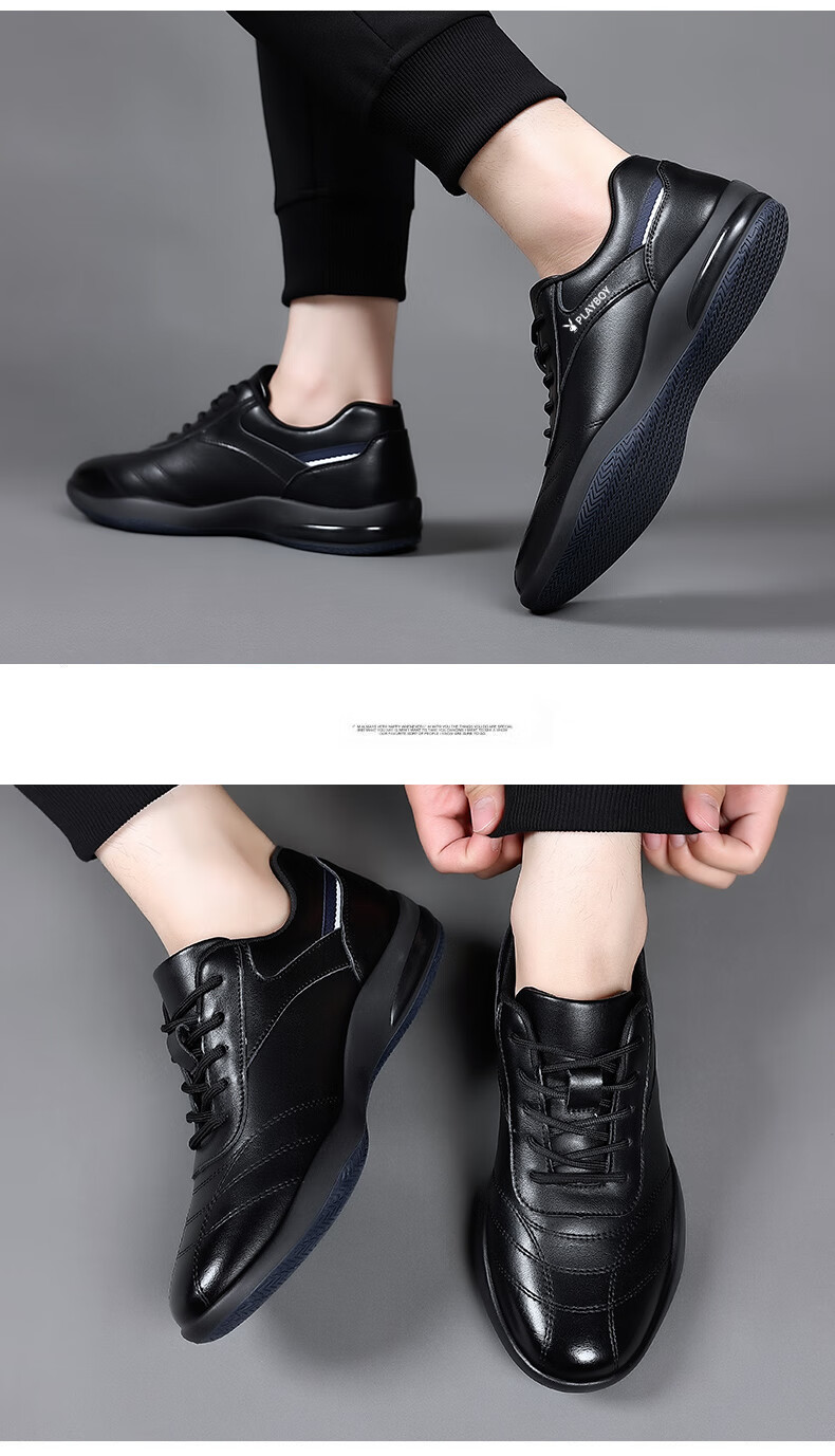 Playboy Men's Shoes 2025 Autumn and Winter New Casual Business Trendy Leather Shoes Men's Fashion Versatile Sports Casual Shoes Men HHGZ-9873 Black 41