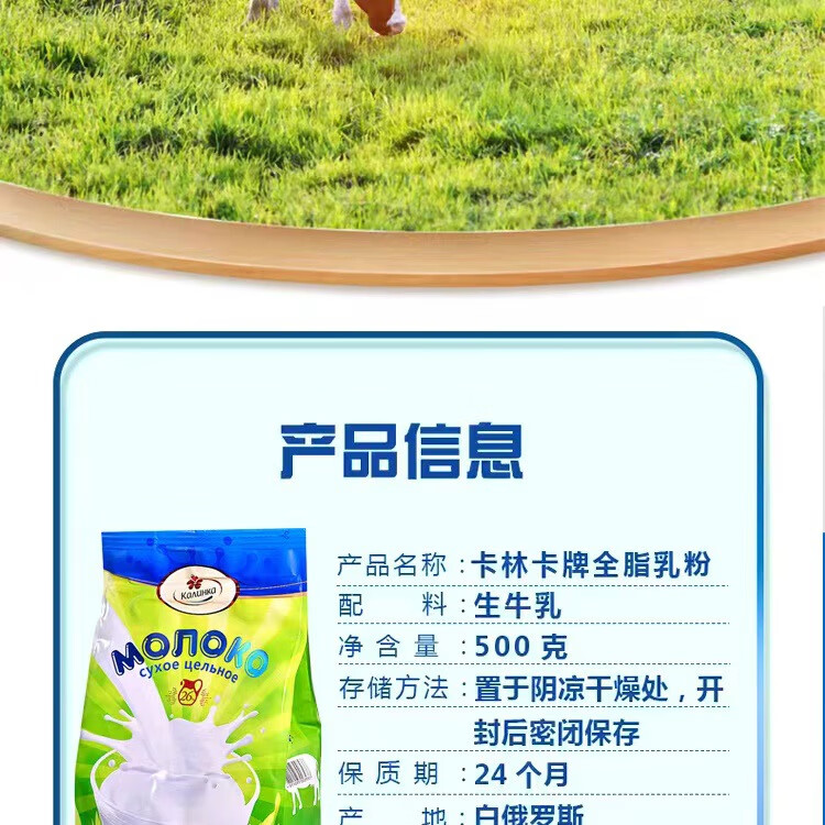 Kalinka Belarus Skimmed Milk Powder Kalinka brand sucrose-free nutritious light food drink fitness food 500g whole milk powder