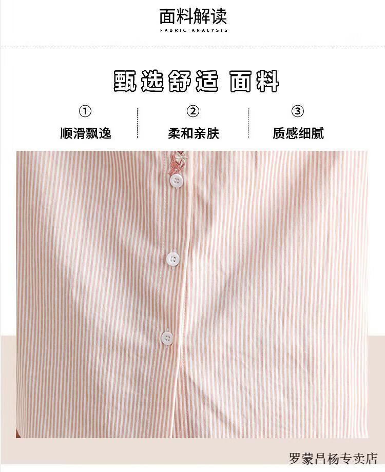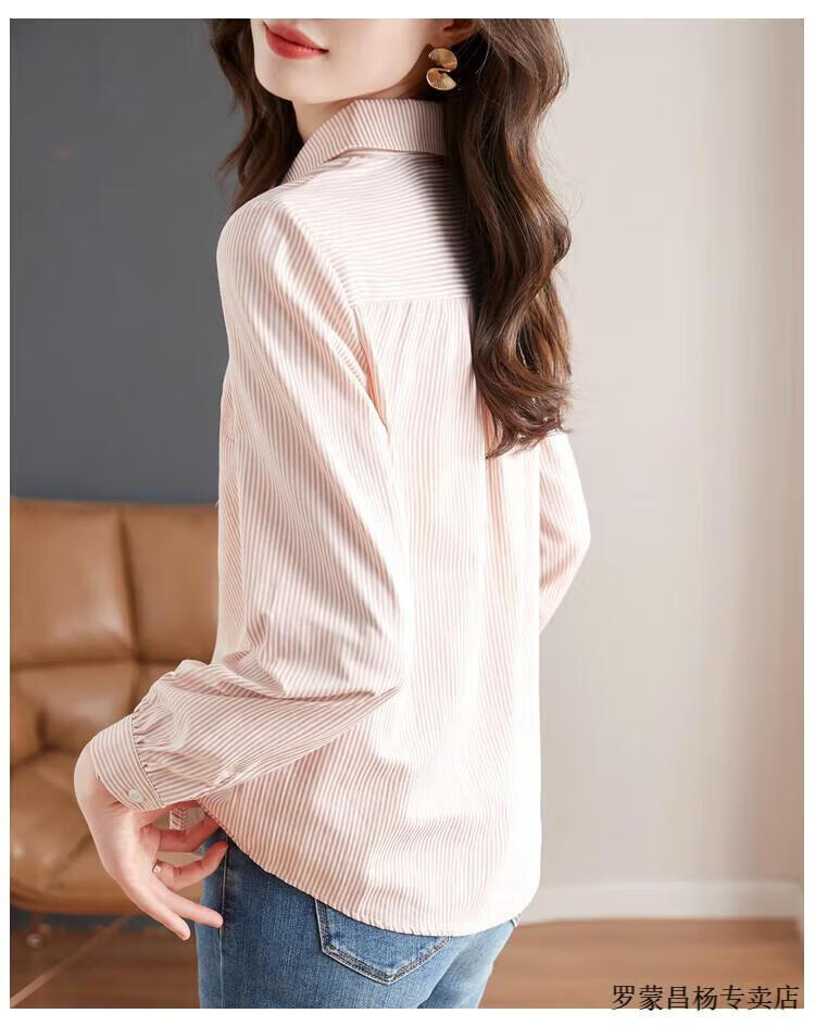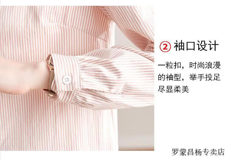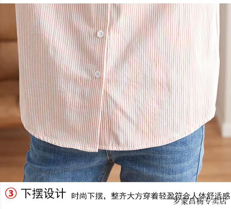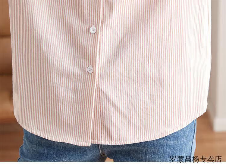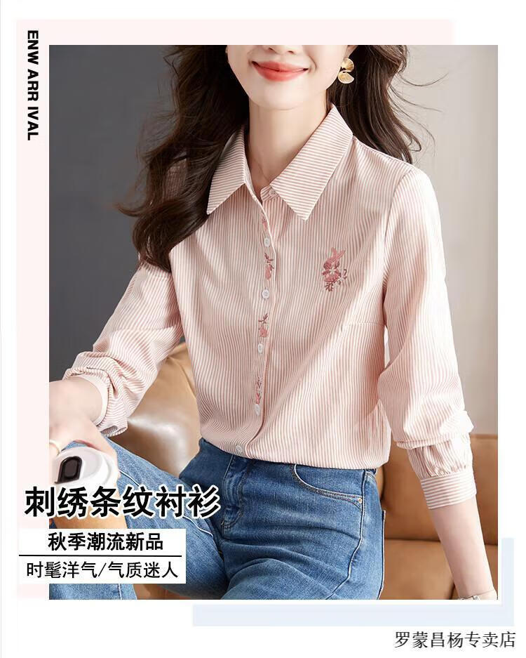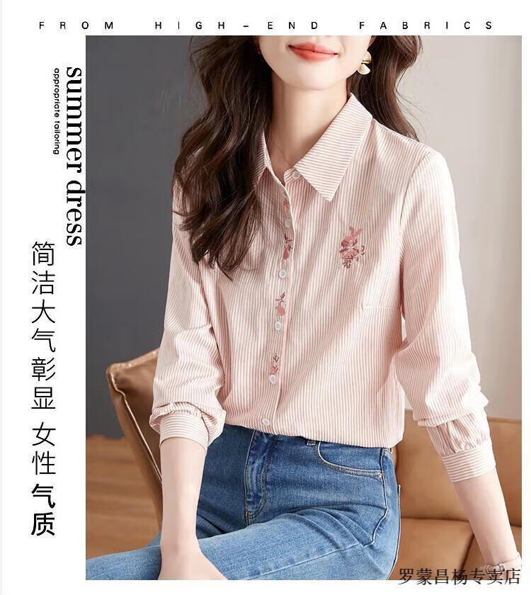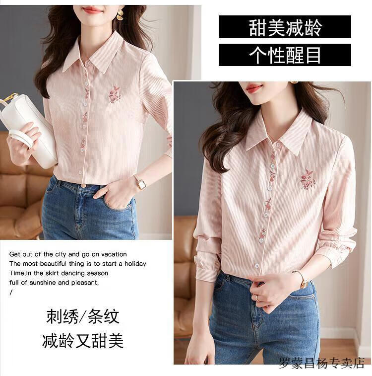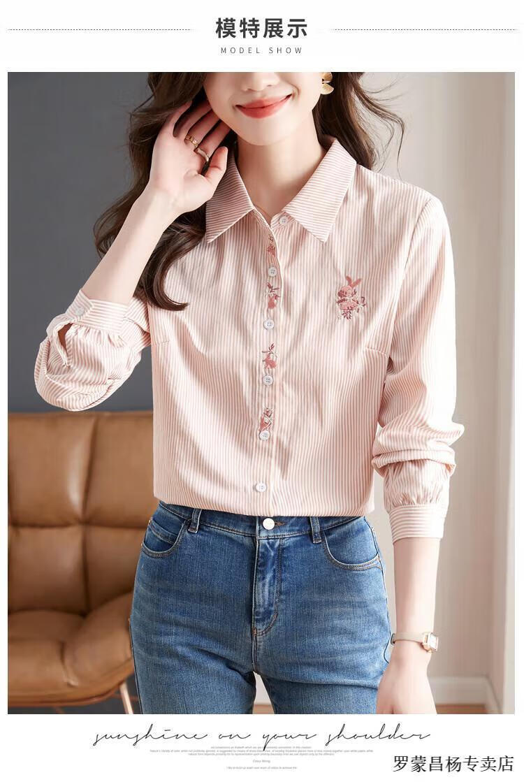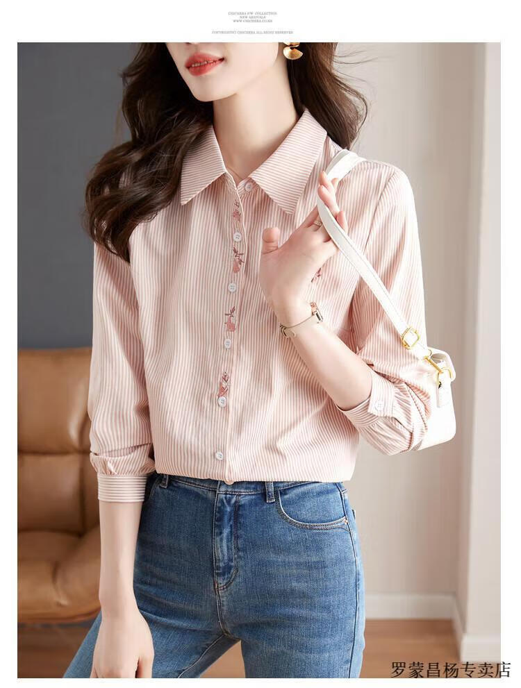ROMON cotton striped embroidered shirt women's single-breasted shirt 2026 autumn new loose and versatile top pink L (recommended 100-110Jin Jin equals 0.5 kg)