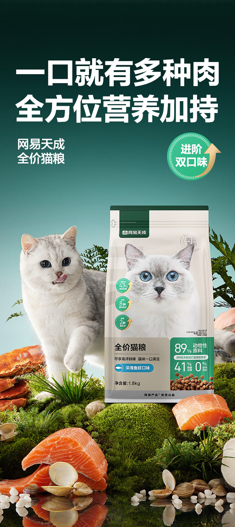 NetEase carefully selects Tiancheng full price cat food for kittens and adult cats, fresh meat, grain-free nutrition 40 series 4.0 full price cat food 3.6Jin Jin equal to 0.5kg - Wild poultry flavor 1 pack