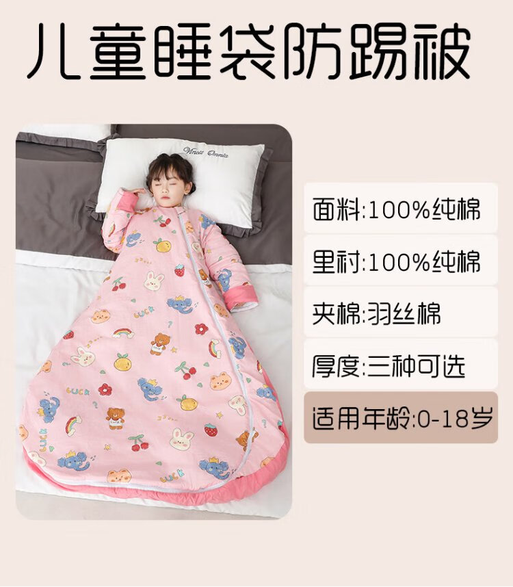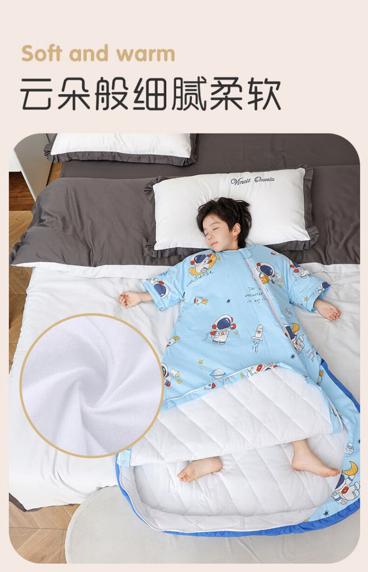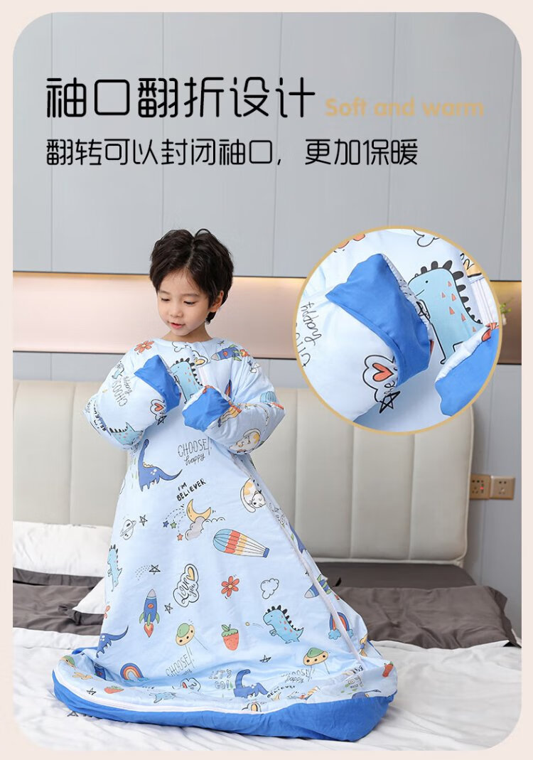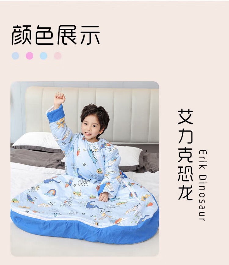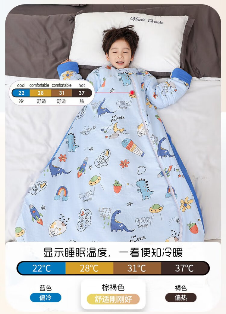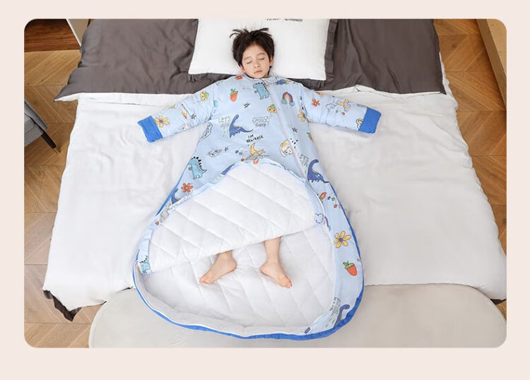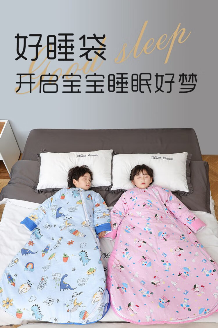 Linglingzhu Pure Cotton Children's Sleeping Bag Anti-kicking Quilt for Big Children 6-12 Years Old 3-6 Years Old 5-10 Years Old Spring Autumn and Winter Eric Dinosaur (Upgraded Intelligent Temperature Sensing) 145cm Autumn and Winter Thickened 5-15 6-12 Years Old