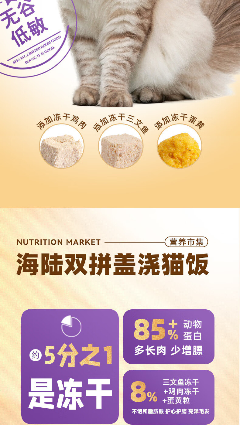 Naughty and naughty grain-free cat food 10kg freeze-dried 3-pack fattening gill salmon freeze-dried beautiful coat hypoallergenic full-price cat 3-pack freeze-dried cat food (4 kinds of meat source ratio 4Jin Jin equals 0.5kg *1 bag