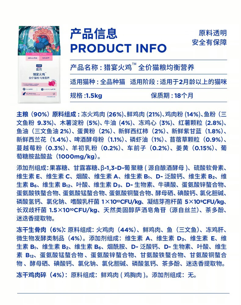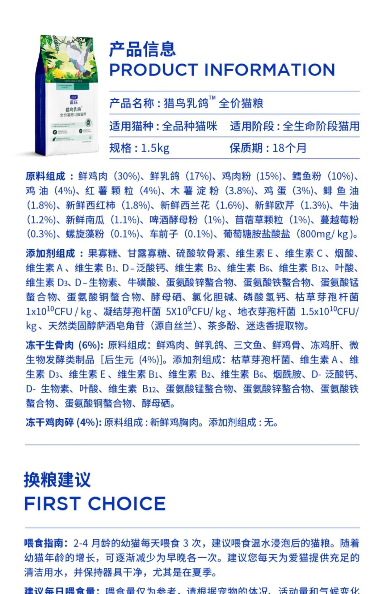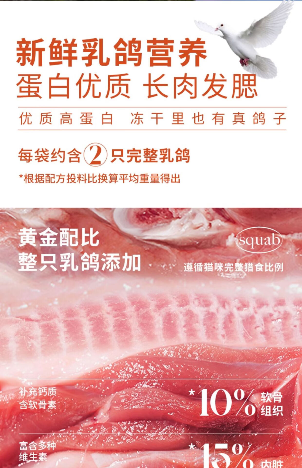 Lang's Lang's Cat Food Hunting Birds and Squabs Wilderness Rabbit Hunting Full Price Freeze-Dried Raw Bone Meat Kittens and Adult Cats Universal Cat Food 1.5kg Hunting Birds and Squabs Special for Kittens 1 Pack