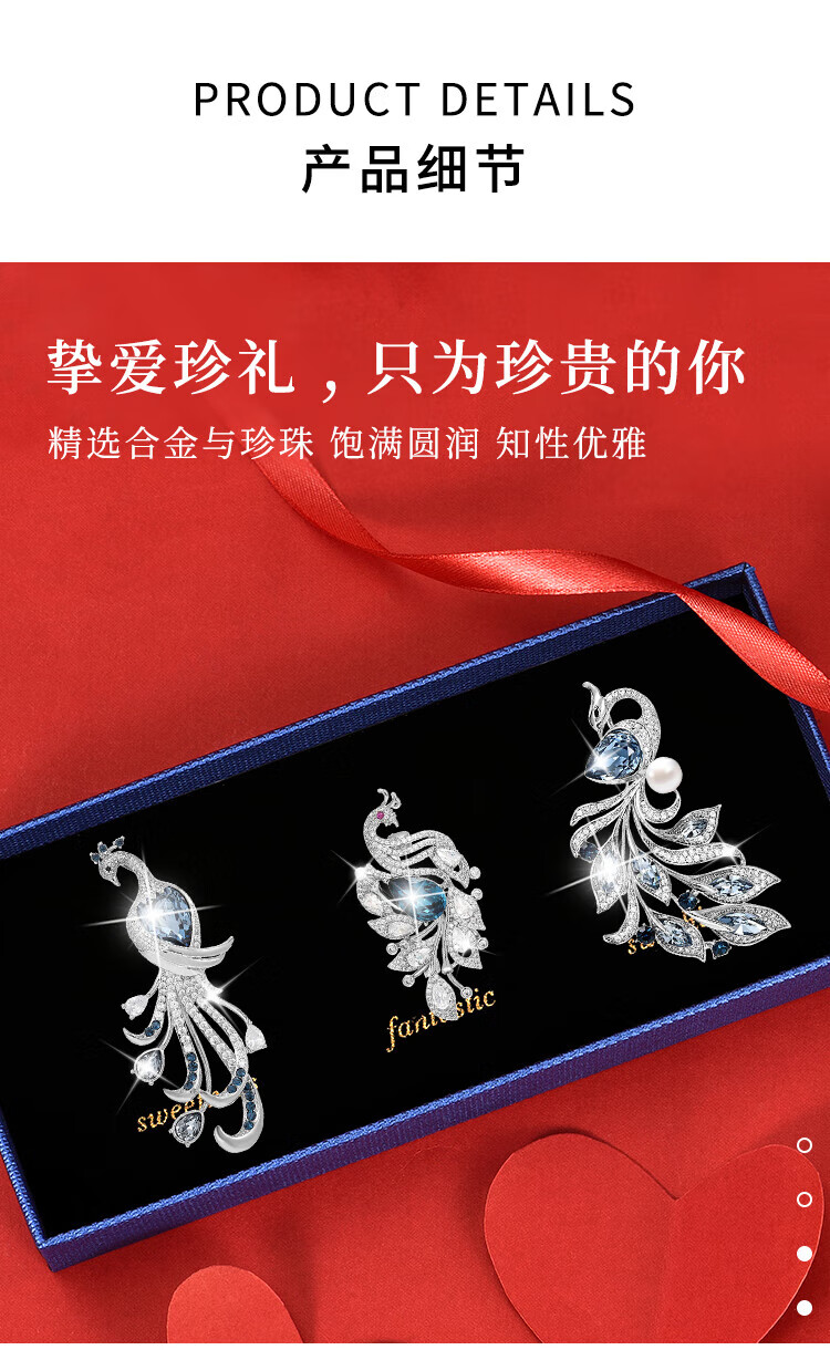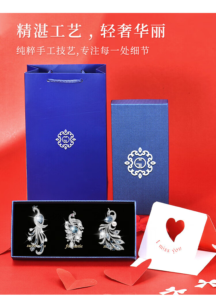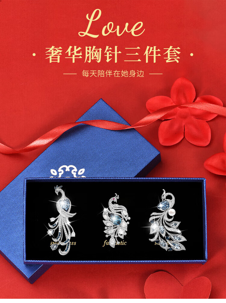 Jingli Jingda brooch high-end women's exquisite niche light luxury corsage brooch set birthday gift for women exquisite high-end practical Phoenix Nirvana brooch set high-end gift box