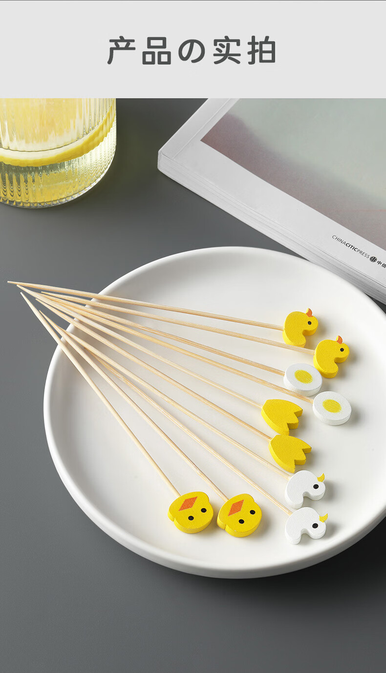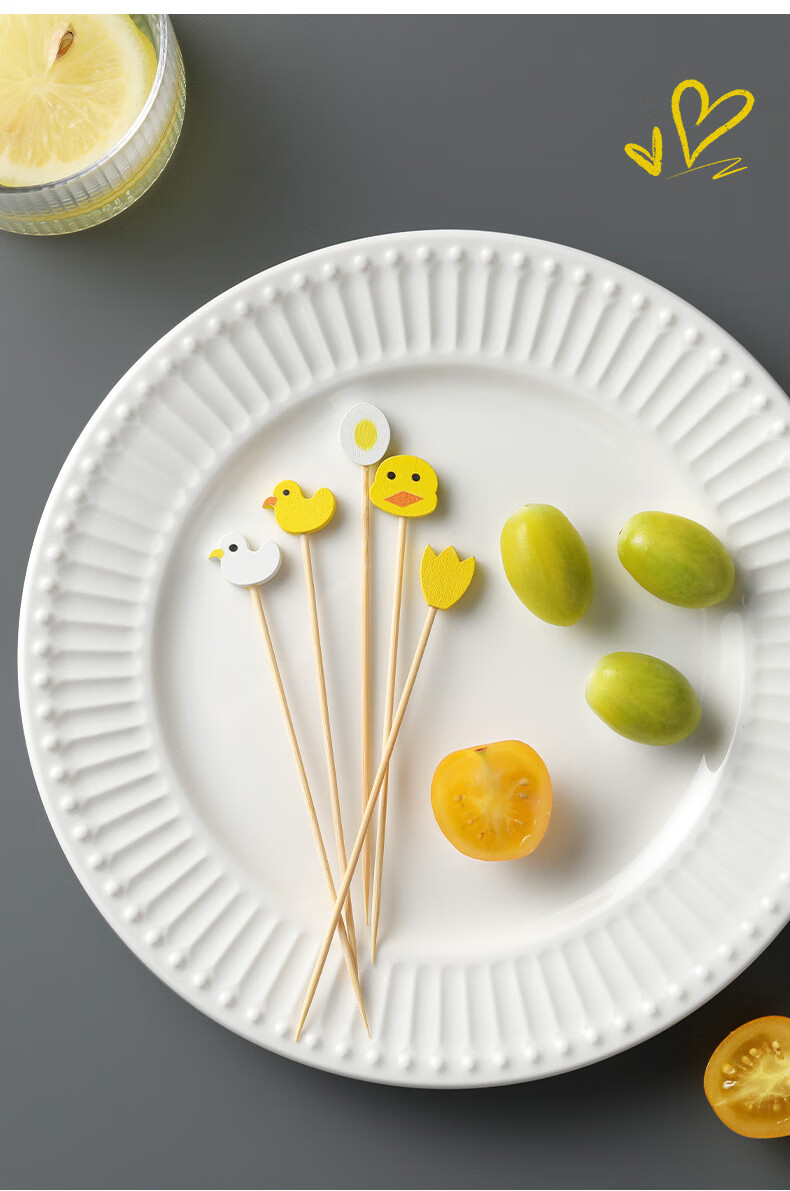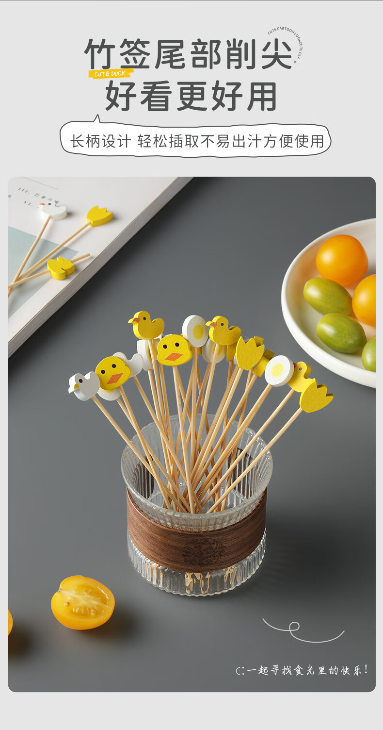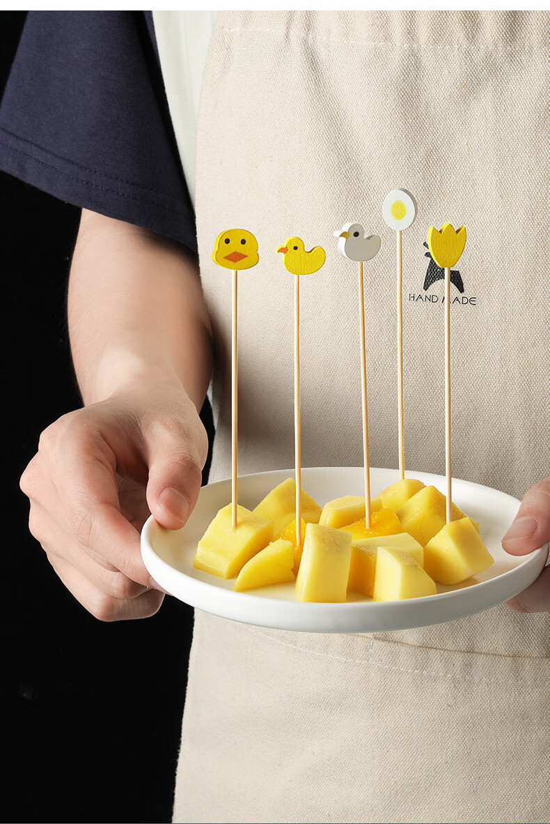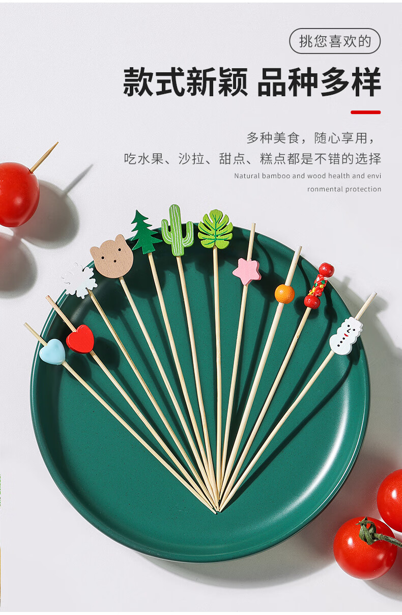 Shantou Lin Village children's fruit picks wooden creative cartoon disposable fork bamboo dessert cocktail candied haws skewers green scissor picks 15cm (100 pieces)