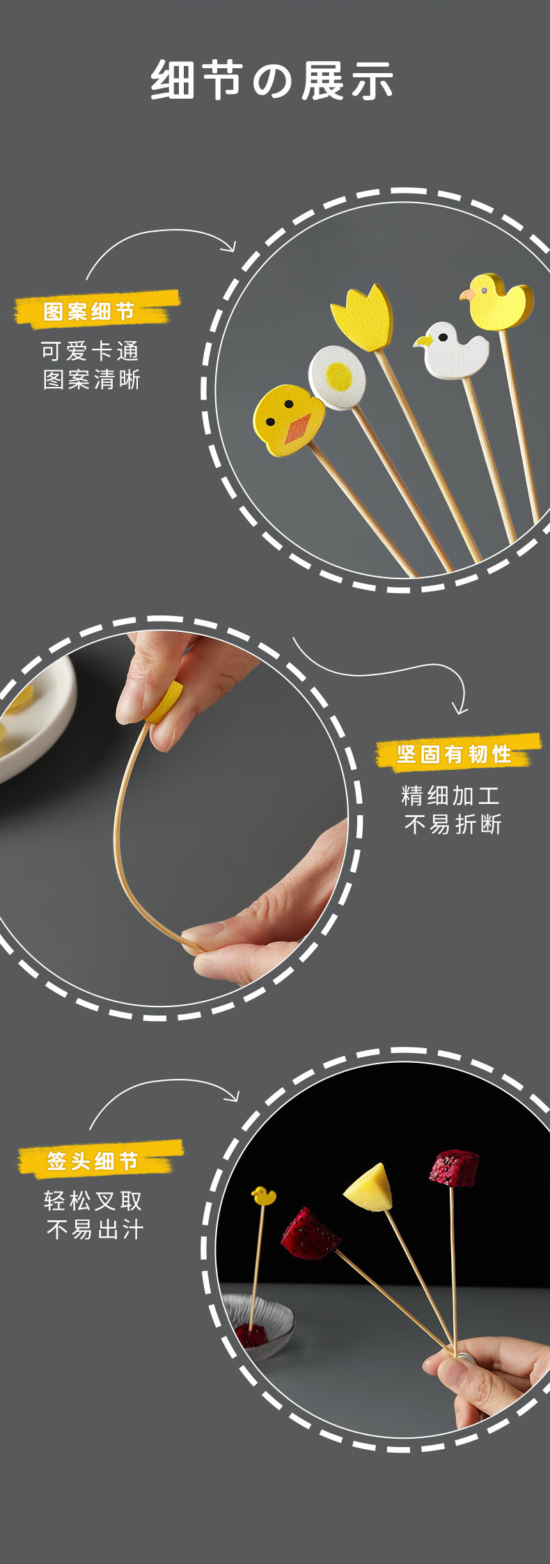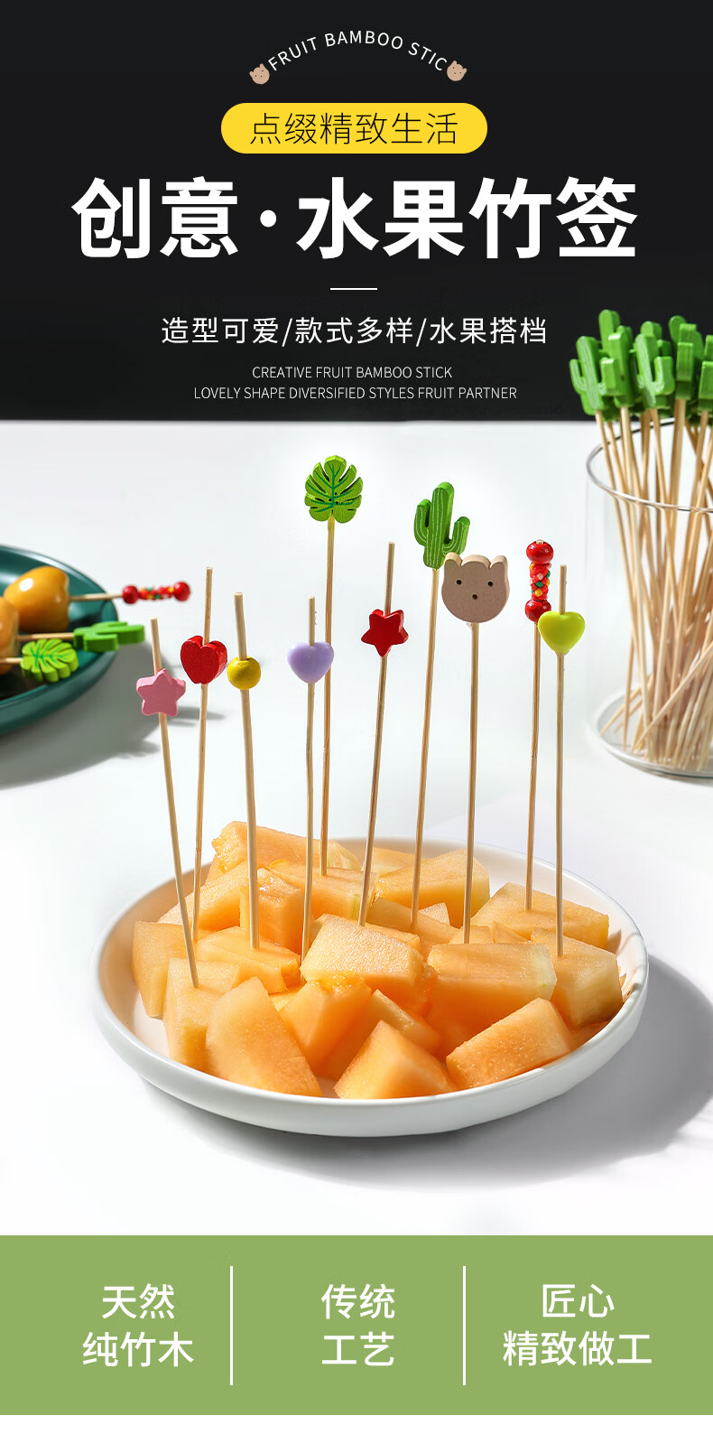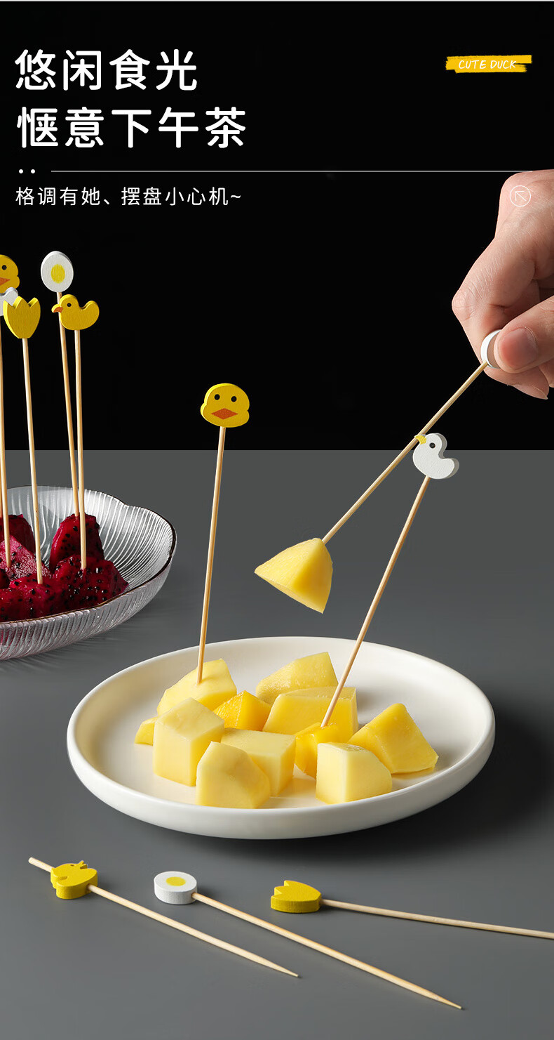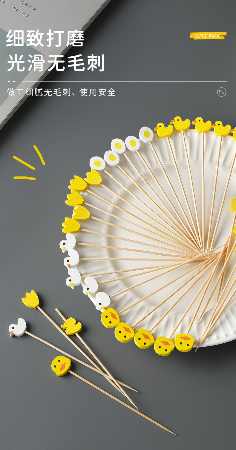 Shantou Lin Village children's fruit picks wooden creative cartoon disposable fork bamboo dessert cocktail candied haws skewers green scissor picks 15cm (100 pieces)