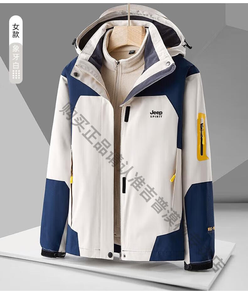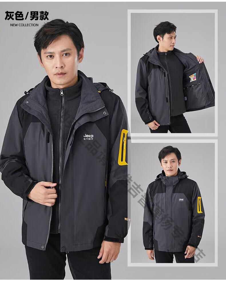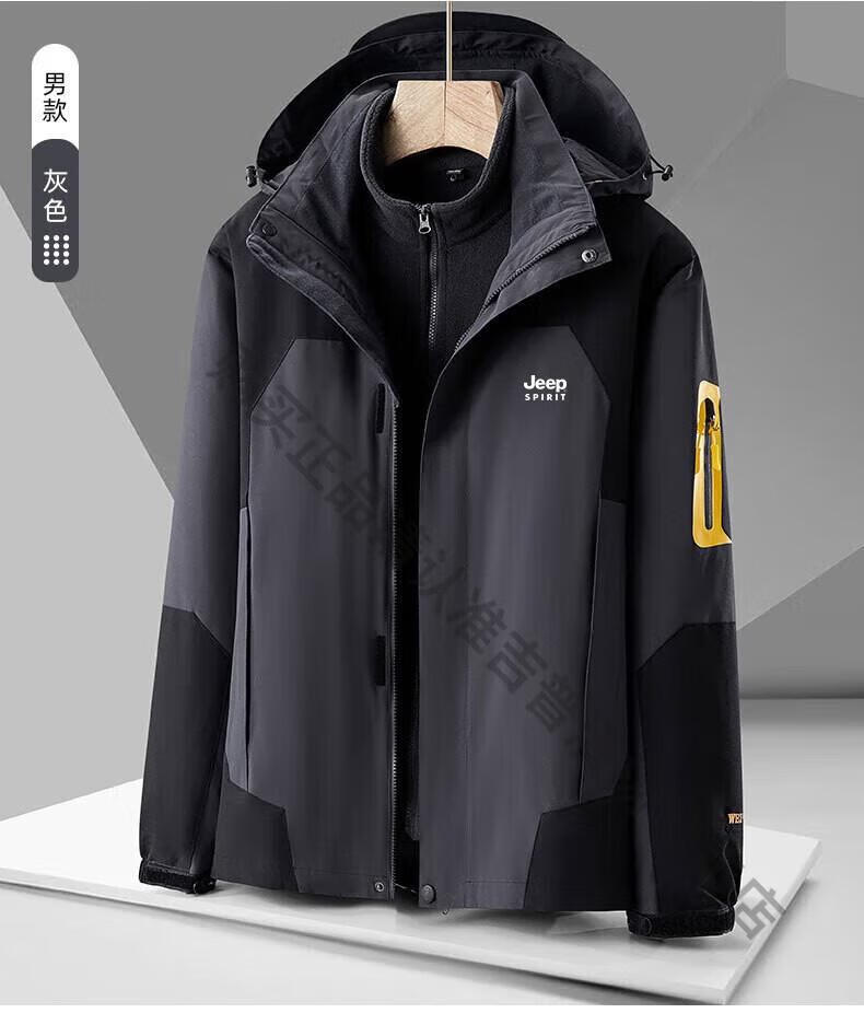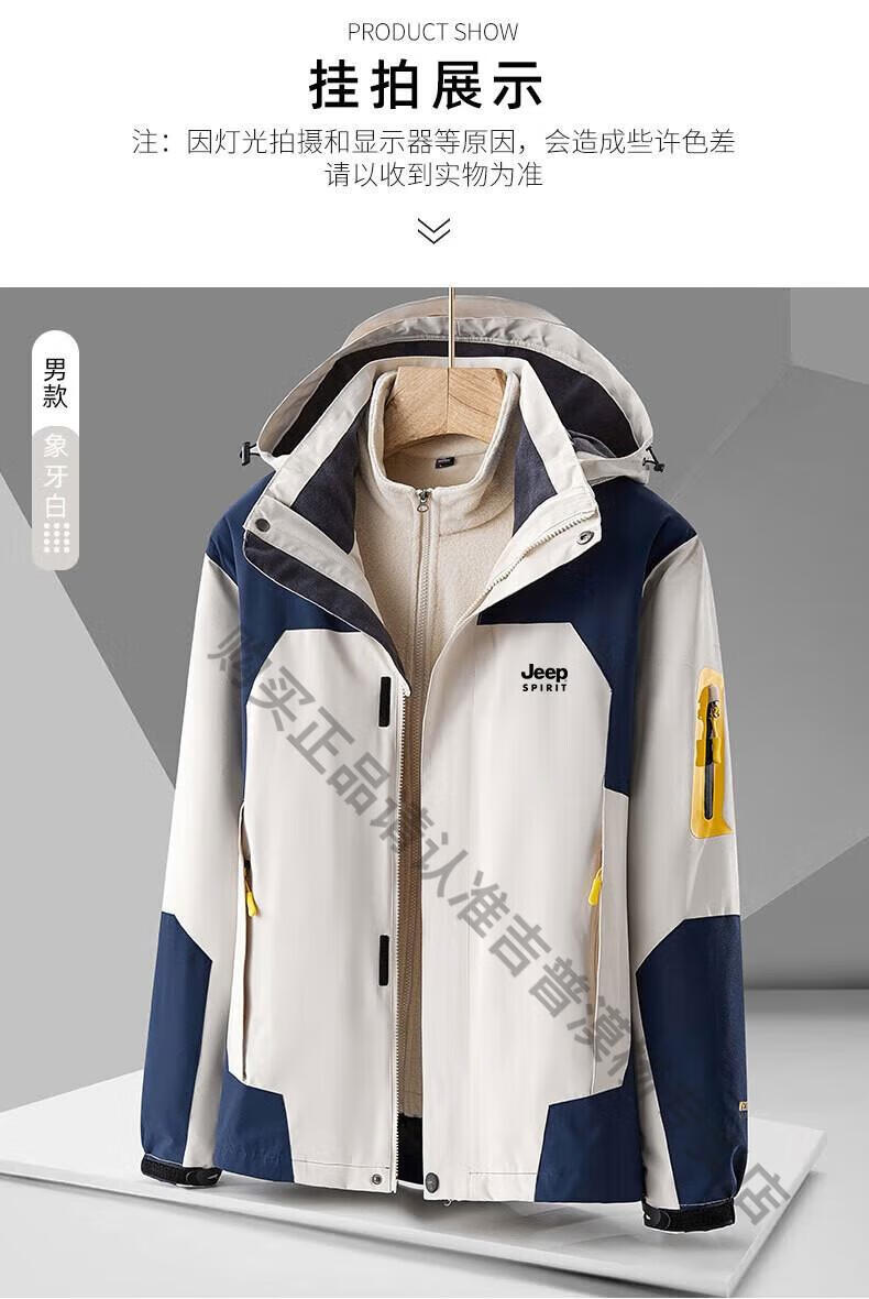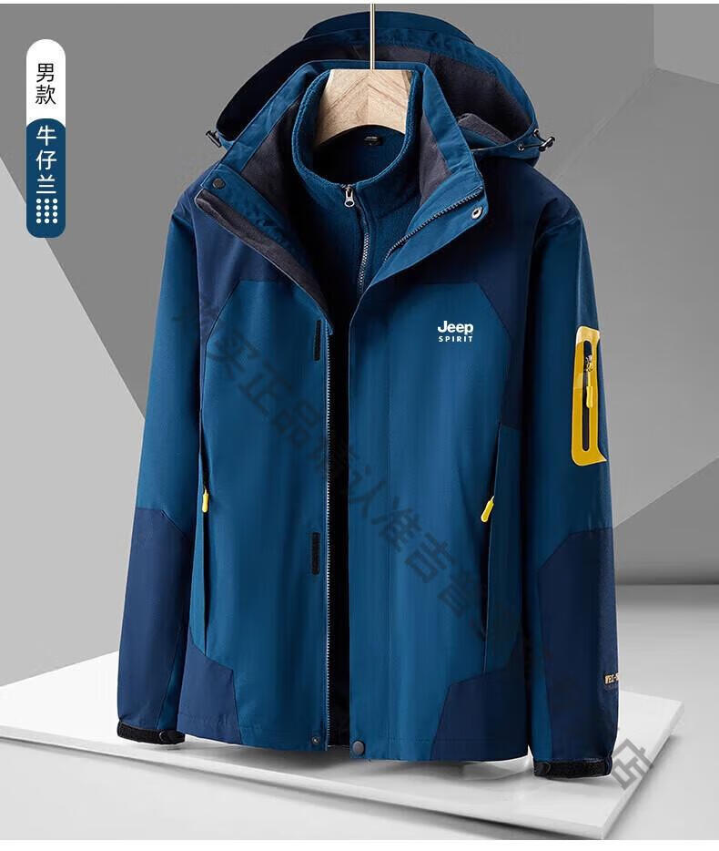 Jeep (JEEP) jacket men's jacket charging top pants suit men's autumn and winter cold protection and warmth thickened two-piece set three-in-one mountaineering SBQ-denim blue 552 three-in-one + black 8639 male 2XL