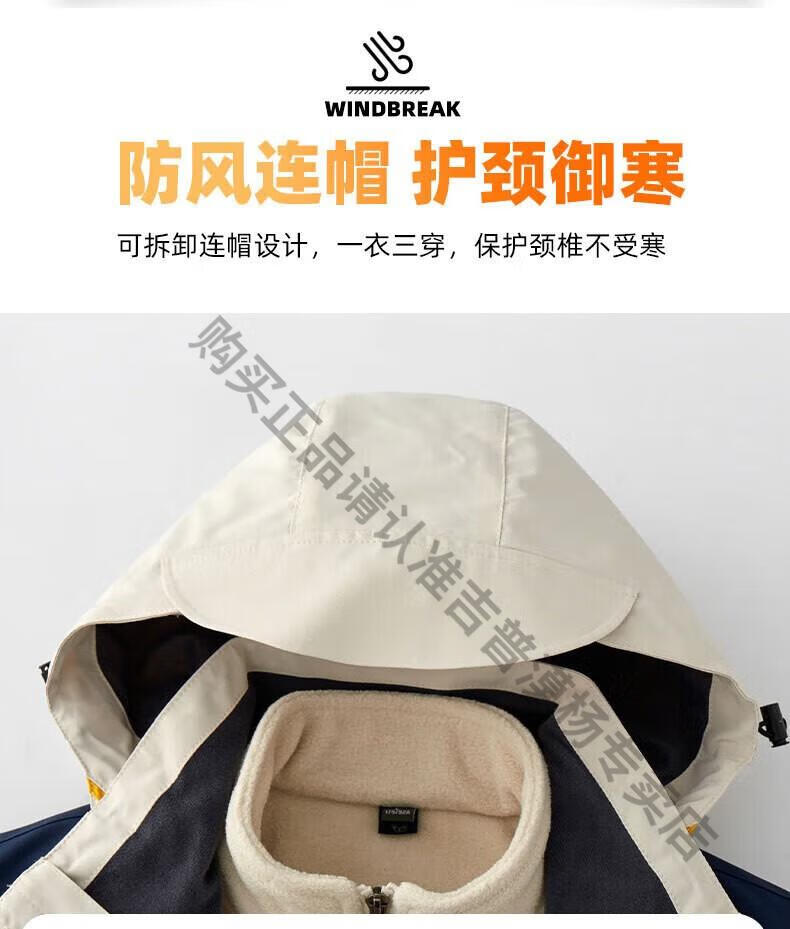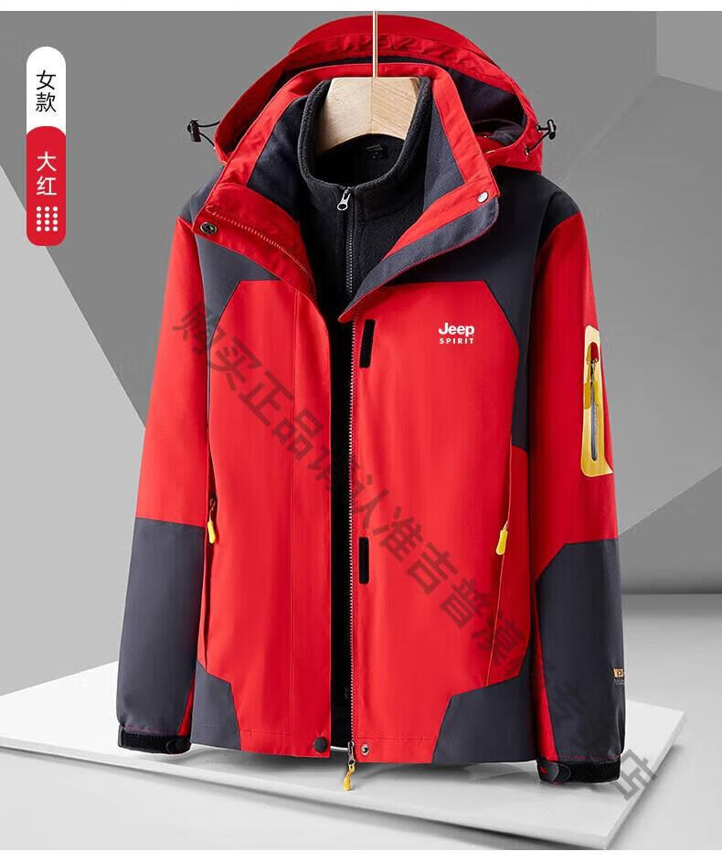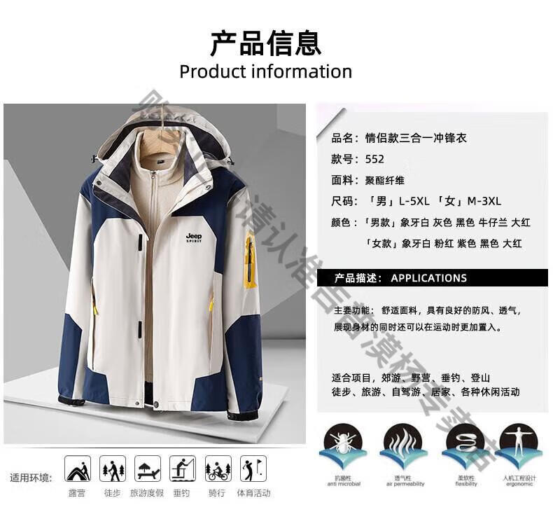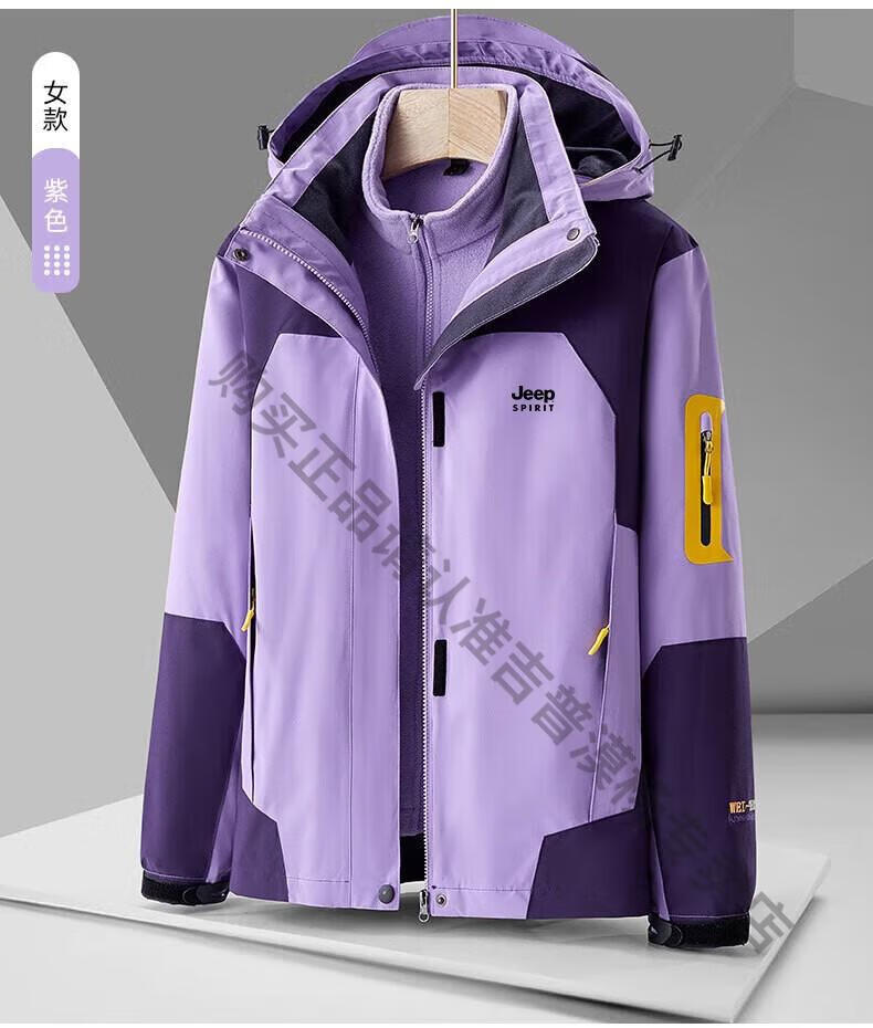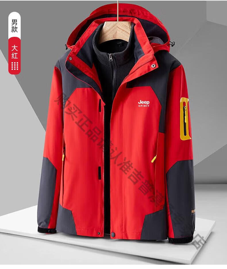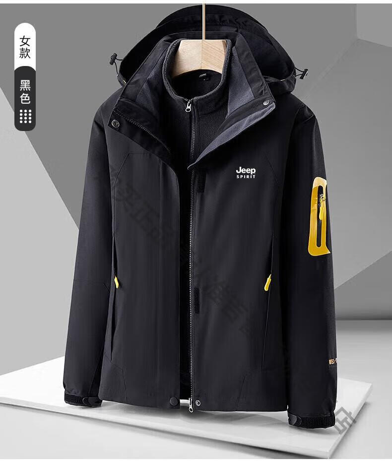 Jeep (JEEP) jacket men's jacket charging top pants suit men's autumn and winter cold protection and warmth thickened two-piece set three-in-one mountaineering SBQ-denim blue 552 three-in-one + black 8639 male 2XL