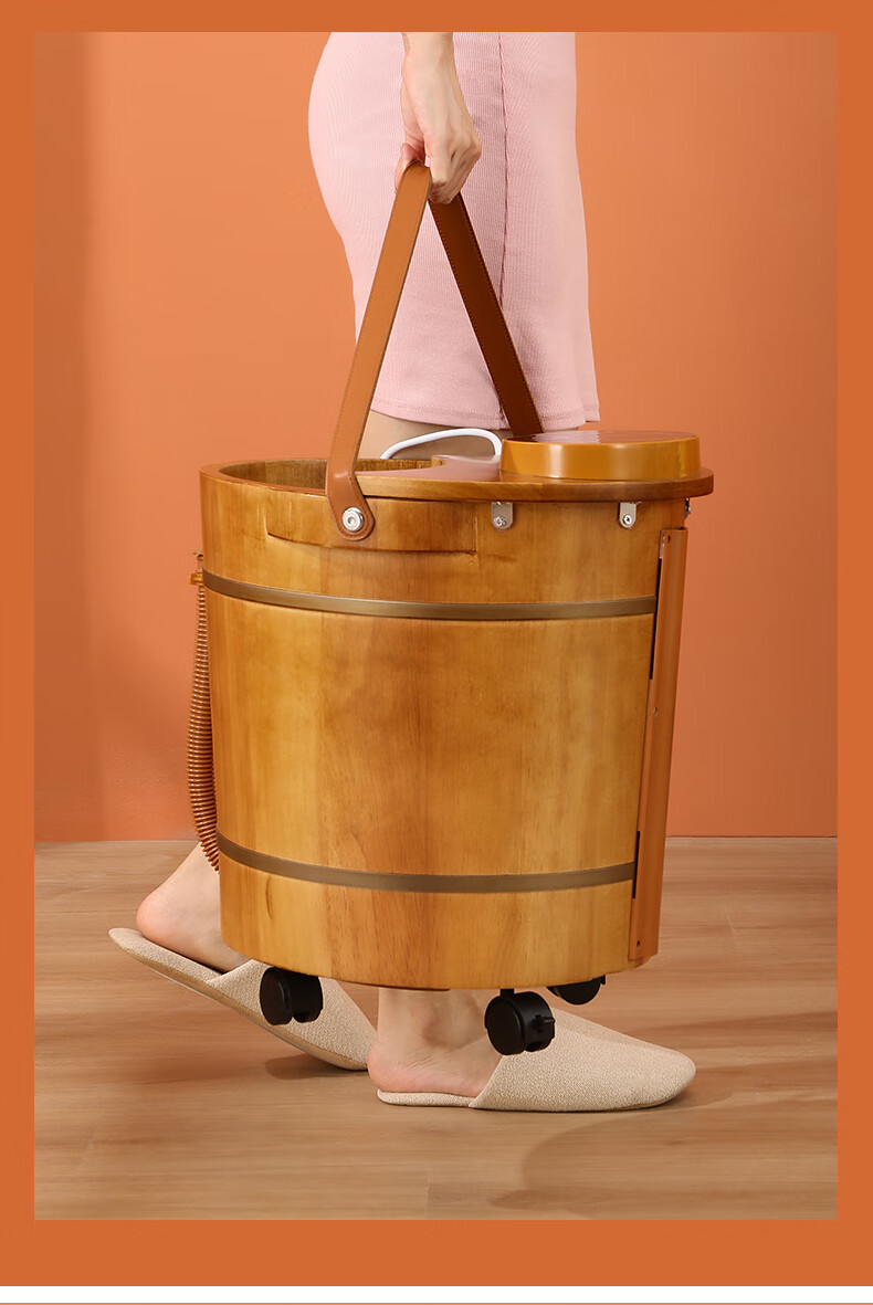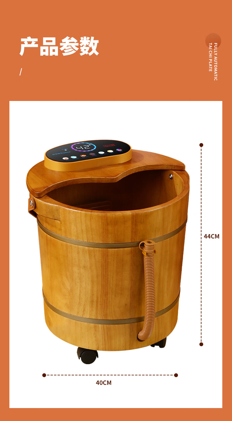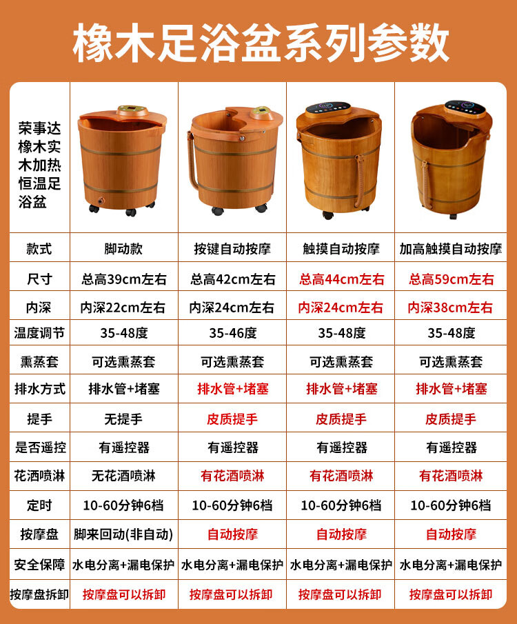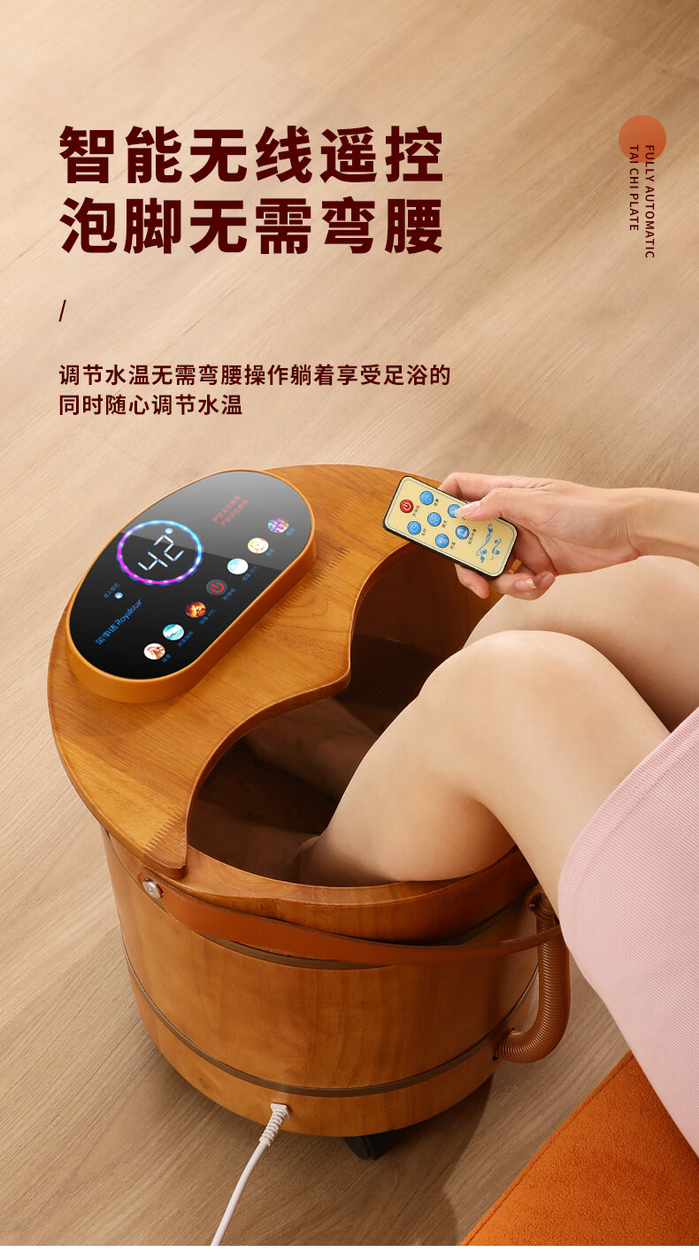 荣事达木桶足浴盆泡脚桶洗脚盆恒温加热自动按摩泡脚盆实木橡木洗脚桶电动按摩熏蒸高深桶泡过小腿 39厘米高脚动按摩按键【恒温 漏保】