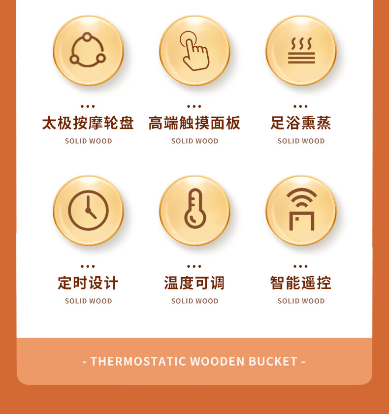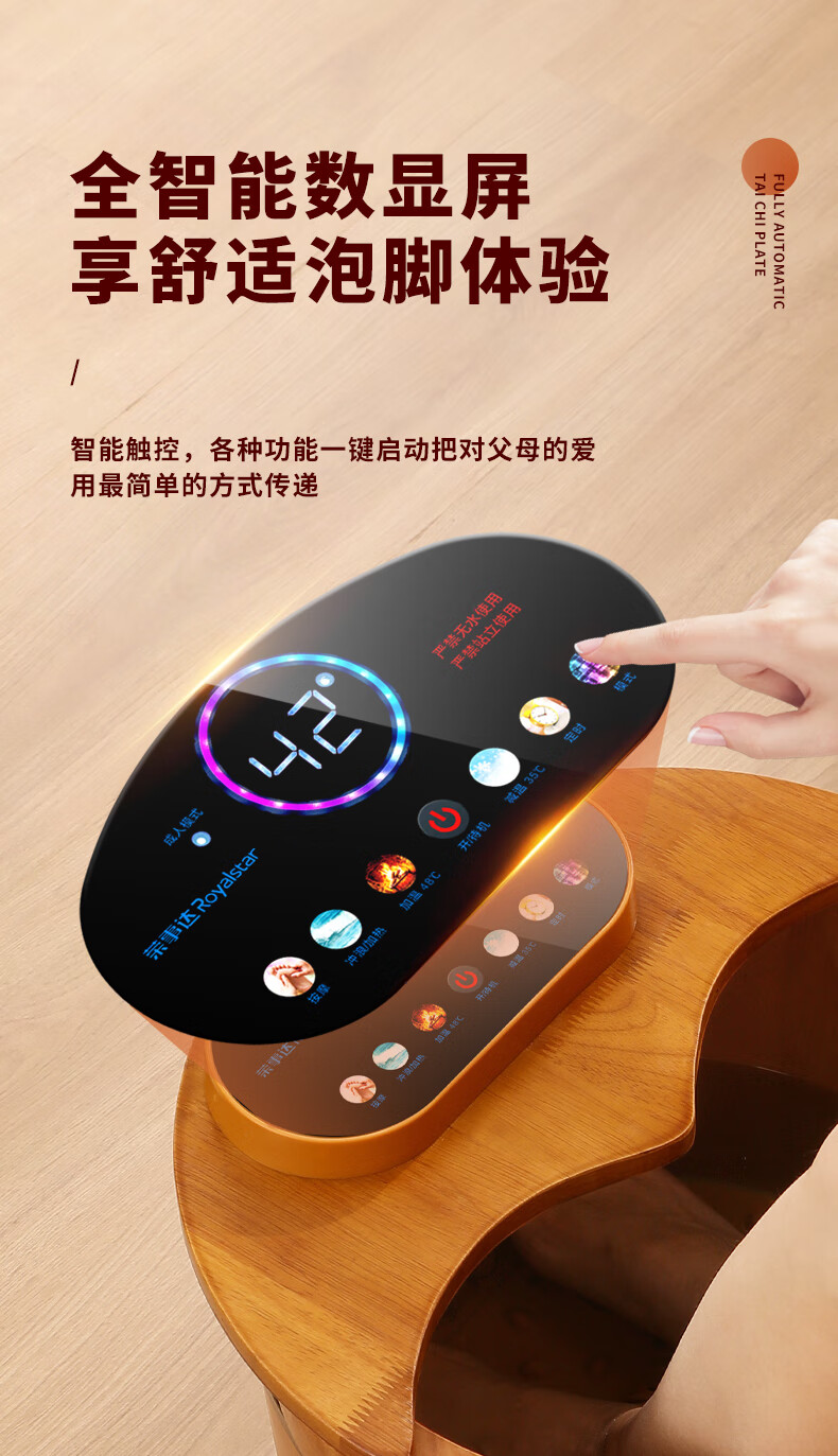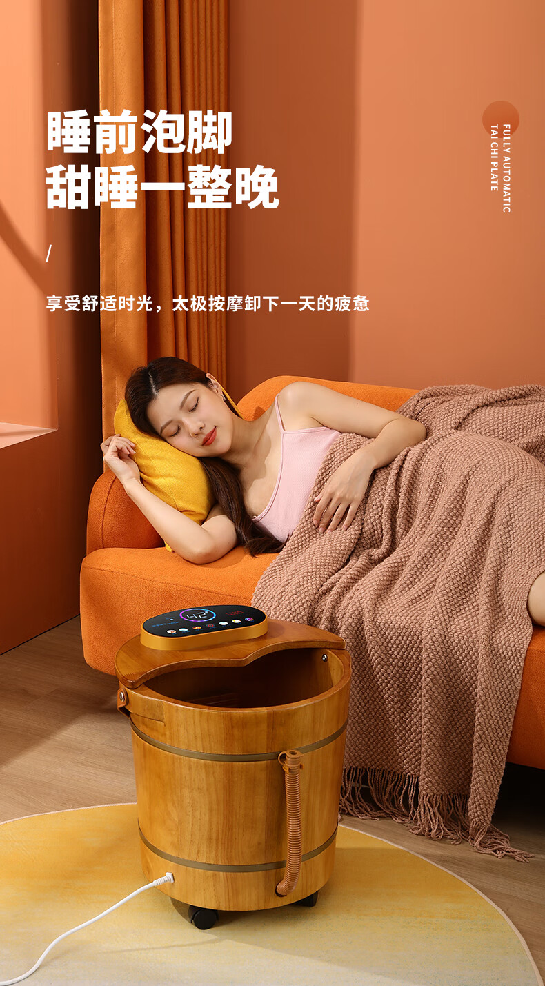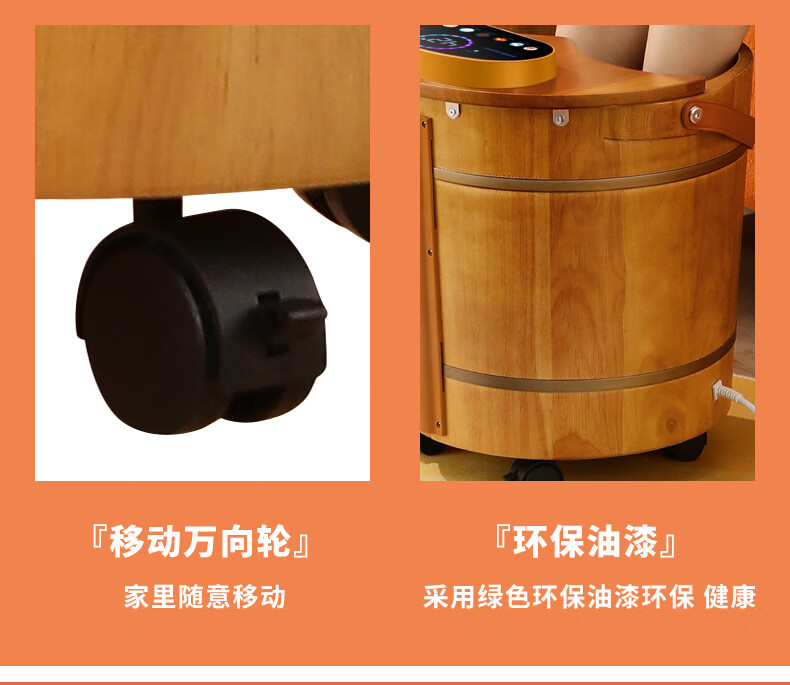 荣事达木桶足浴盆泡脚桶洗脚盆恒温加热自动按摩泡脚盆实木橡木洗脚桶电动按摩熏蒸高深桶泡过小腿 39厘米高脚动按摩按键【恒温 漏保】
