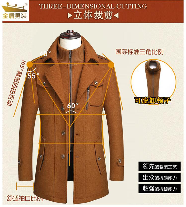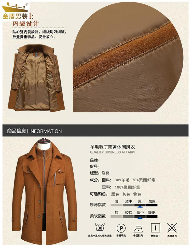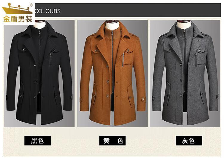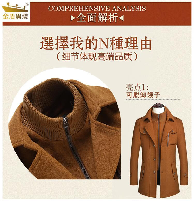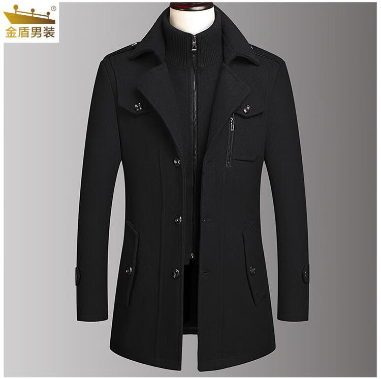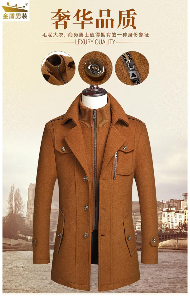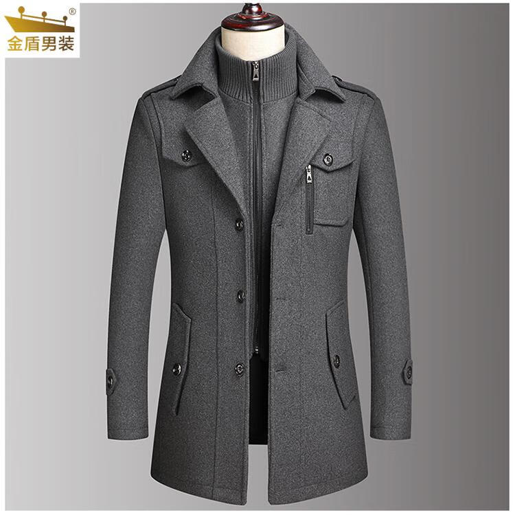 Jindun new winter style middle-aged men's woolen coat jacket casual middle-aged and elderly thickened woolen jacket daddy gray 170 recommended 95-115Jin Jin equals 0.5 kg