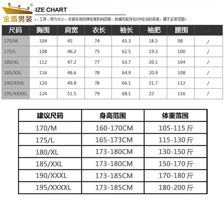 China (cm) 165 / 88-90 170 / 96-98 175 / 108-110 180 / 118-122 185 / 126-130