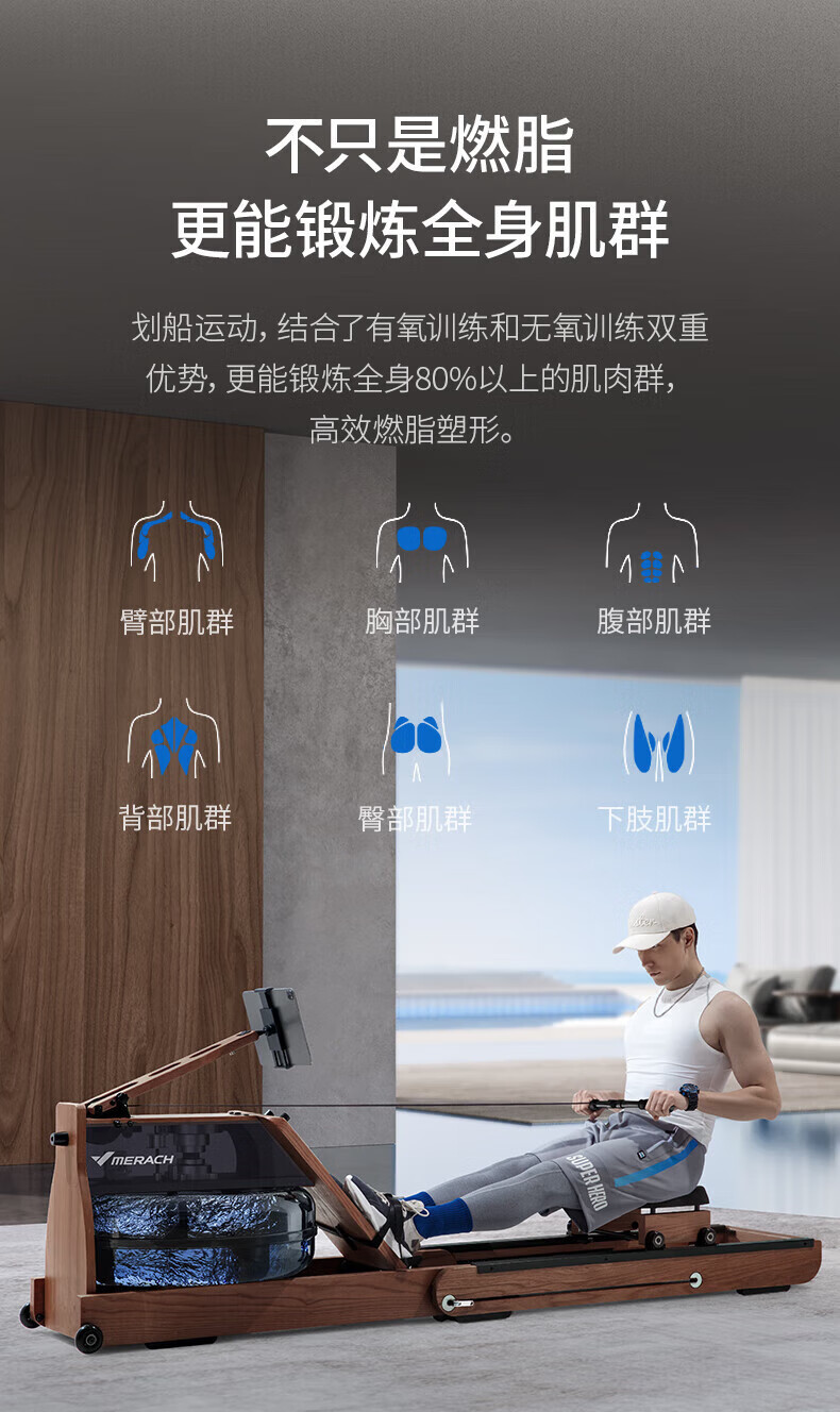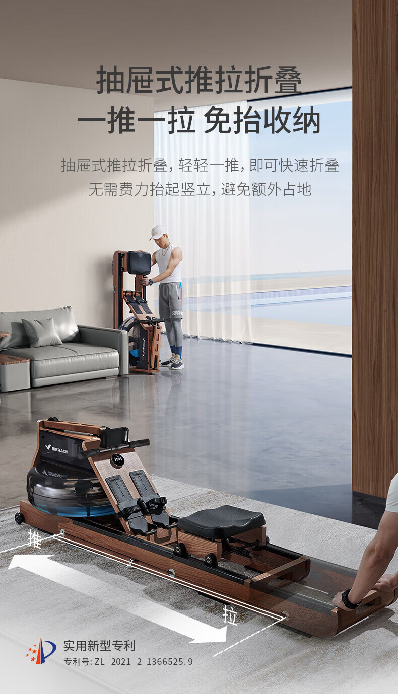 Merrick MR-950 super fat burning hydromagnetic double resistance rowing machine smart home folding water paddling sports fitness equipment 2024 upgrade 10 paddles smart double resistance red oak/non-folding version