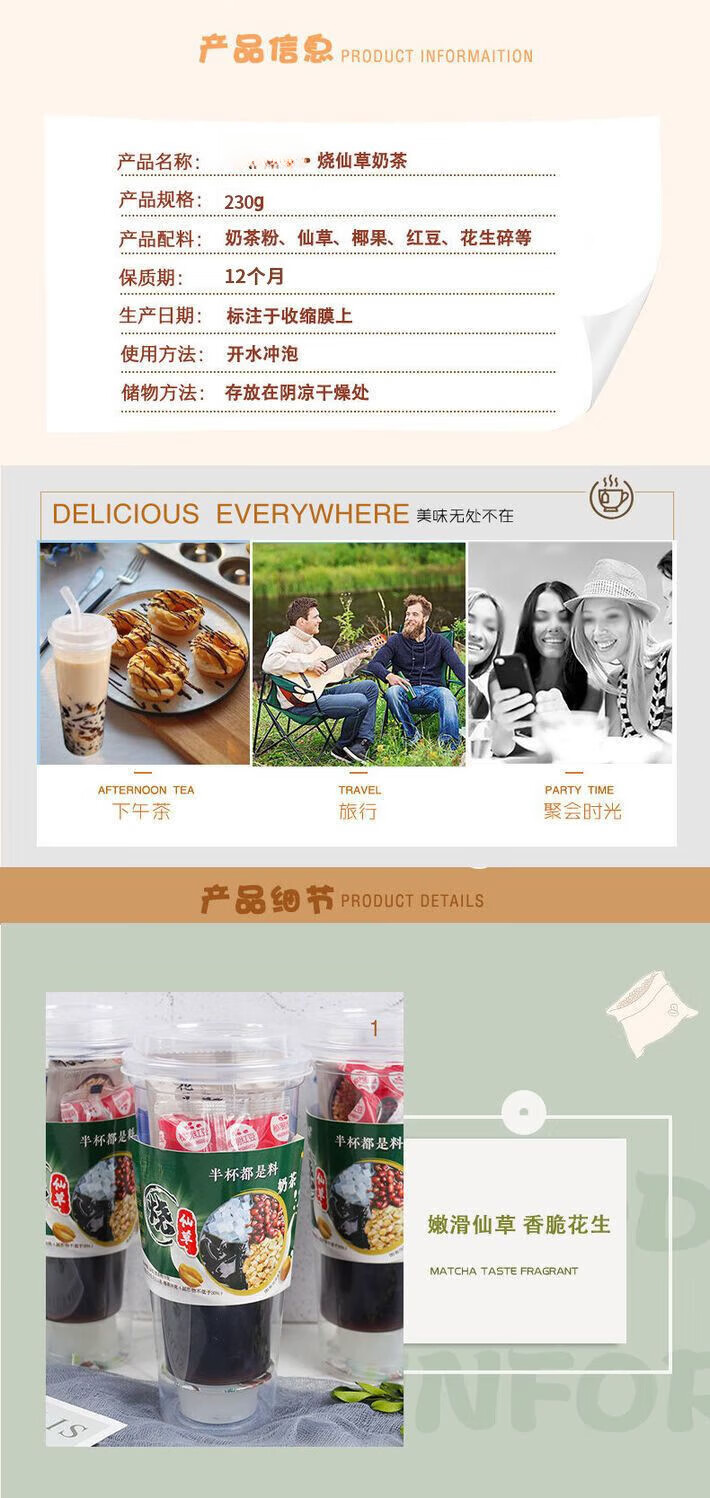 Yumei Zishao Xiancao Four-Piece Milk Tea Cup Brown Sugar Pearl Red Bean Ready-to-Eat Hot Drink Brewing Cup First Cup of Autumn Milk Tea Four-Piece Shao Xiancao Milk Tea Two Cups
