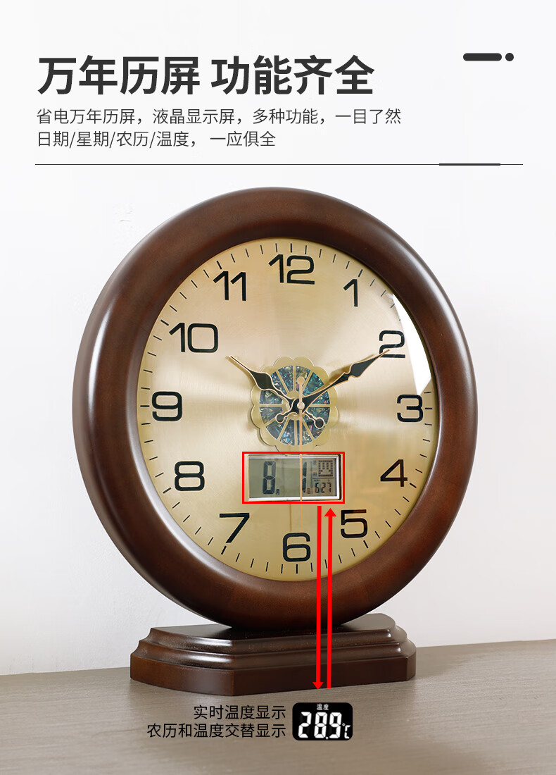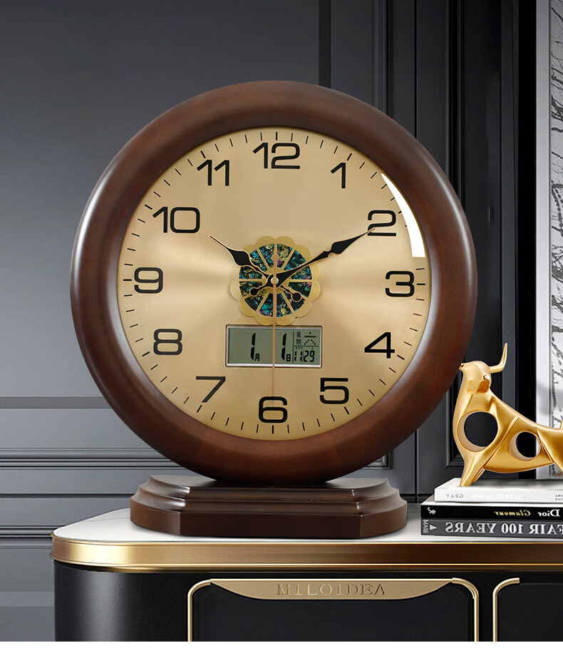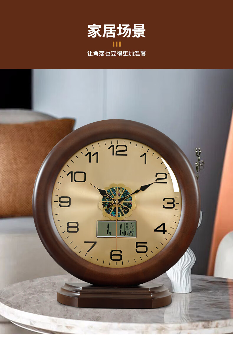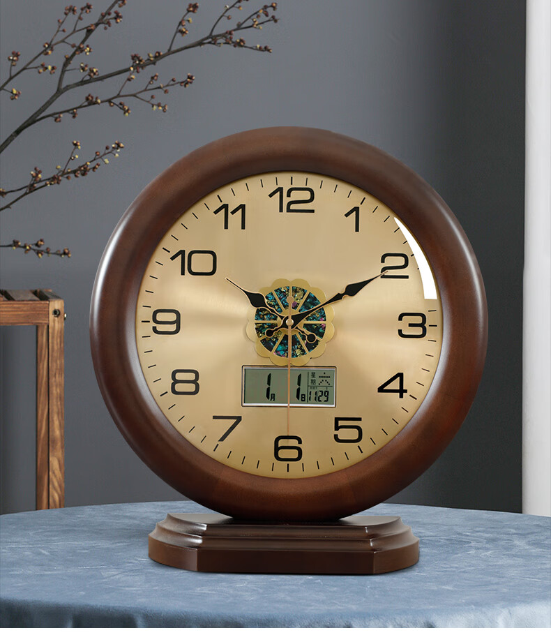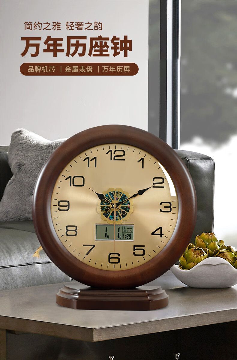 Zhizhen New Chinese Perpetual Calendar Table Clock Living Room Bedroom Home Clock 2025 New Modern Simple Sitting Clock Desktop Clock 503 Metal Dial-Brand Movement
