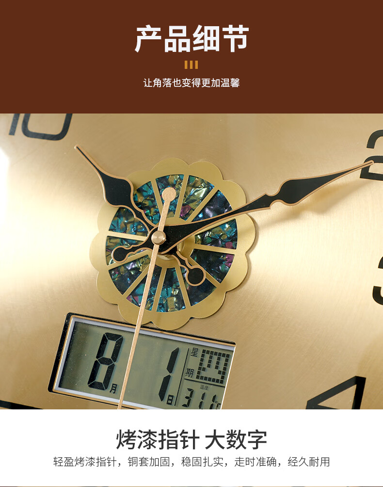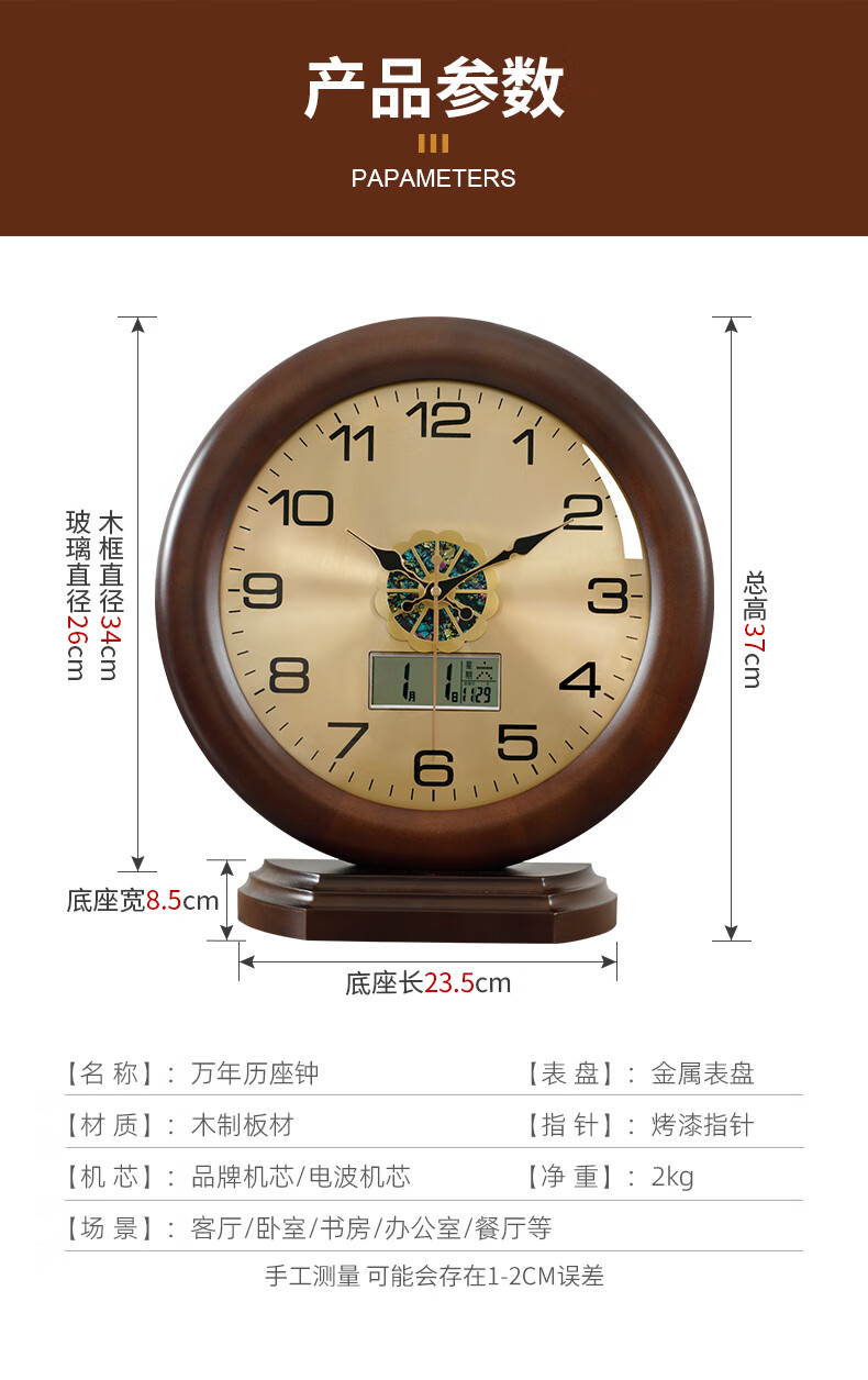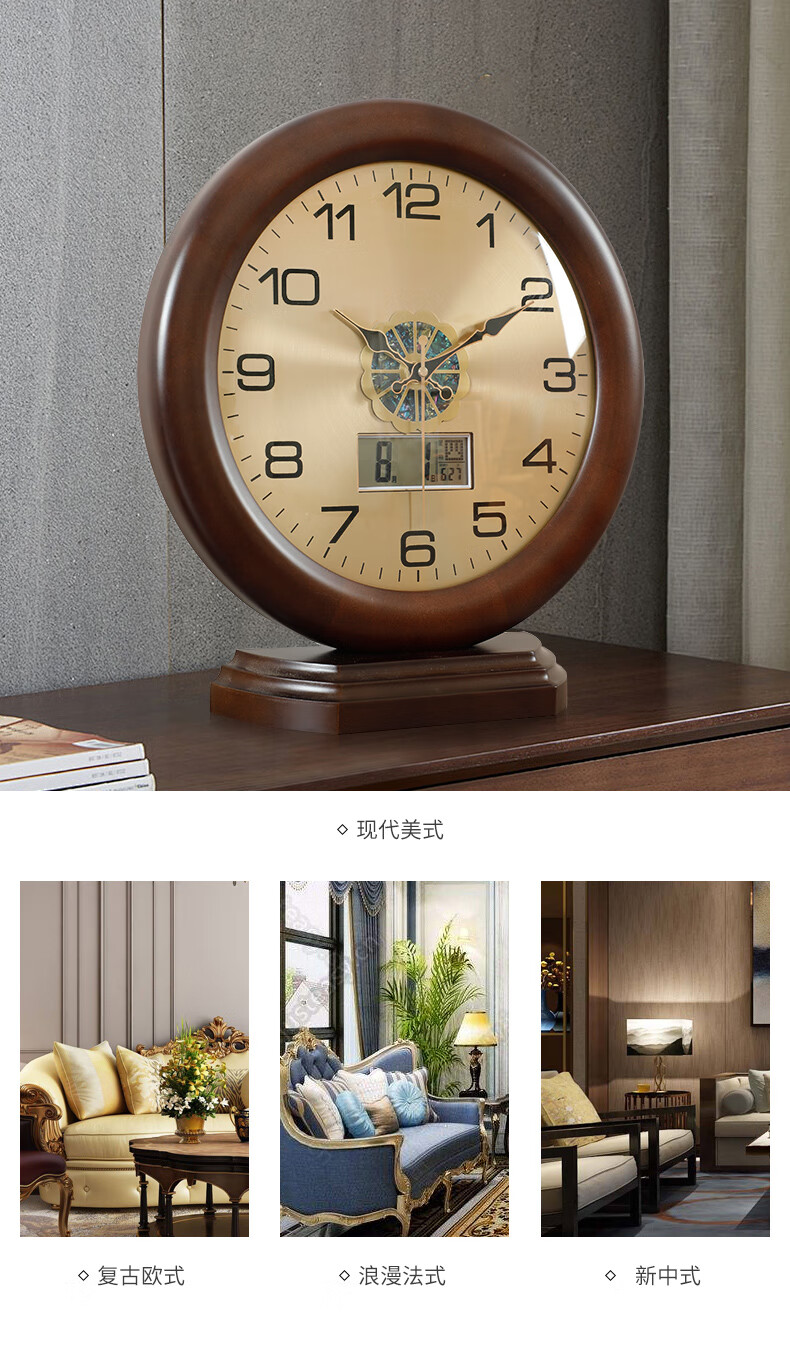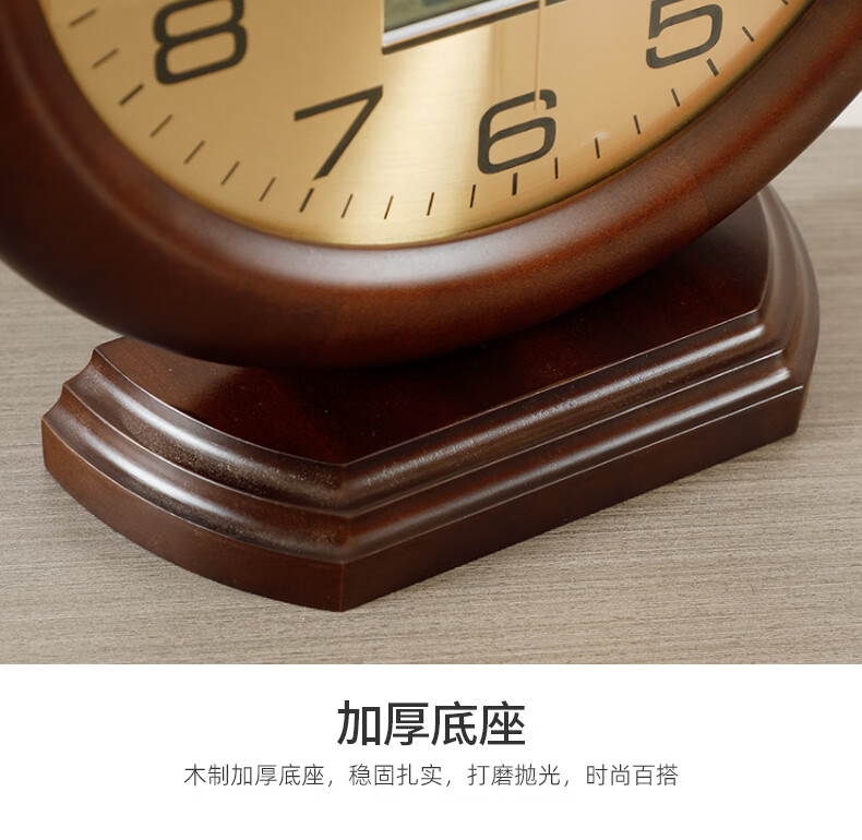 Zhizhen New Chinese Perpetual Calendar Table Clock Living Room Bedroom Home Clock 2025 New Modern Simple Sitting Clock Desktop Clock 503 Metal Dial-Brand Movement