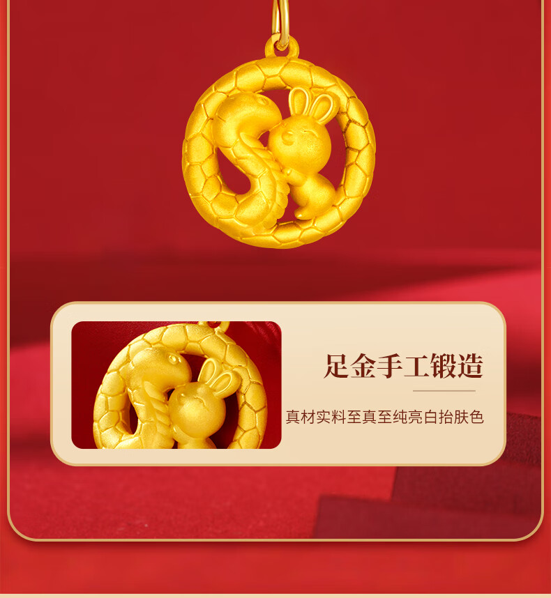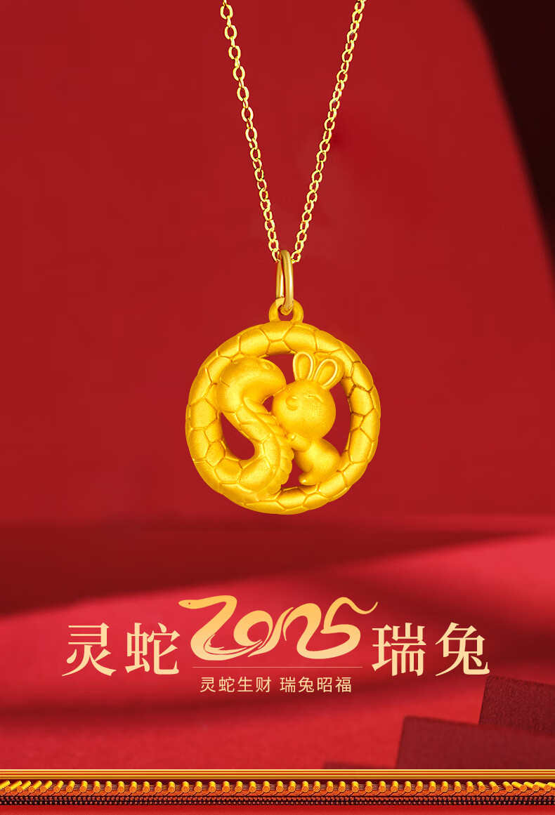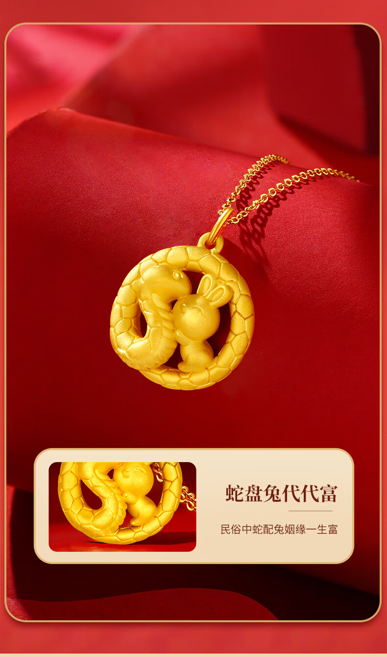 Chinese Gold Zodiac Year Snake Year Gold Necklace Women 2025 New Snake Pan Rabbit Gold Pendant Birthday Gift for Girlfriend and Wife Pure Gold Pendant Free S925 Chain + Certificate Gift Box