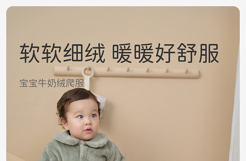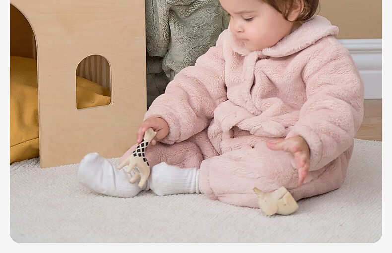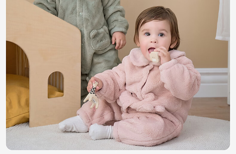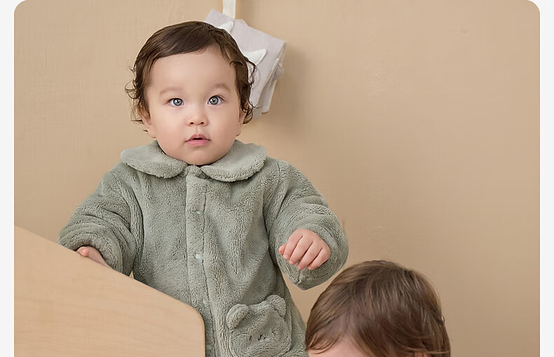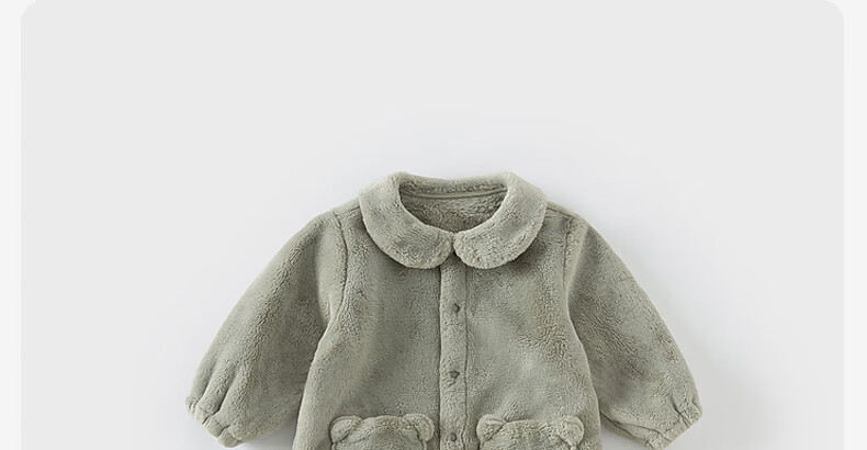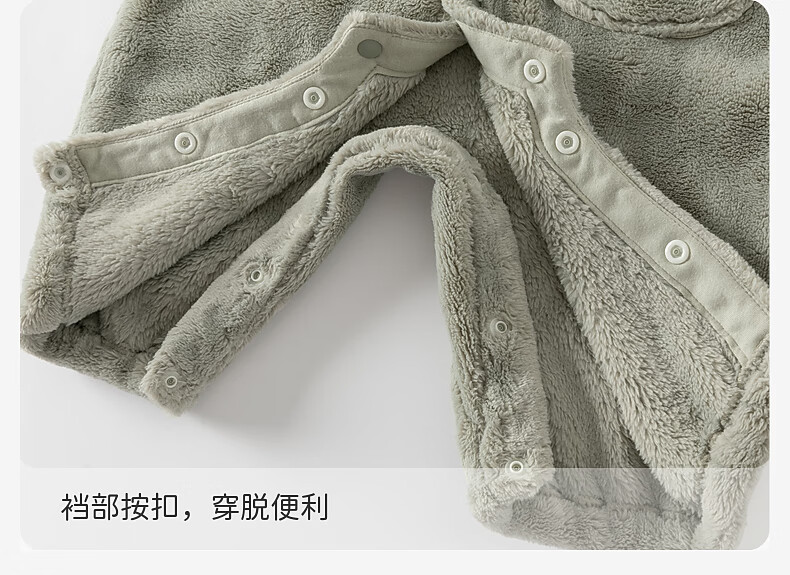 DAVE&BELLA baby girl milk velvet jumpsuit newborn romper children's pajamas winter new baby boy's bag pea green ready stock 90cm (recommended height 80-90cm)