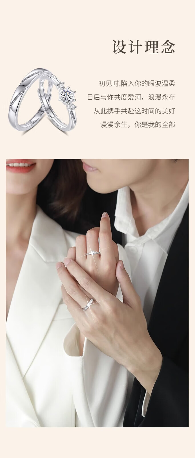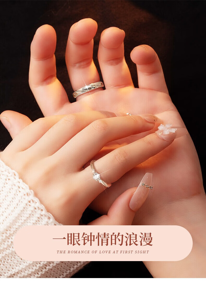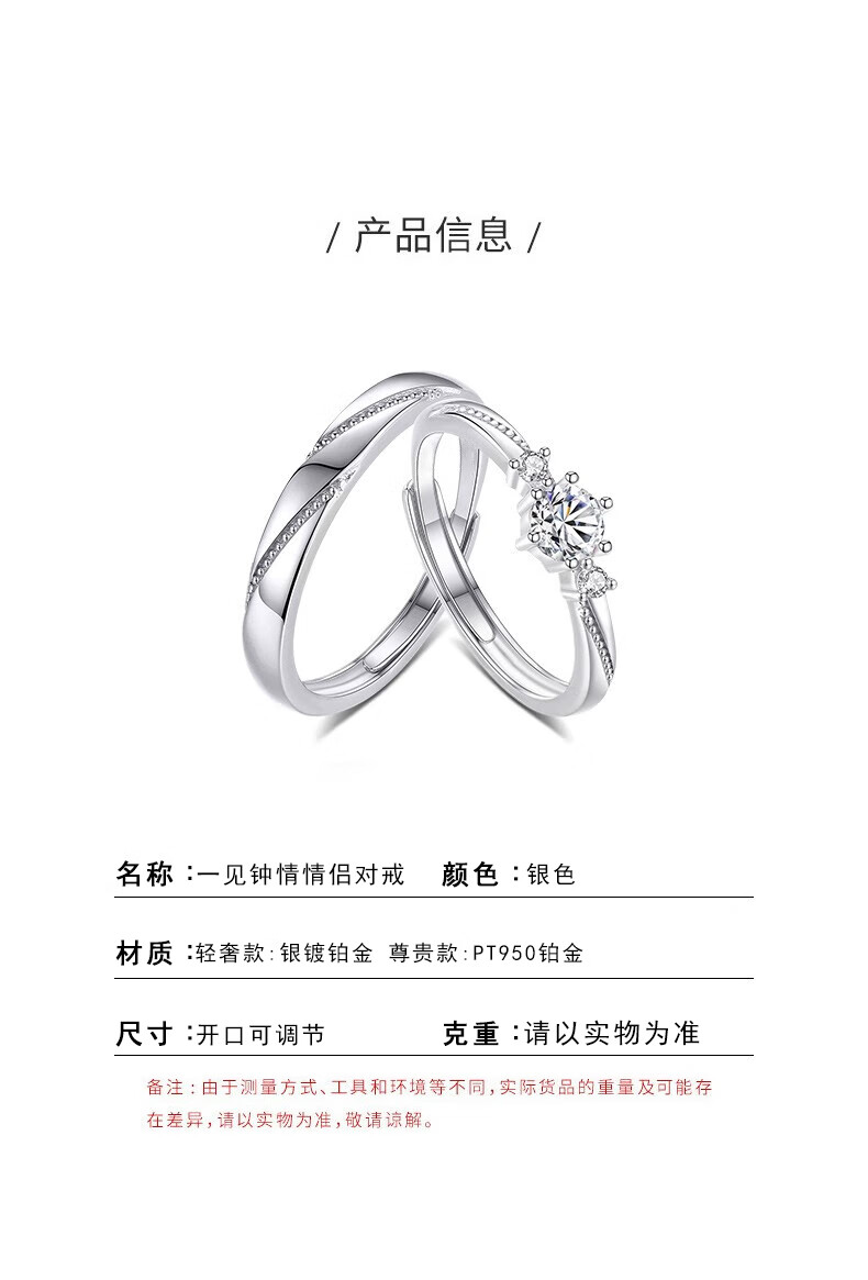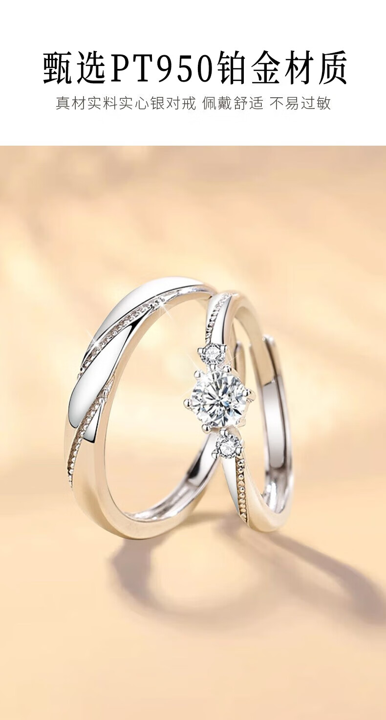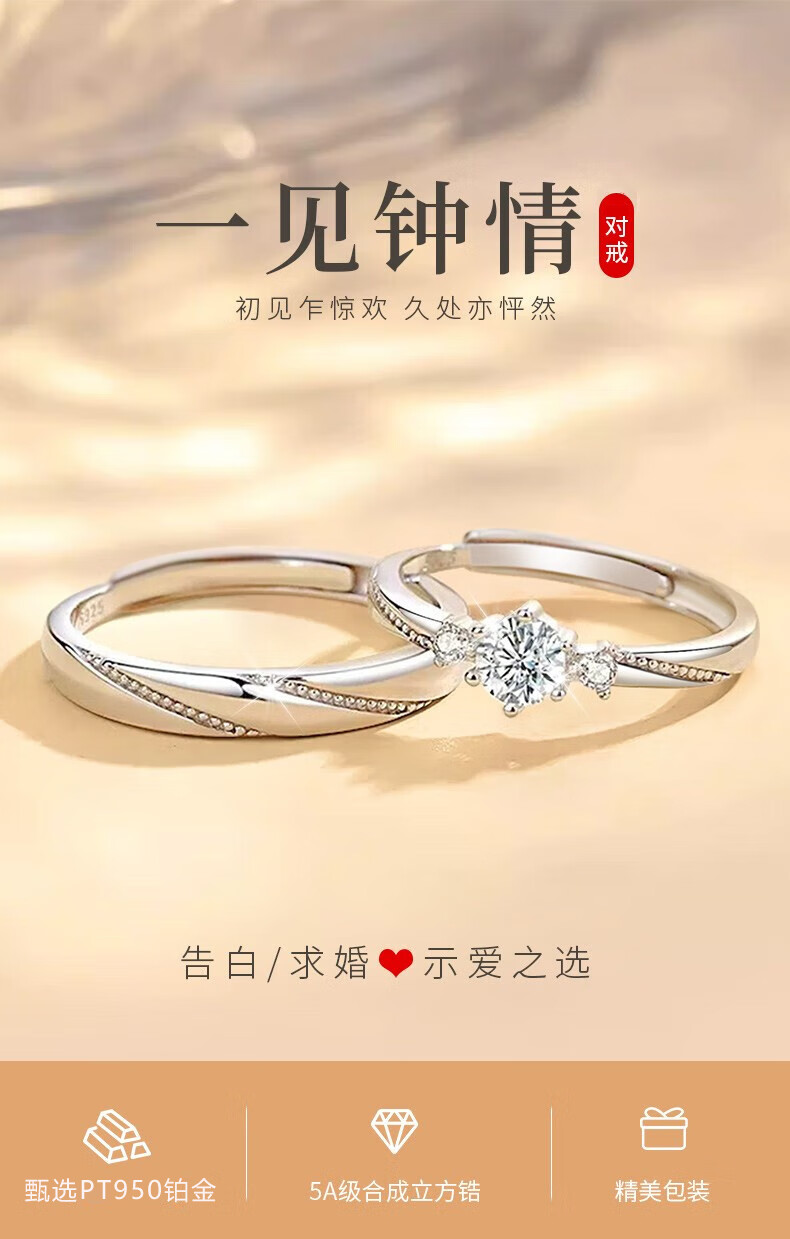 Dirholl's love at first sight platinum ring PT950 platinum couple's engagement ring, birthday and Valentine's Day gift for girlfriend, light luxury model - love at first sight, no engraving