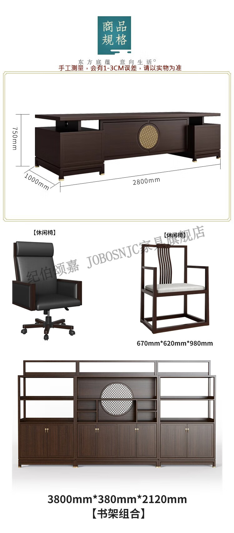 Ji Bosongjia new Chinese style solid wood boss desk desk modern office executive desk golden rosewood president desk high-end furniture 2.4m boss desk