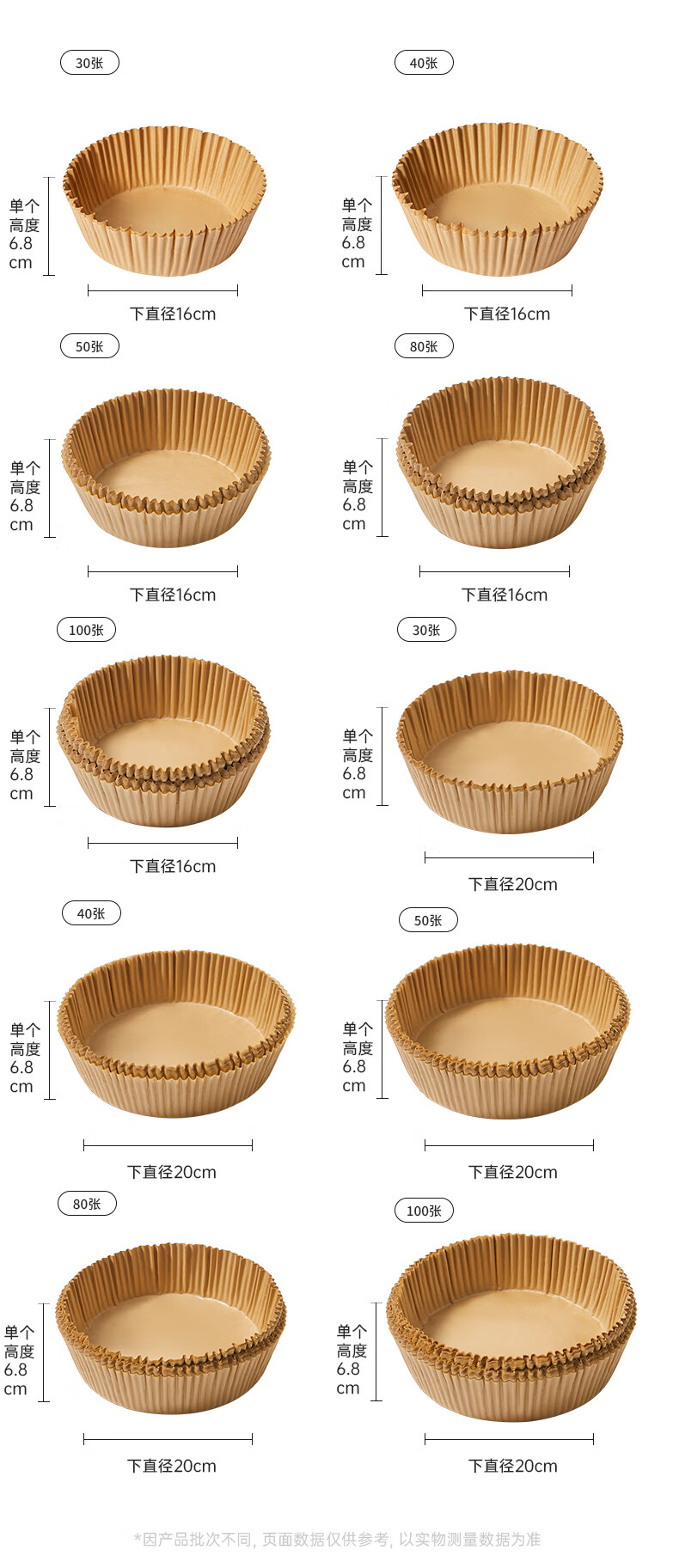 Cuidahuang Air Fryer Paper Heightened Round Baking Barbecue Special Paper Baking Oven Pad Paper Silicone Oil Paper Heightened Round Air Frying Paper 20cm 100 Sheets