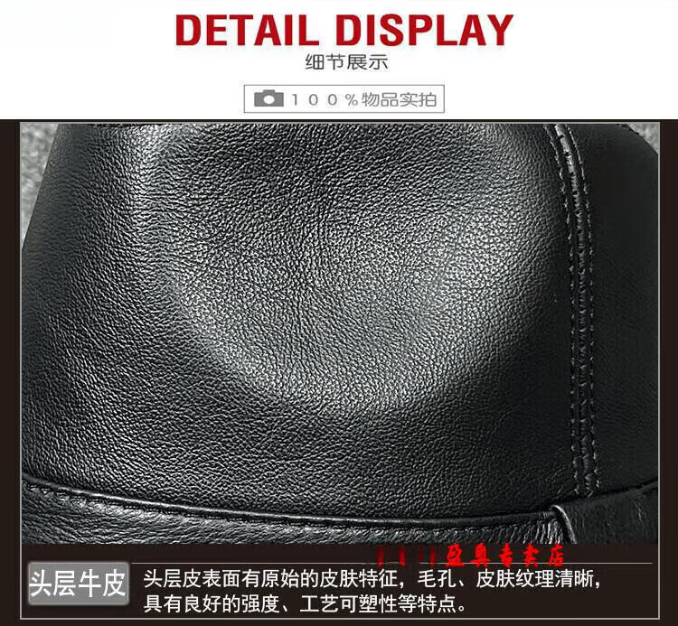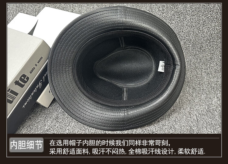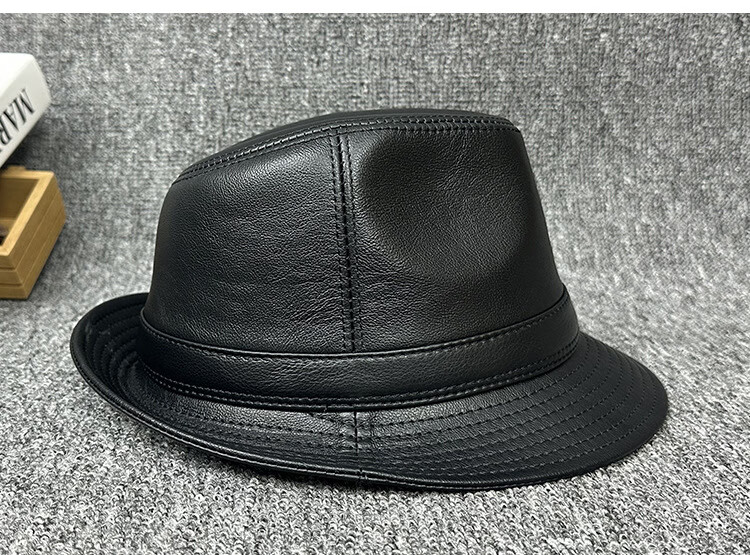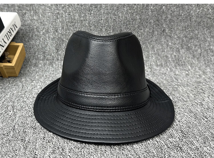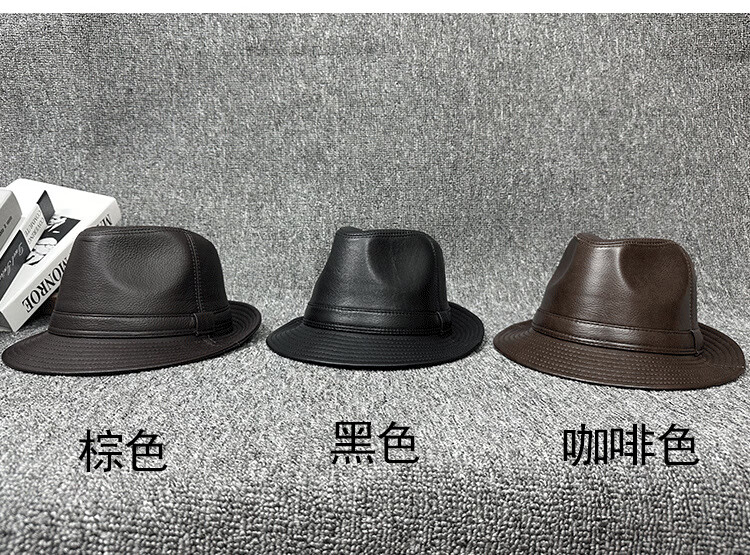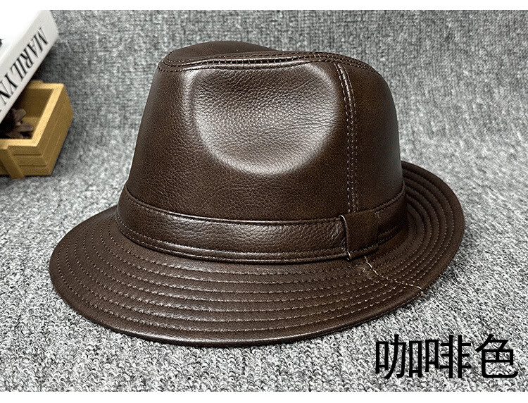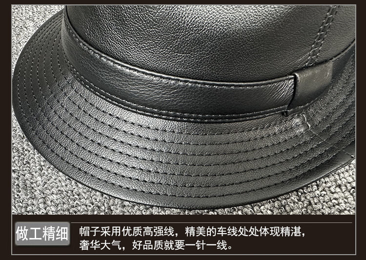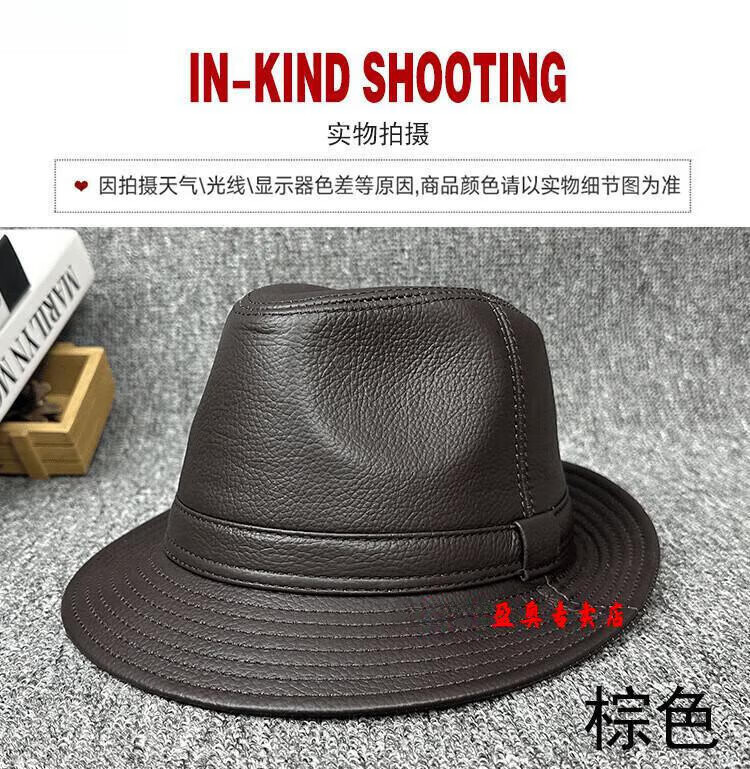 Lee dprre fashion retro jazz hat British style men's new genuine leather hat middle-aged and elderly high-end large-brimmed cowhide hat black 60cm