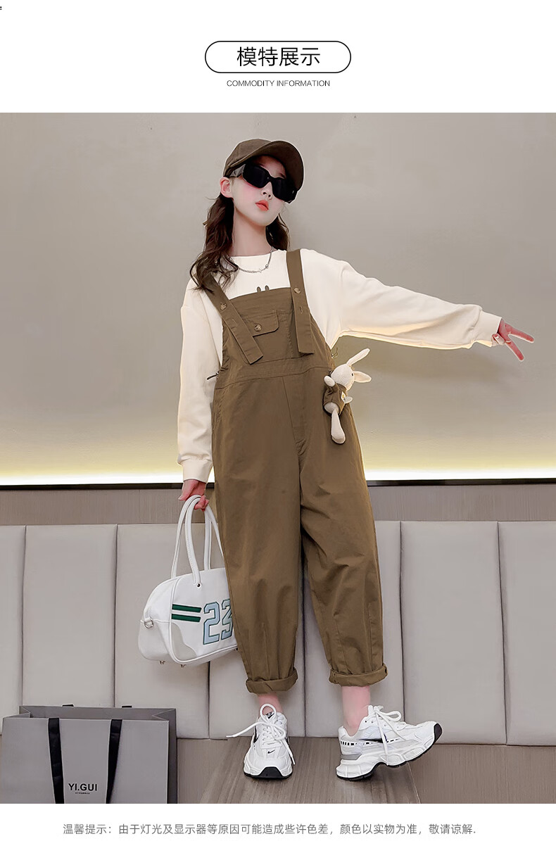G.DUCKKIDS Girls Suit Autumn Clothing 2025 New Children's Overalls Western Style Overalls Seasonal Casual Two-piece Set Medium and Large Children's Clothing Picture Color 160 cm