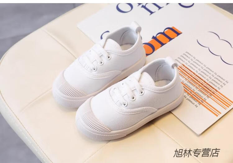 G.duck children's white shoes, girls' kindergarten performance, boys' canvas shoes, student campus soft soles, white mid-skid low-top, new upgraded model, white shoes C08-1, more comfortable 26, inner length about 17cm (suitable for feet 16cm long)