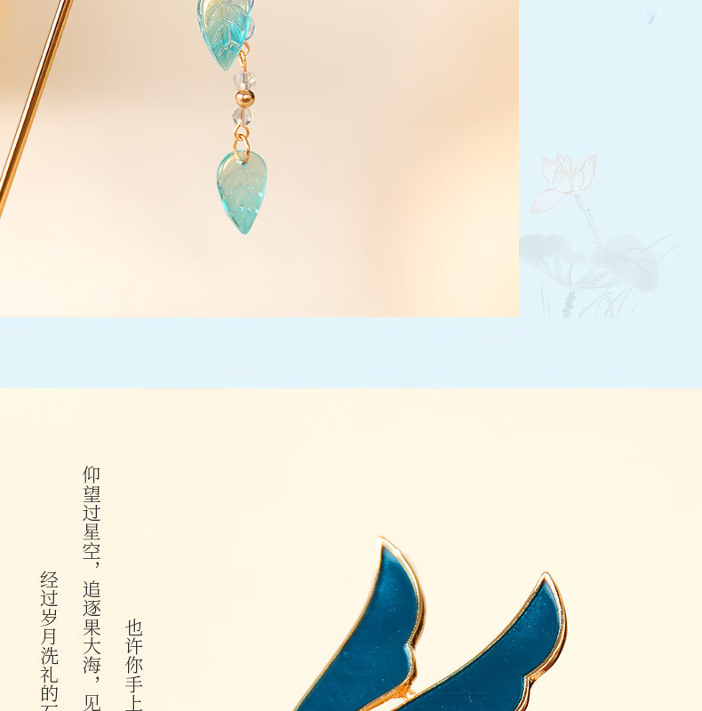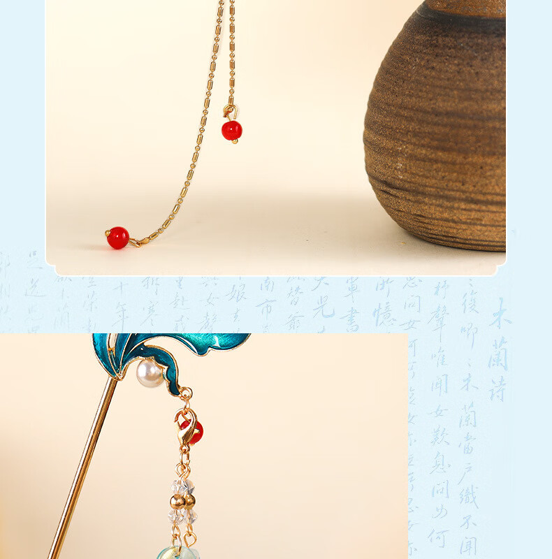Ancient costume style hairpin with long tassels, leaf hairpin, cheongsam, Ming-made ethnic headwear, Hanfu accessories, retro hairpin, swallowtail dot wave-lily of the valley tassel