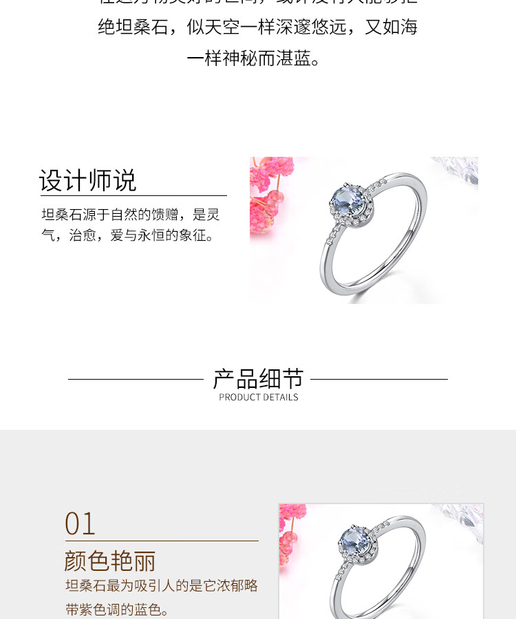CAJJ Francois 0.30 carat tanzanite ring for women, natural colored gemstone, 925 silver inlaid jewelry, No. 13
