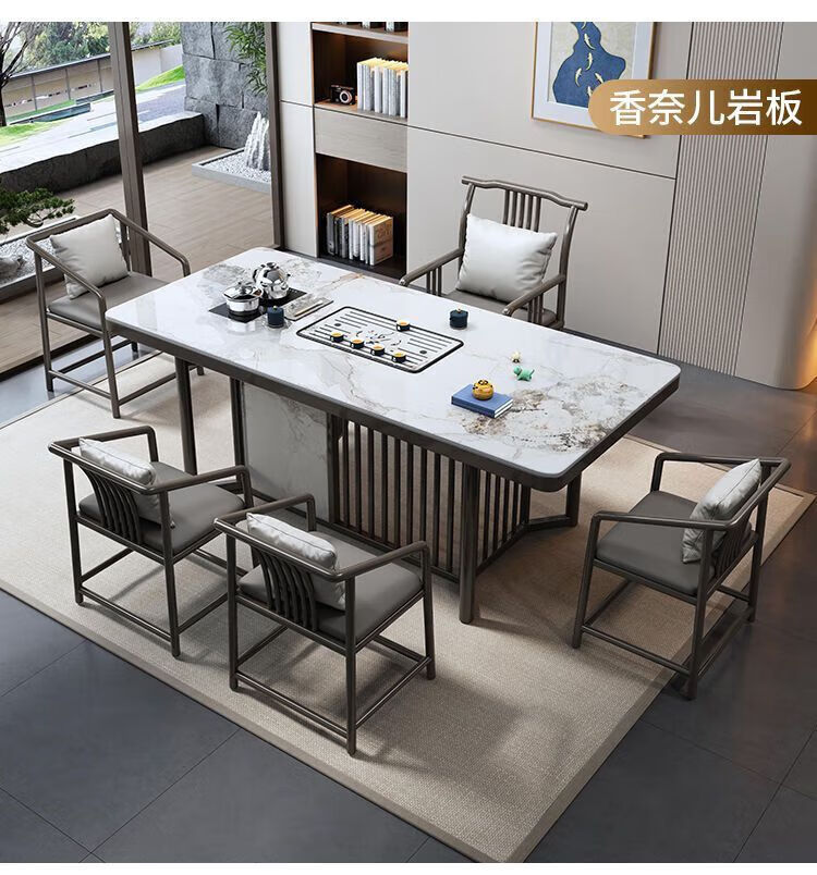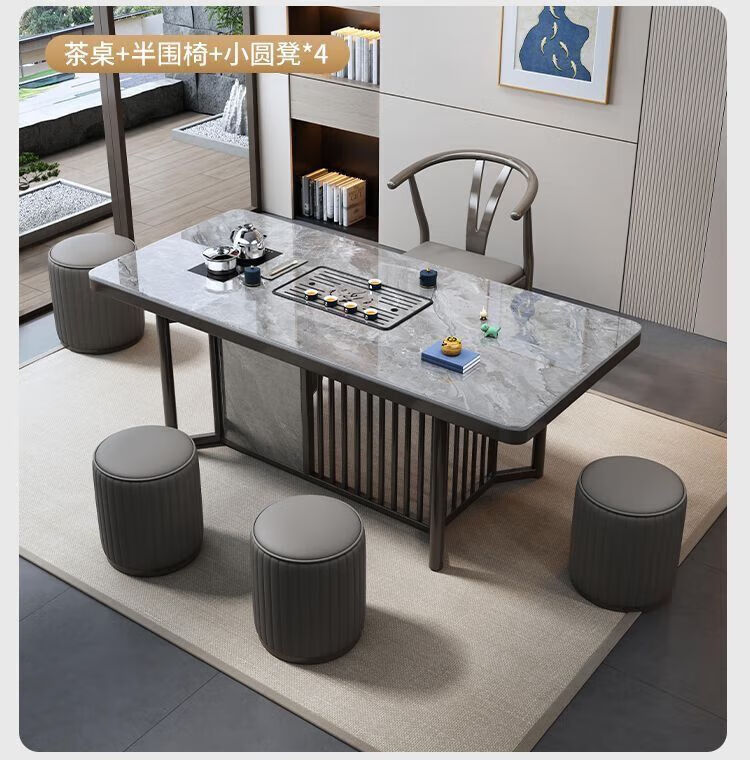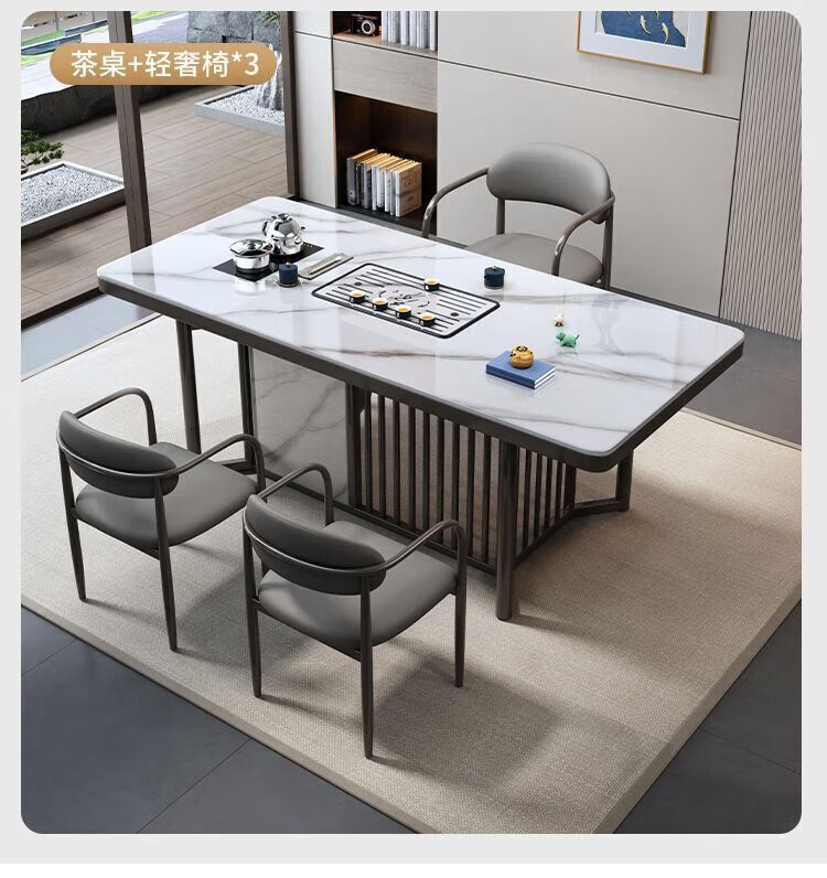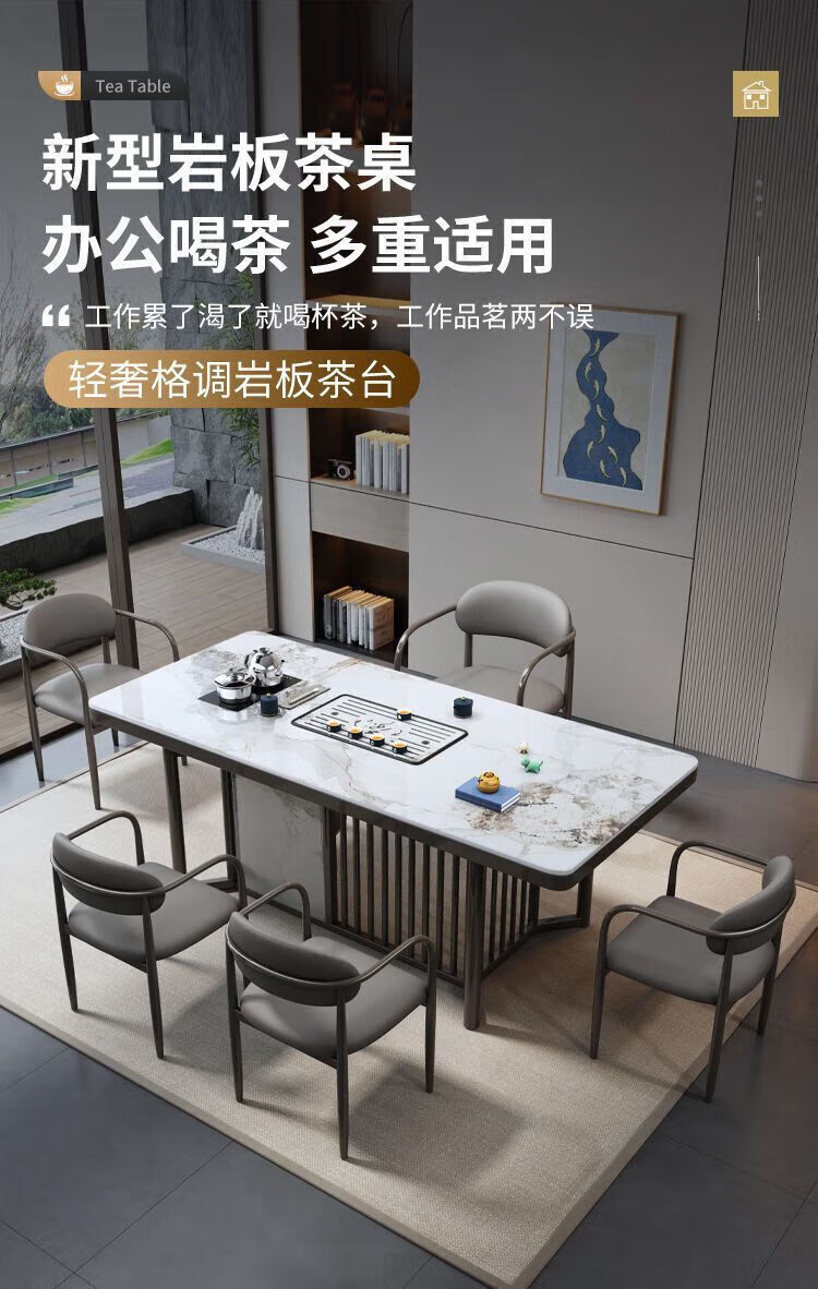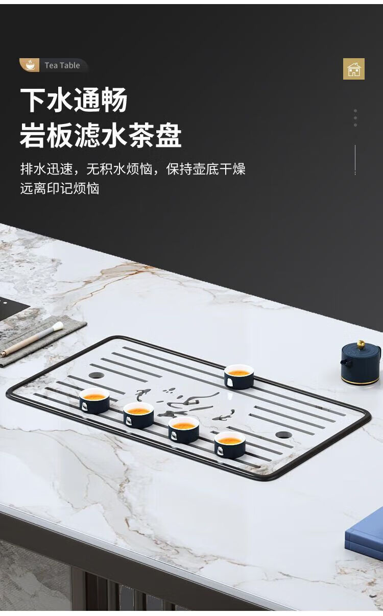 Slate tea table, simple office Kung Fu tea table, living room, modern tea table with water boiler, light luxury coffee table 140*80*75CM Chanel single table comes with smart tea stove