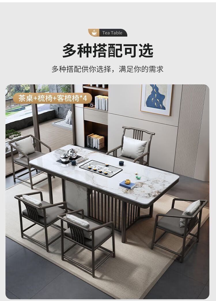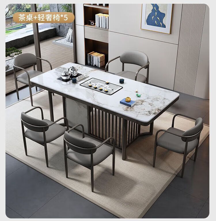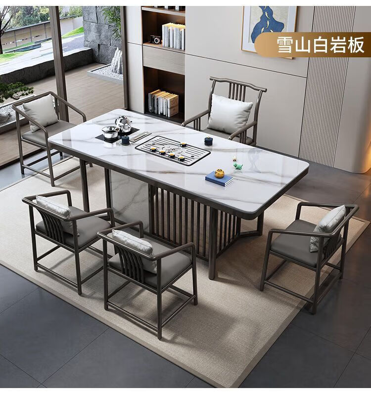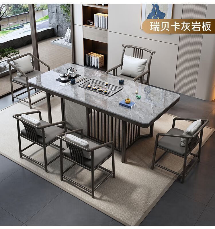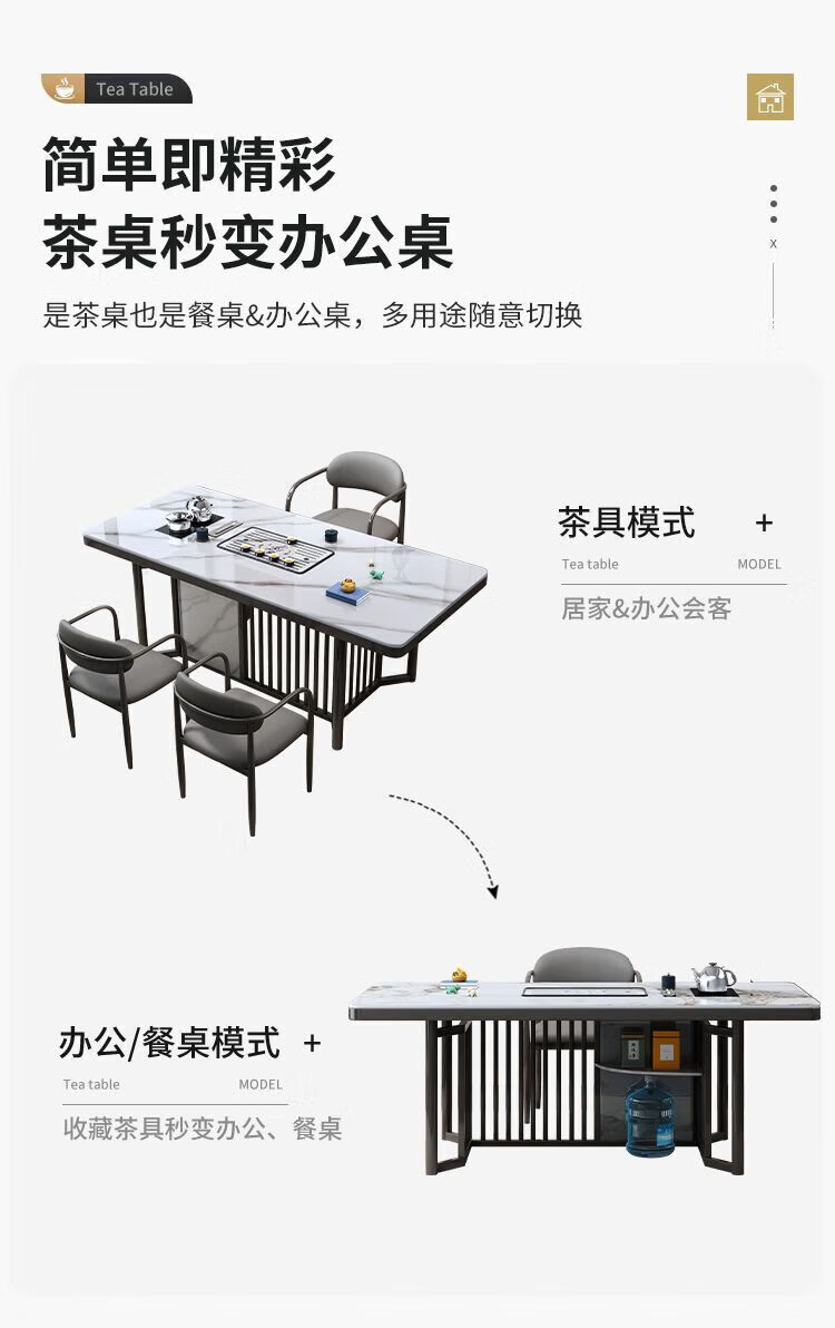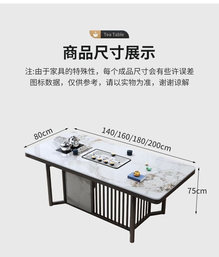 Slate tea table, simple office Kung Fu tea table, living room, modern tea table with water boiler, light luxury coffee table 140*80*75CM Chanel single table comes with smart tea stove