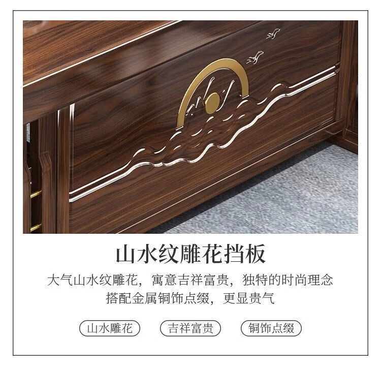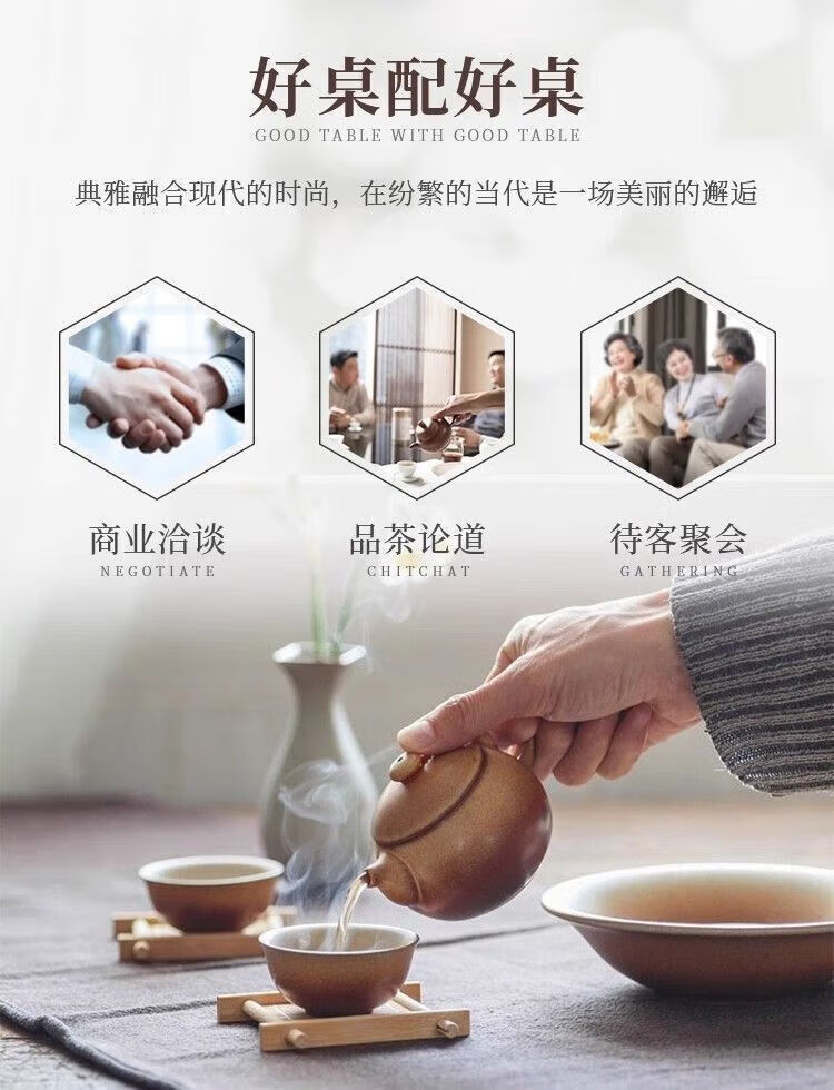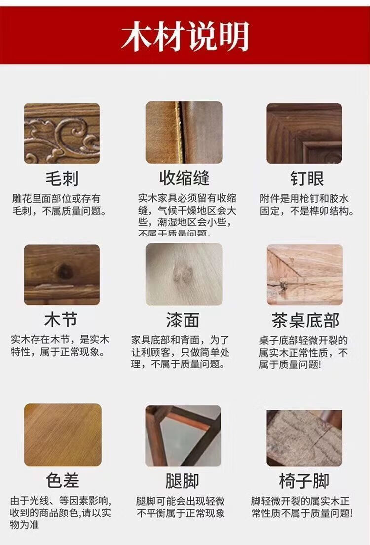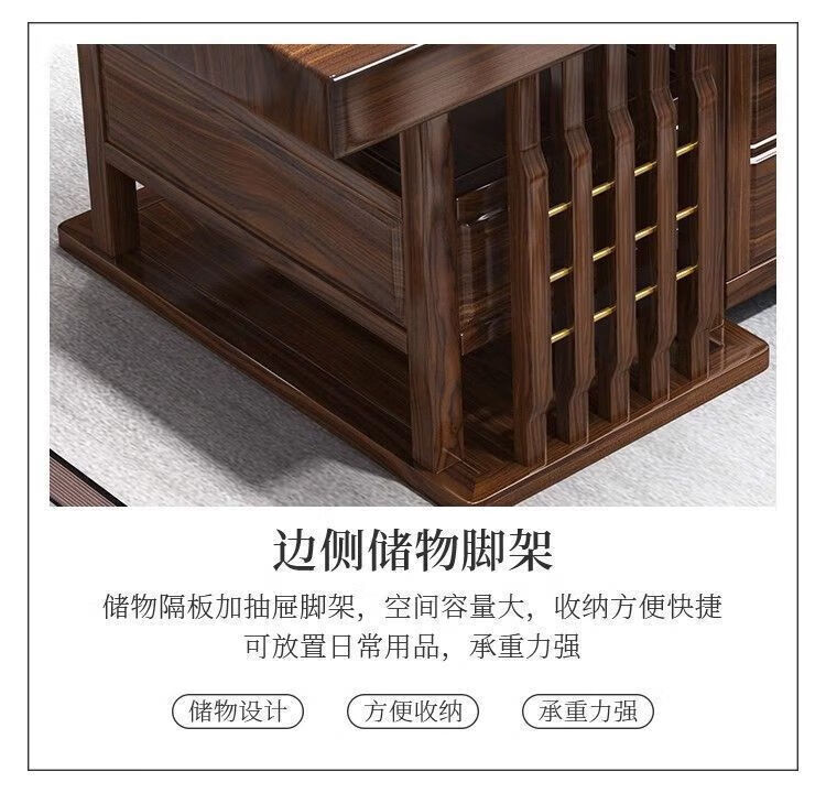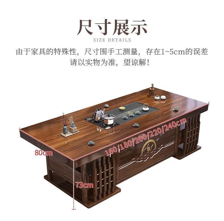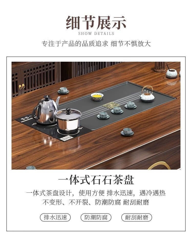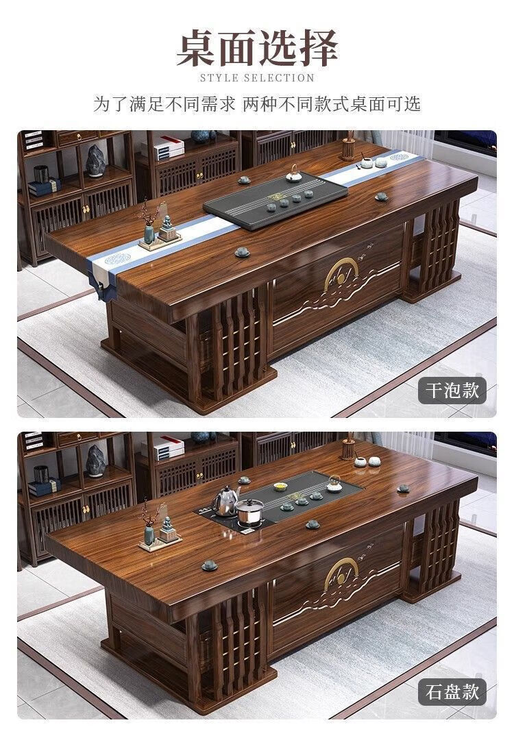 New Chinese style solid wood large board tea table and chair combination, a complete set of home storage tea table, office tea making table, 1.6 meters lucky stone plate style 1 surround chair 4 crescent chairs