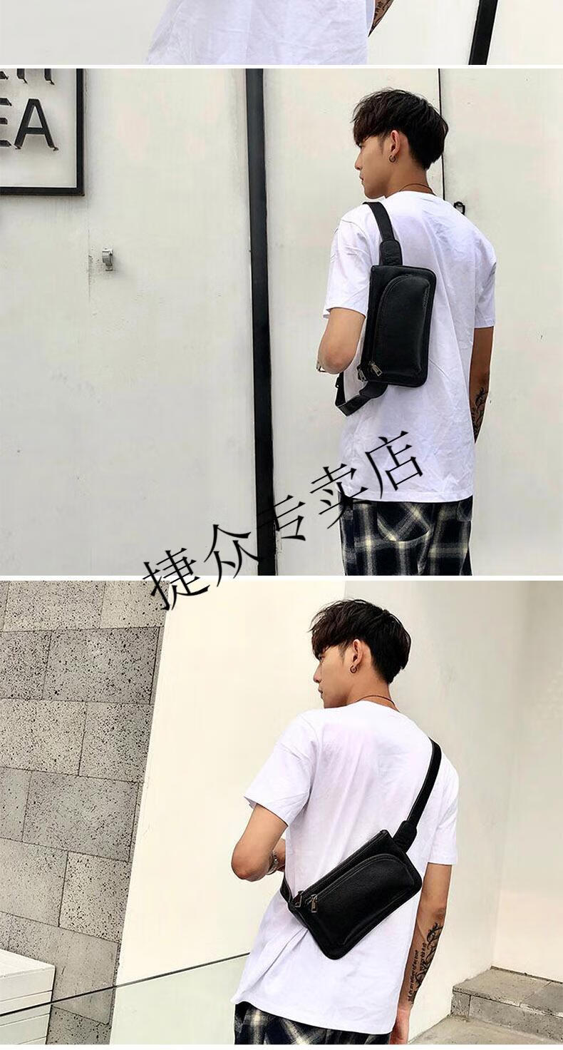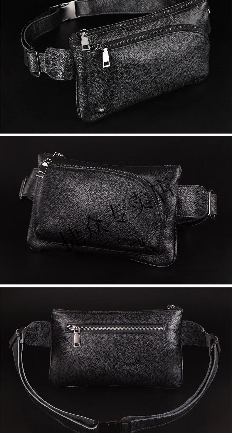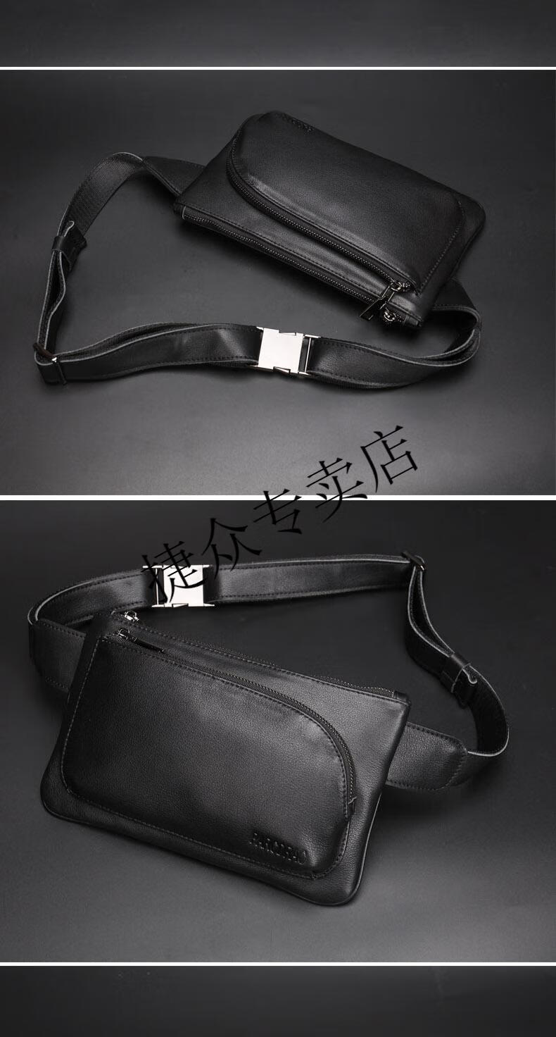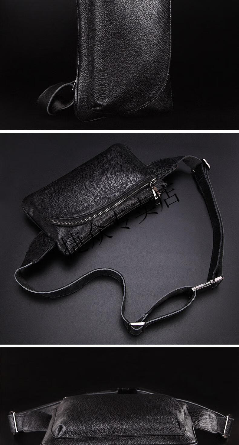 Kangaroo genuine leather men's waist bag mobile phone bag Korean style trendy first-layer cowhide chest bag multi-functional outdoor sports shoulder crossbody bag plain black Napa calfskin