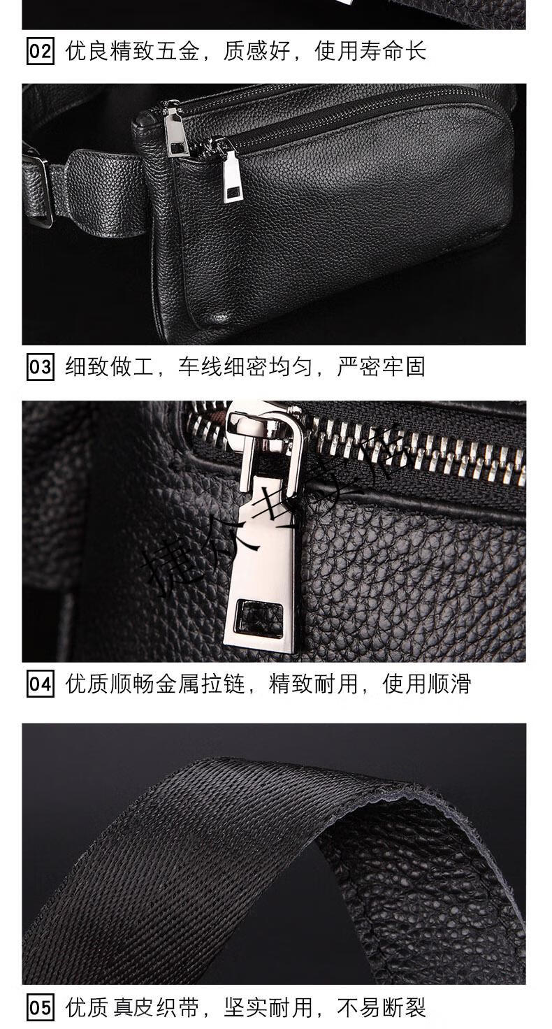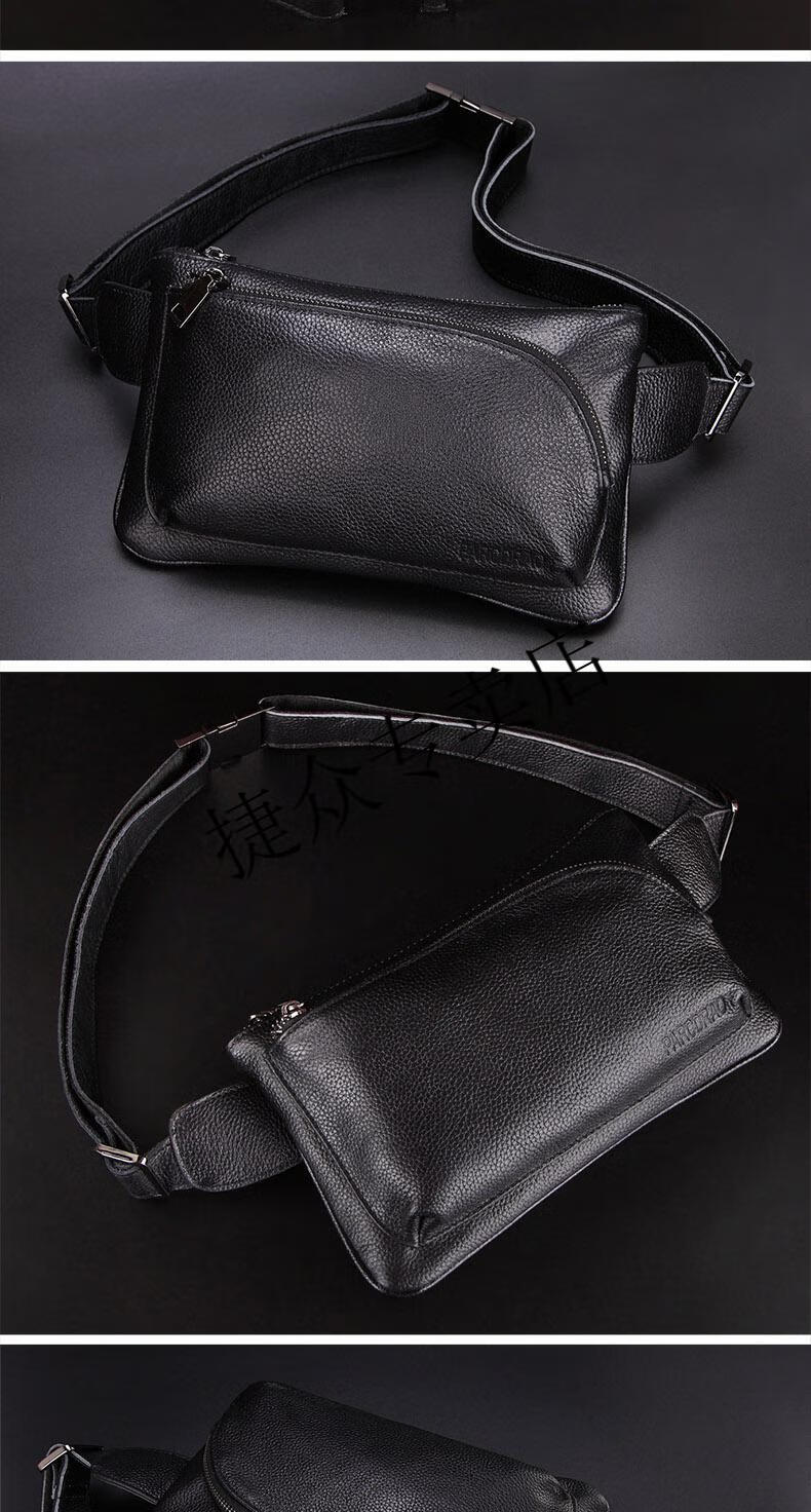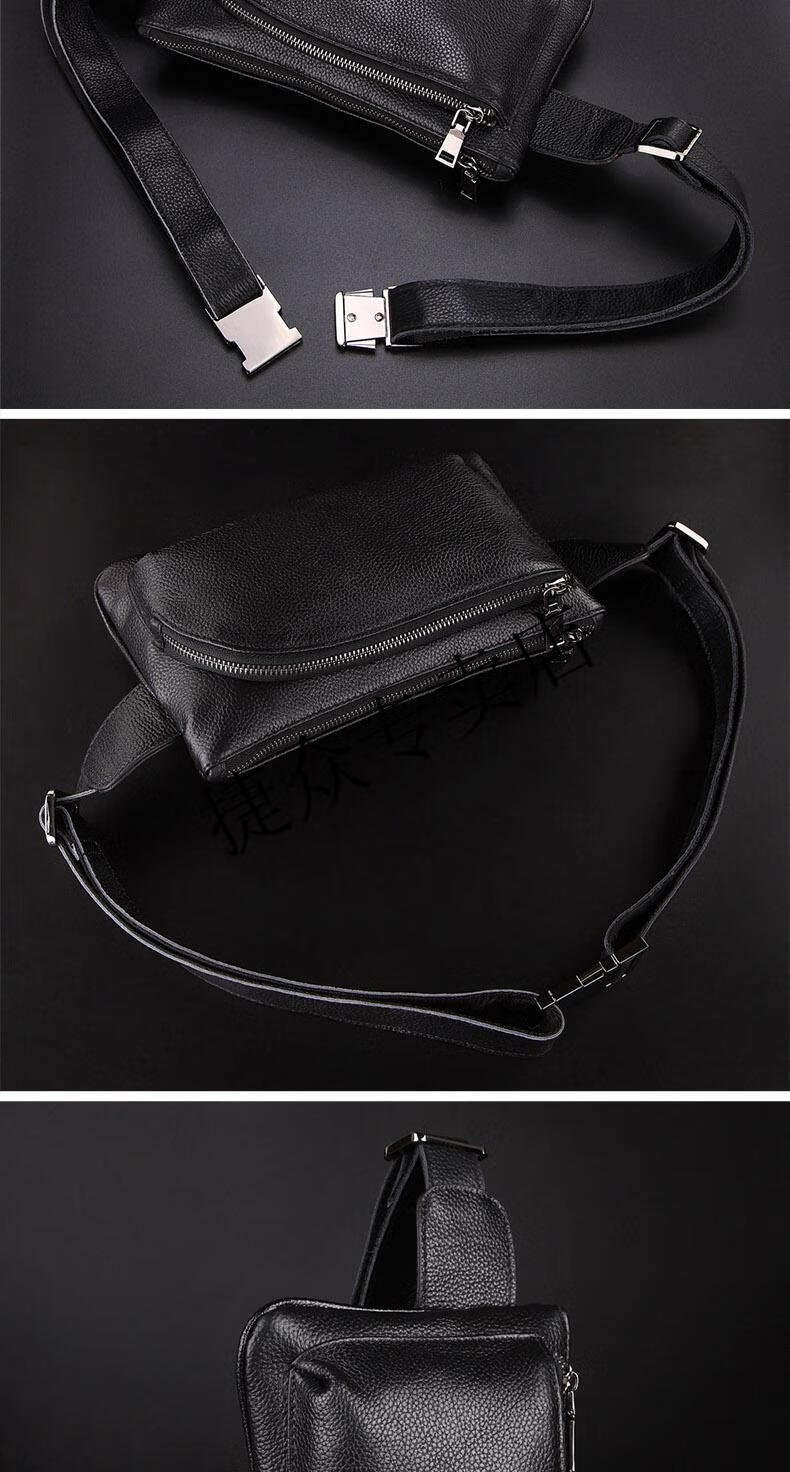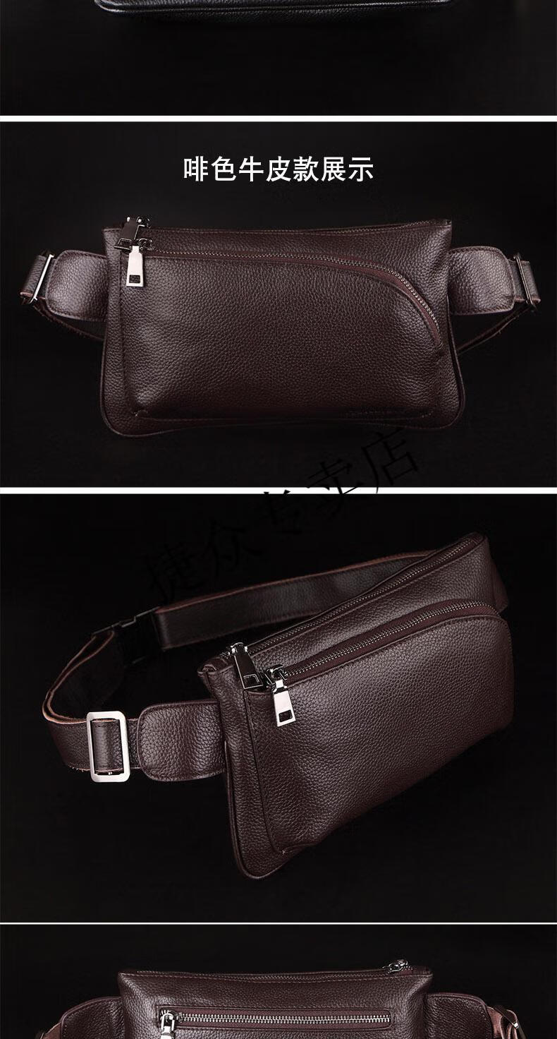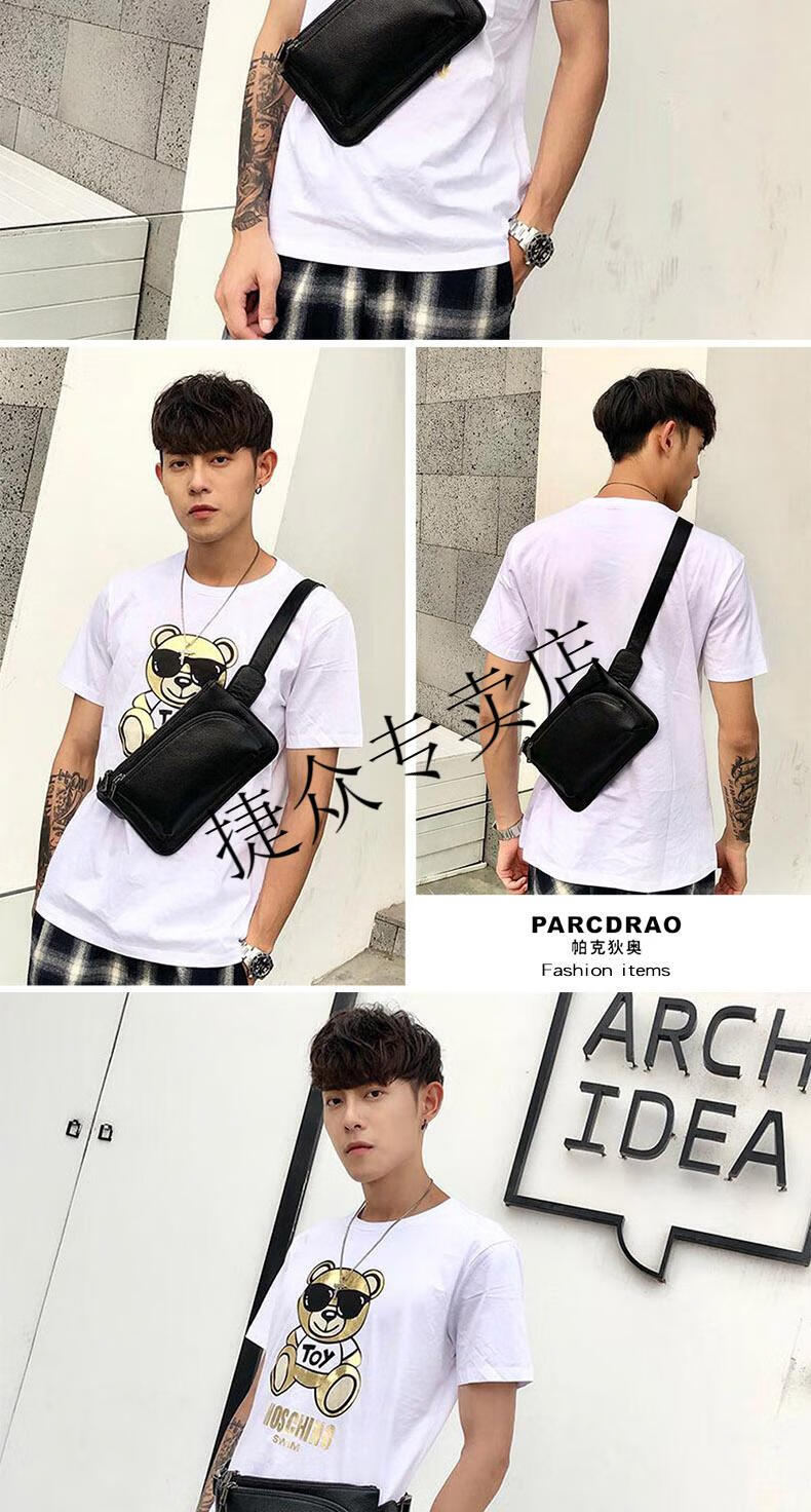 Kangaroo genuine leather men's waist bag mobile phone bag Korean style trendy first-layer cowhide chest bag multi-functional outdoor sports shoulder crossbody bag plain black Napa calfskin