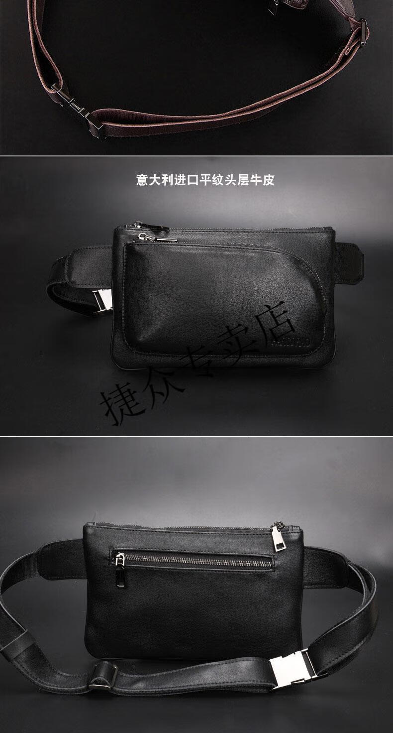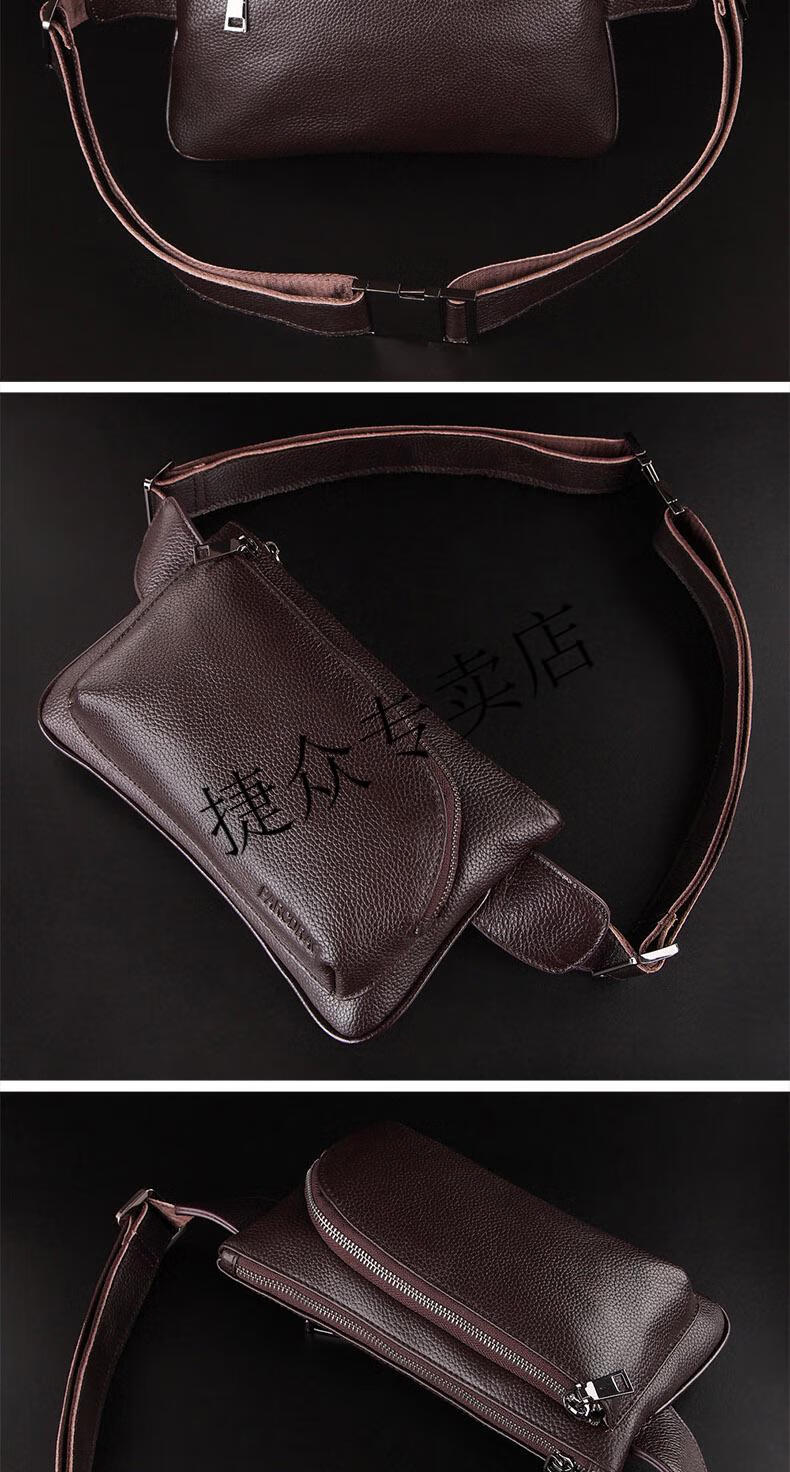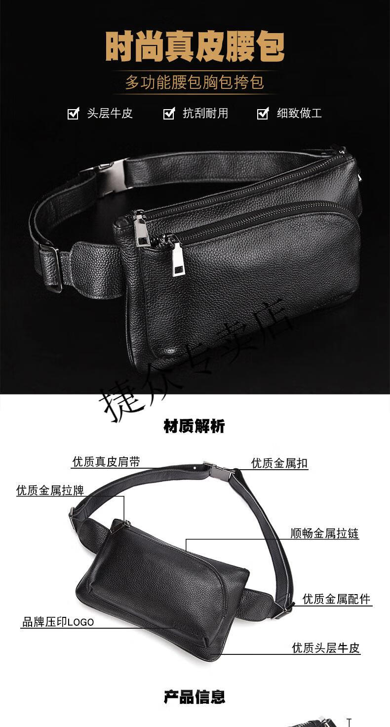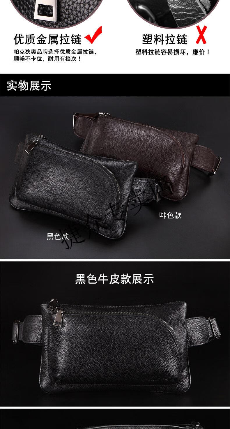 Kangaroo genuine leather men's waist bag mobile phone bag Korean style trendy first-layer cowhide chest bag multi-functional outdoor sports shoulder crossbody bag plain black Napa calfskin