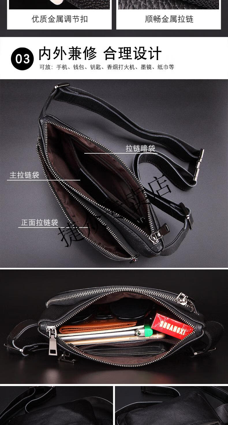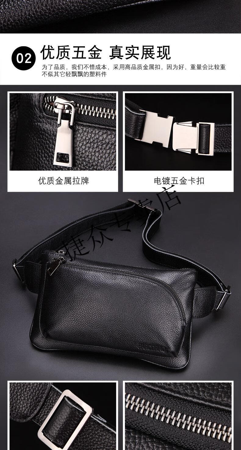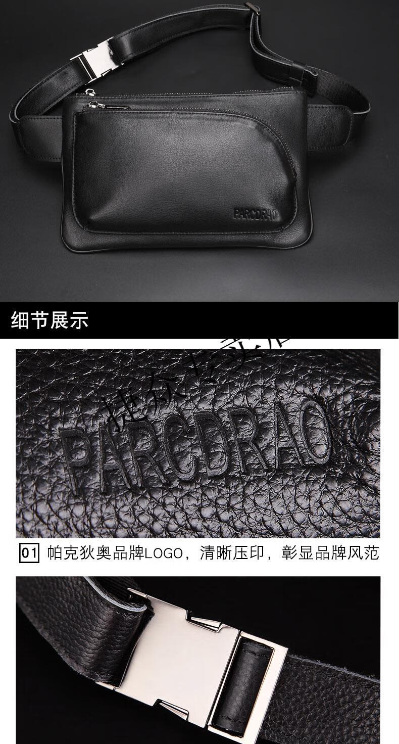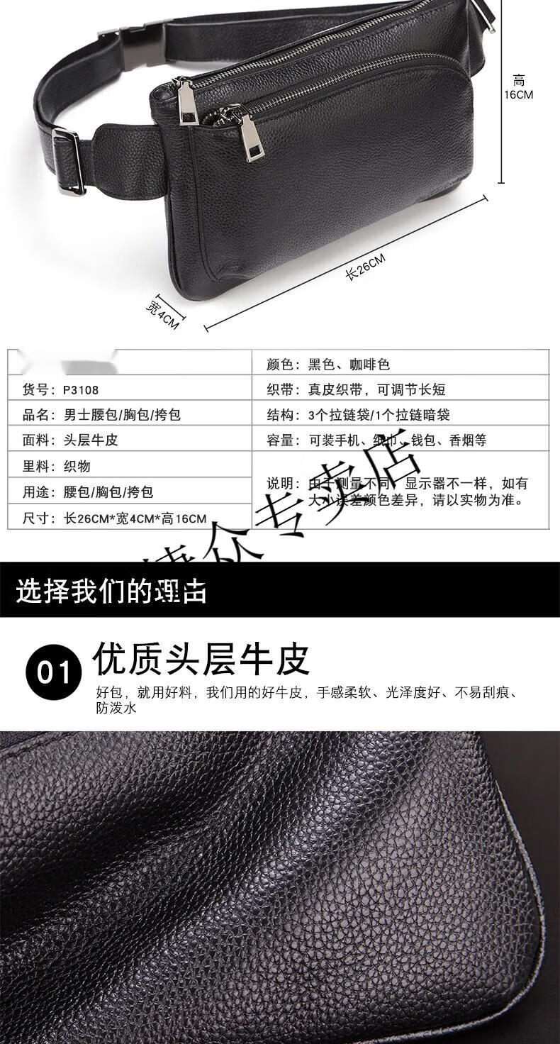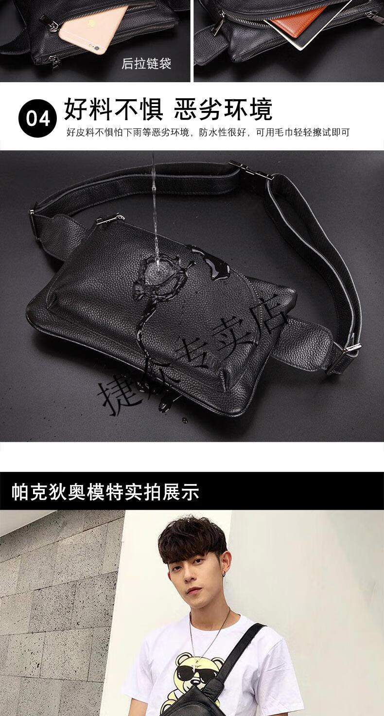 Kangaroo genuine leather men's waist bag mobile phone bag Korean style trendy first-layer cowhide chest bag multi-functional outdoor sports shoulder crossbody bag plain black Napa calfskin