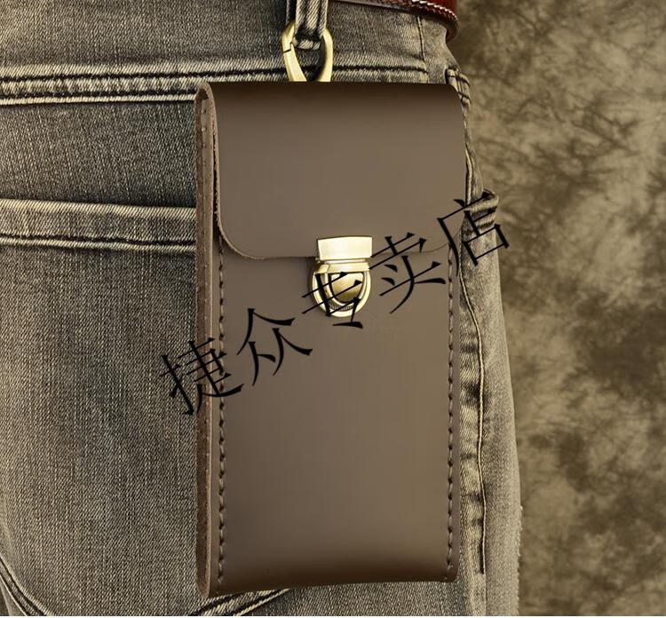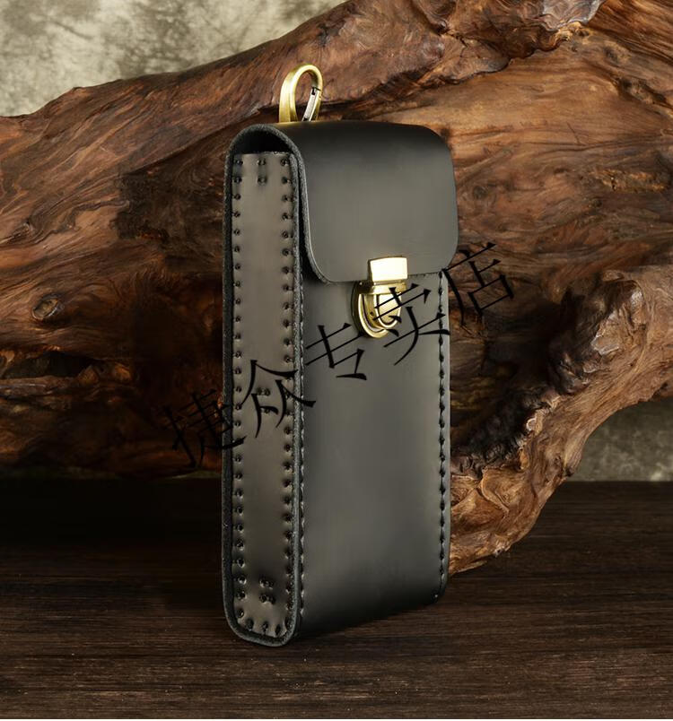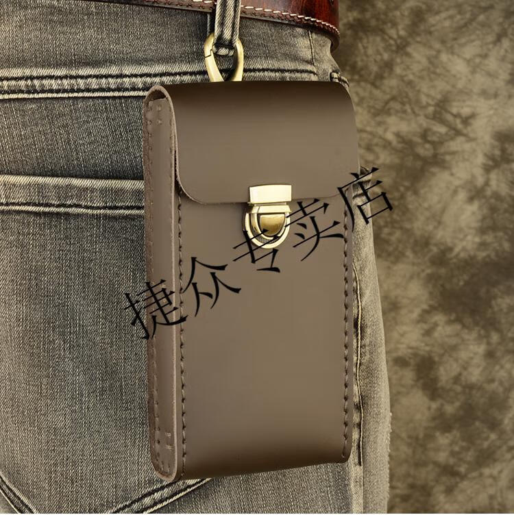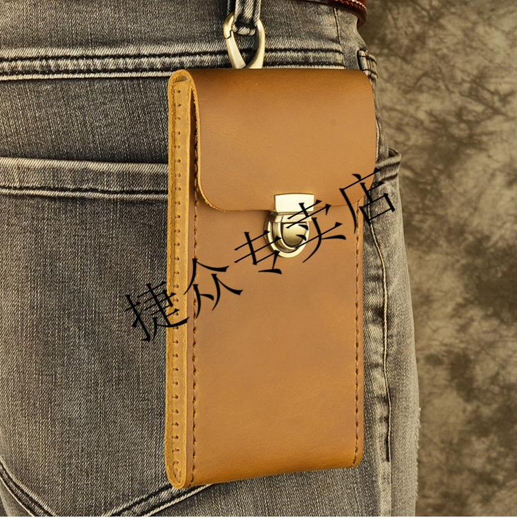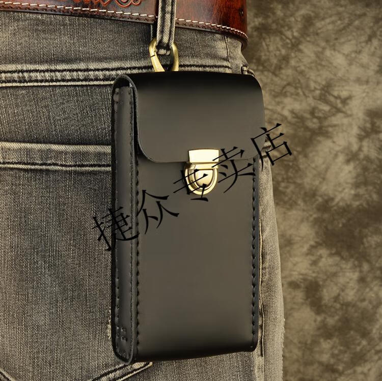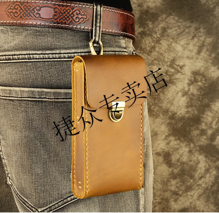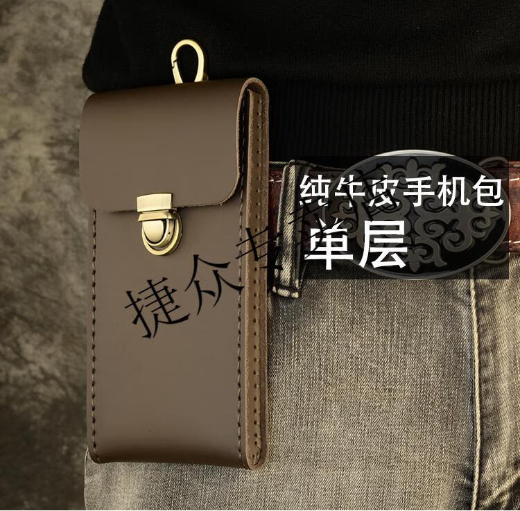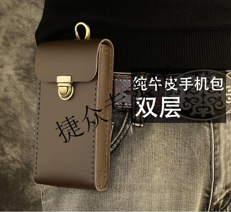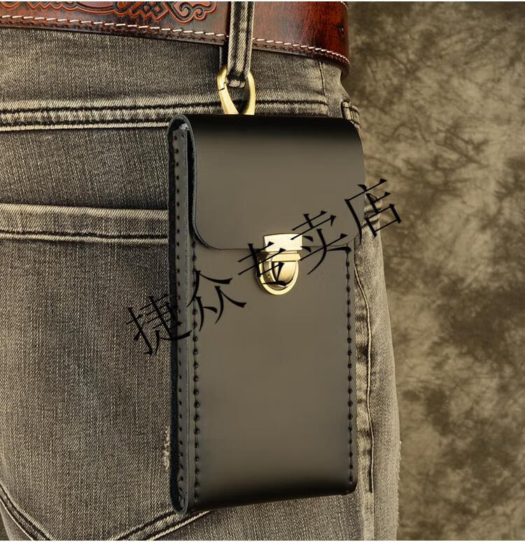 Kangaroo first layer cowhide belt bag for men genuine leather belt bag hard cowhide waist bag pure cowhide large screen smartphone bag black single layer small (16.5x8) cm pack 1