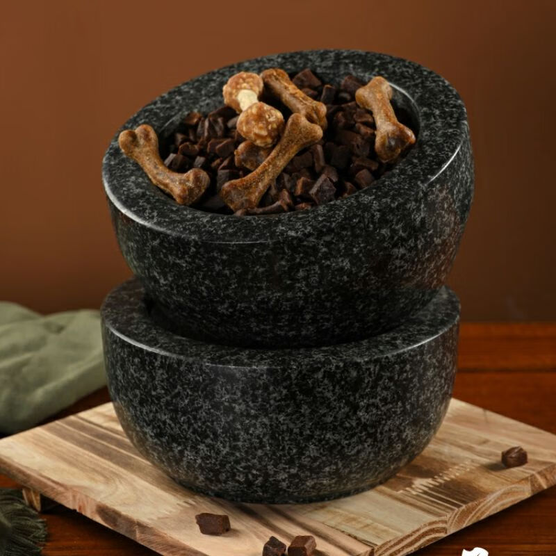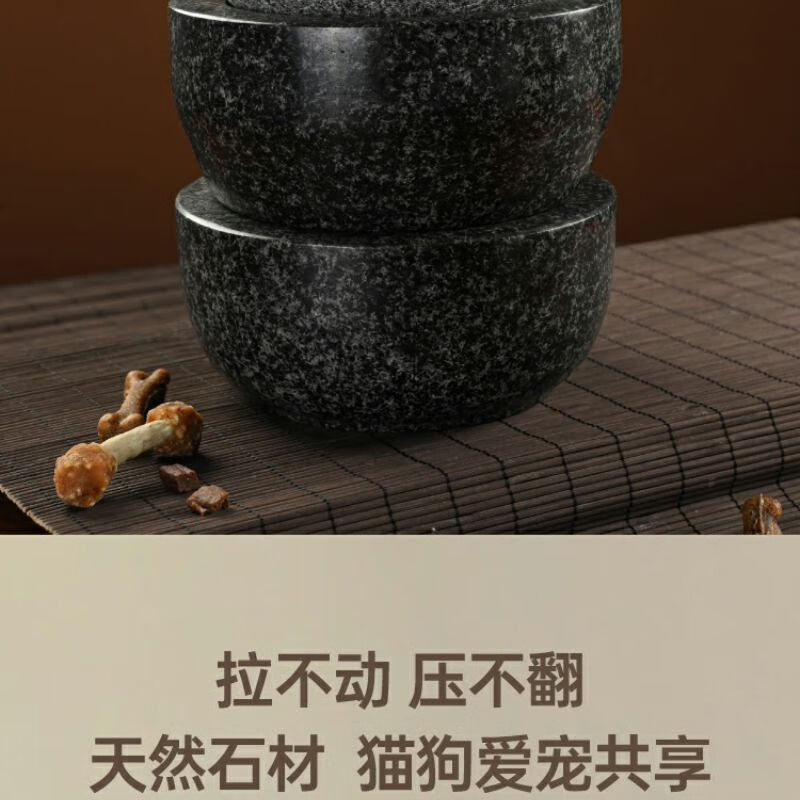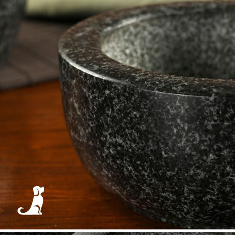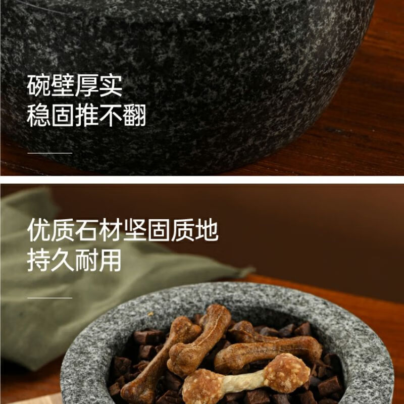 Shantou Lincun stone dog bowl large dog bowl cat bowl double bowl food bowl dog cat bowl water bowl anti-knock over rice bowl stone bowl diameter 18 cm