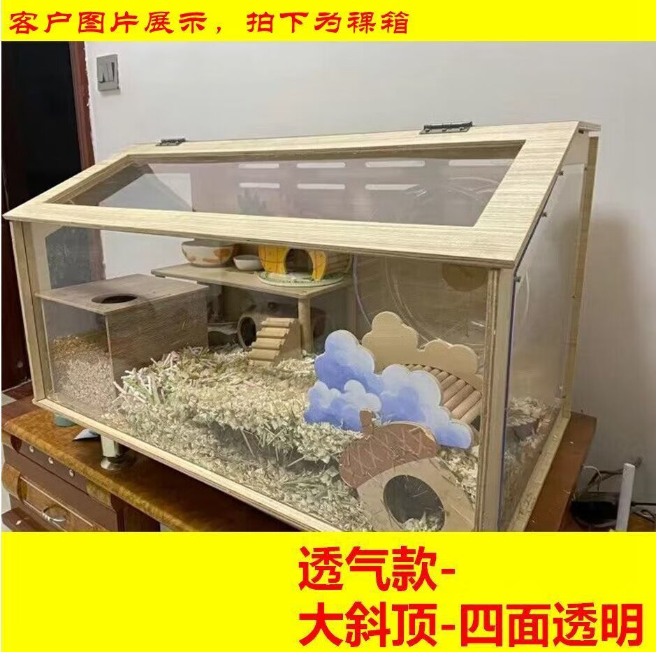 Shantou Lincun hamster wooden cage rutin chicken handmade diy assembly simple Ruicheng board home large sloping roof transparent on all sides 804545cm