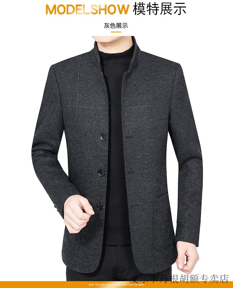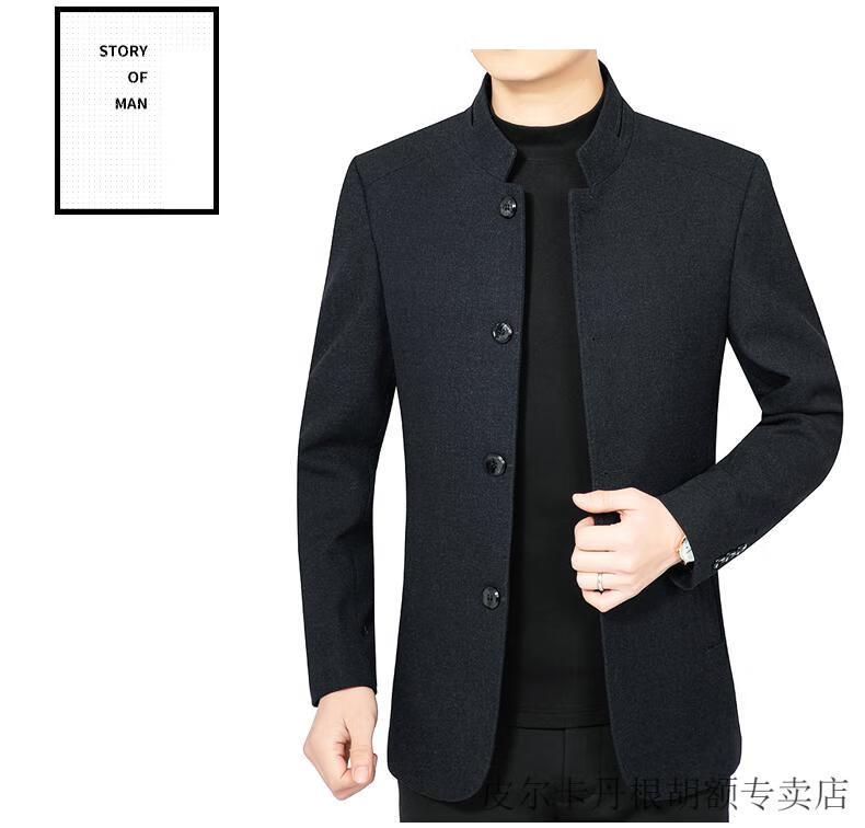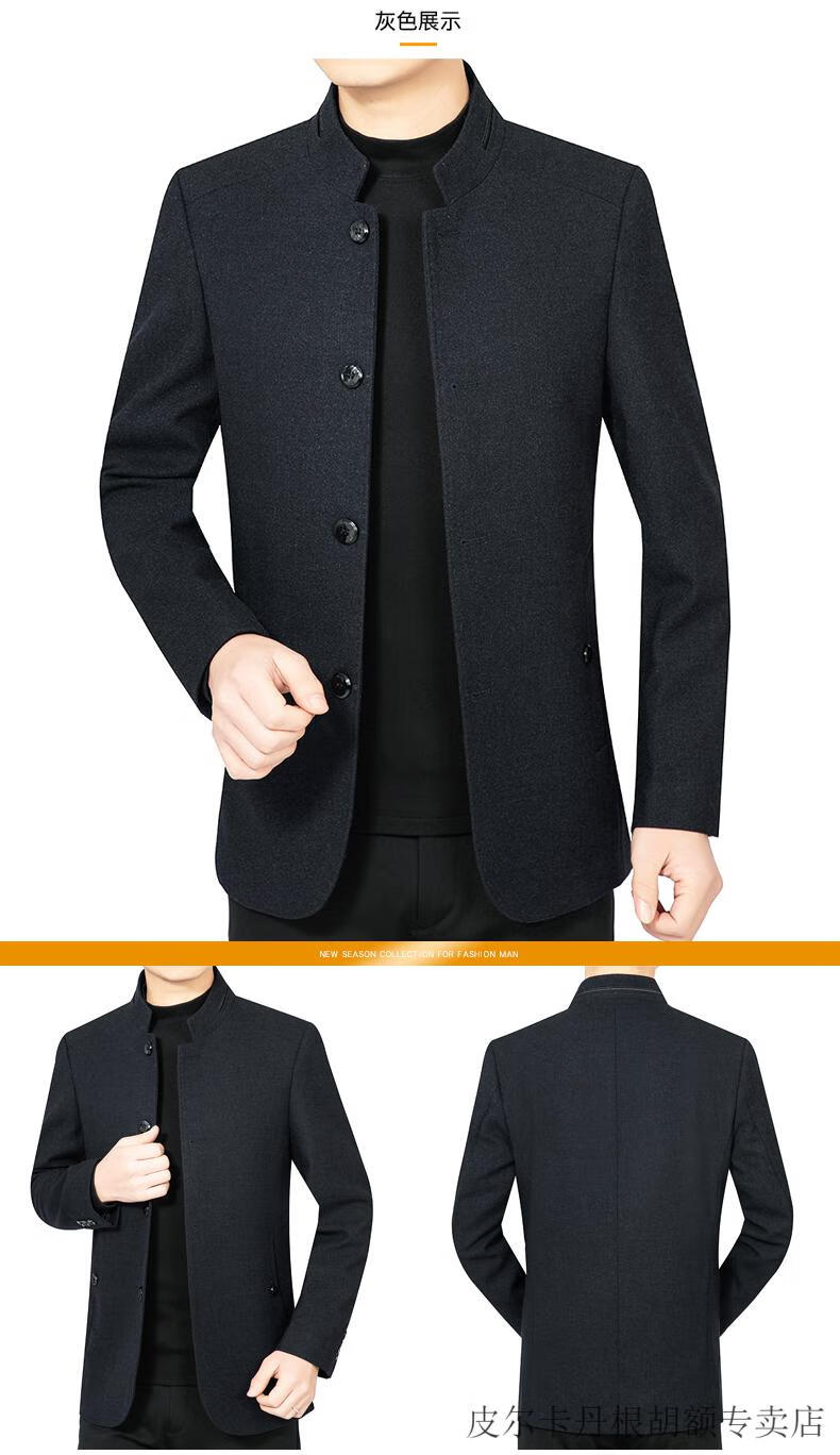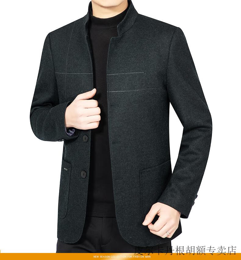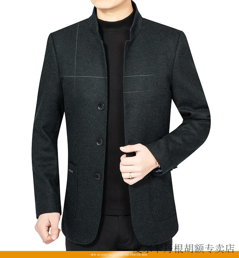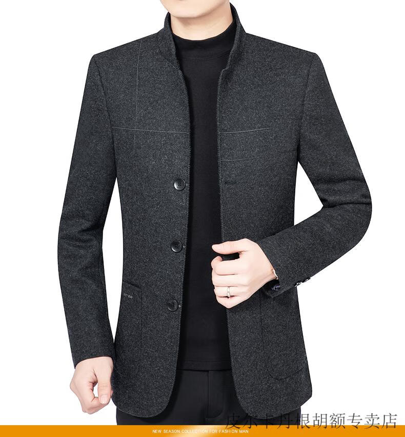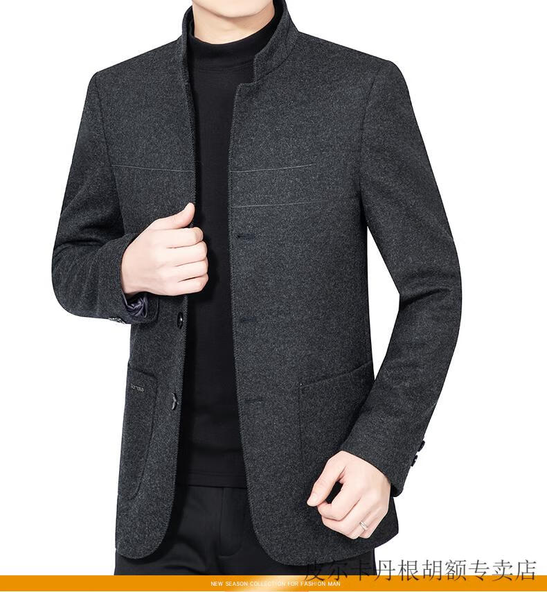 Pierre Cardin woolen jacket for middle-aged men 2025 spring and autumn new men's casual daddy wool woolen jacket tunic black gray four buttons M 170 size (90-115Jin Jin equals 0.5 kg)