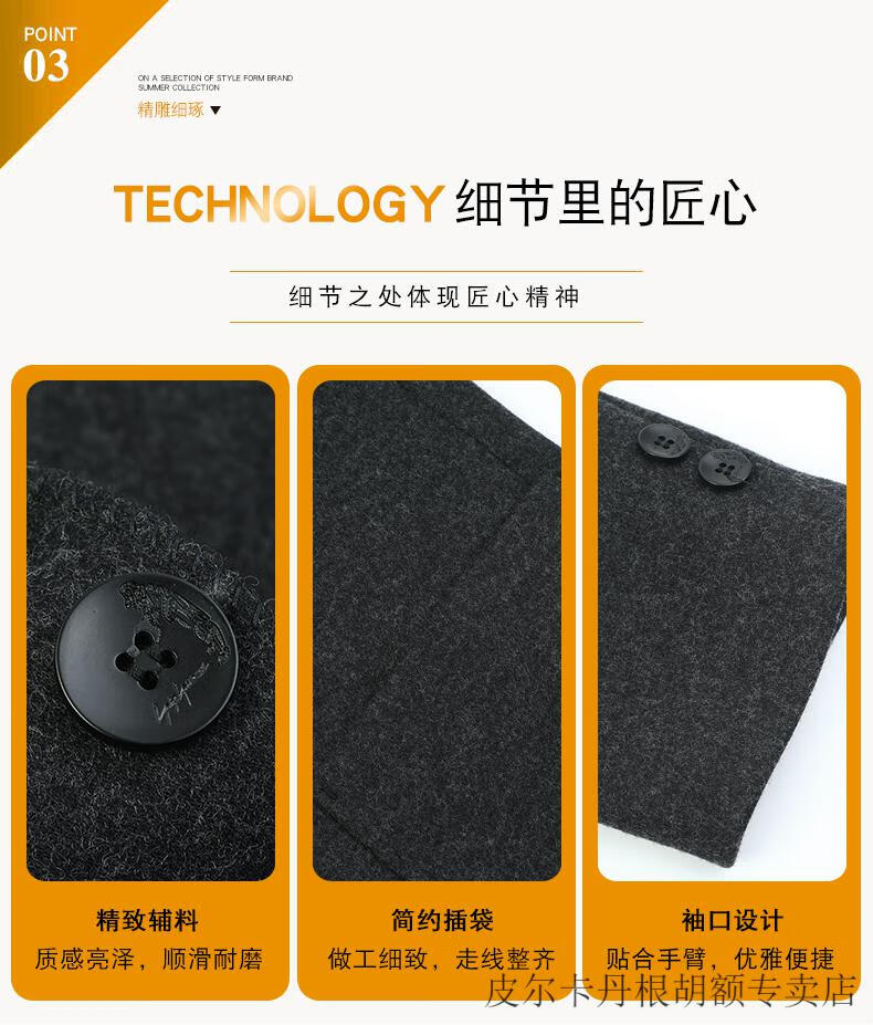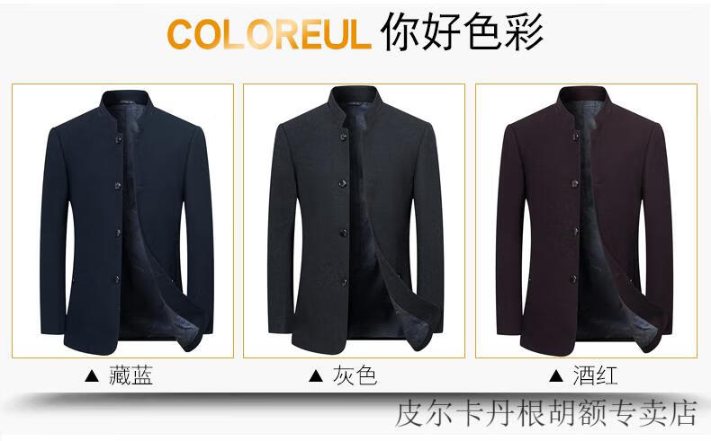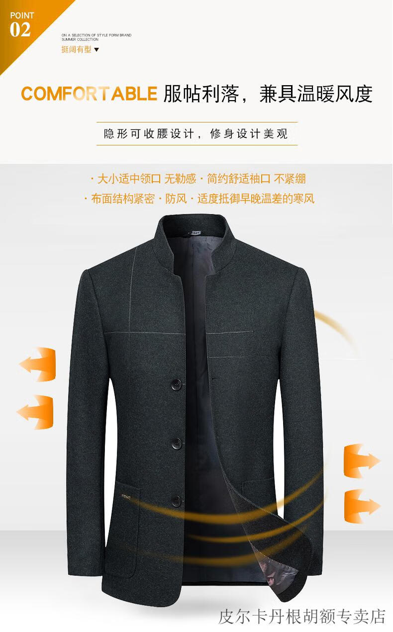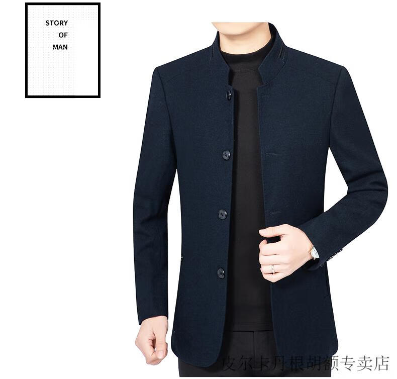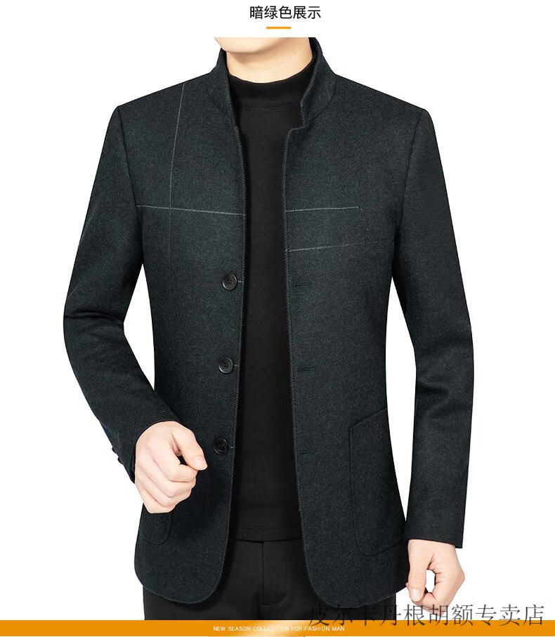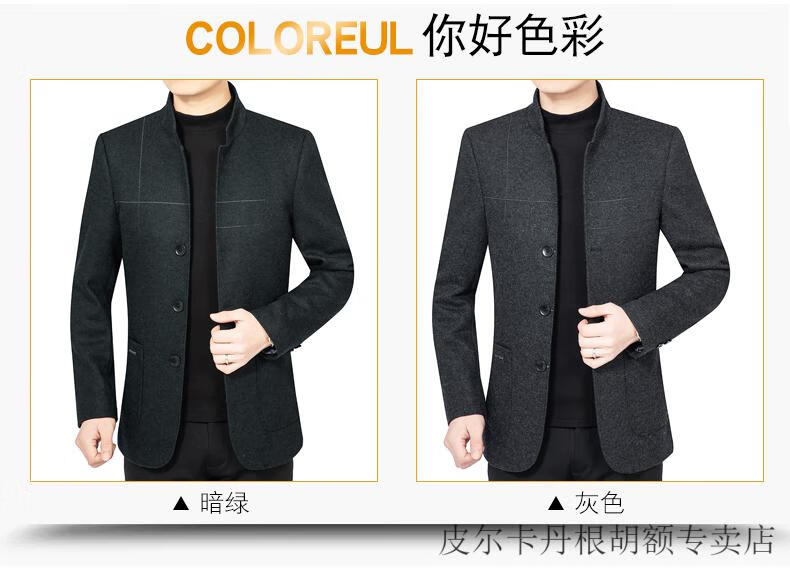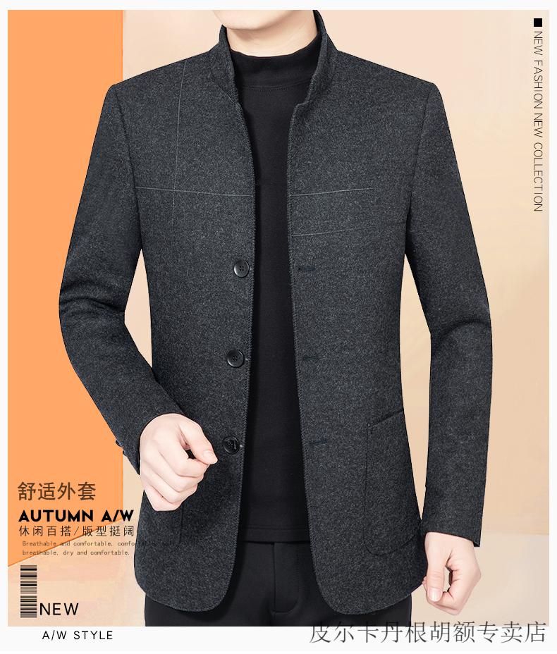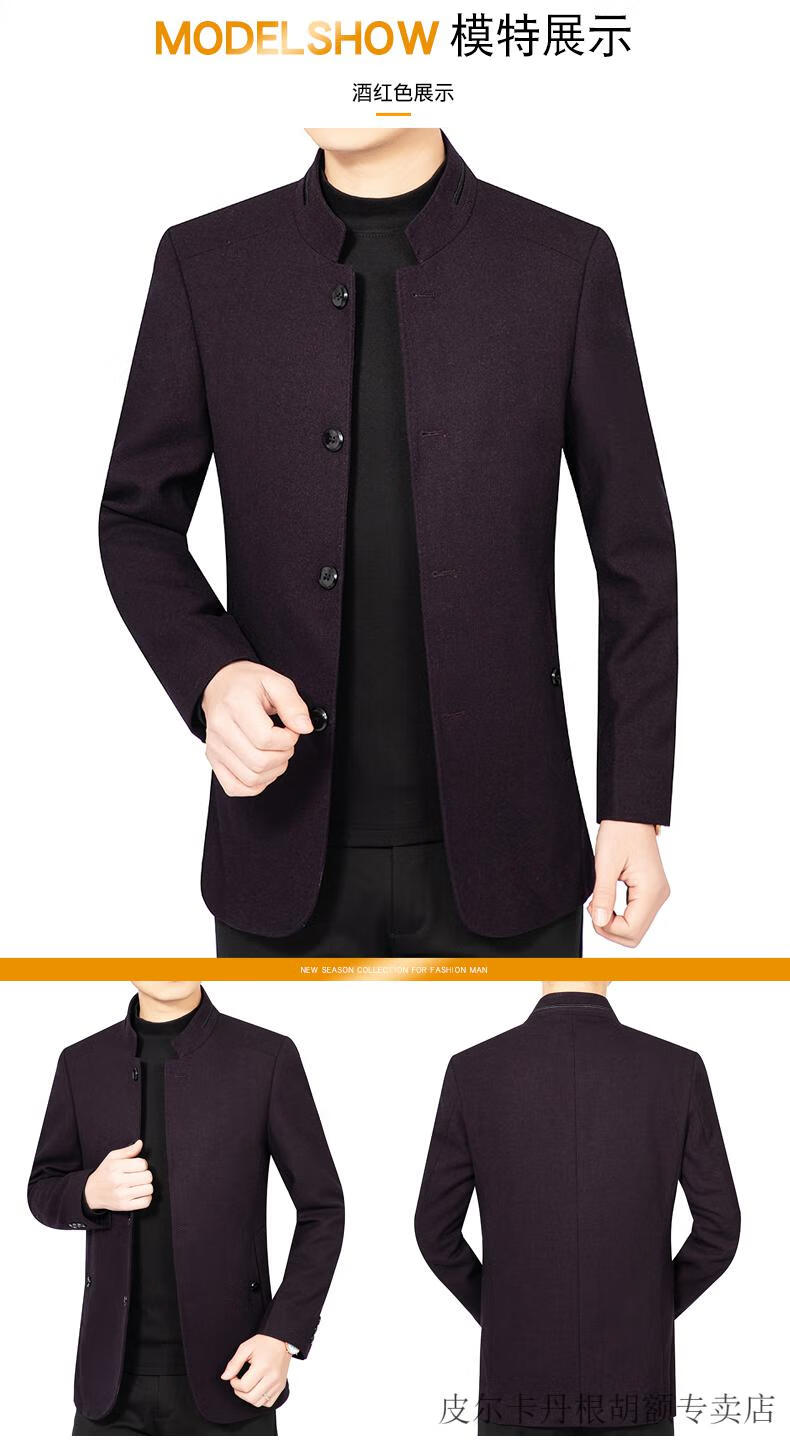 Pierre Cardin woolen jacket for middle-aged men 2025 spring and autumn new men's casual daddy wool woolen jacket tunic black gray four buttons M 170 size (90-115Jin Jin equals 0.5 kg)