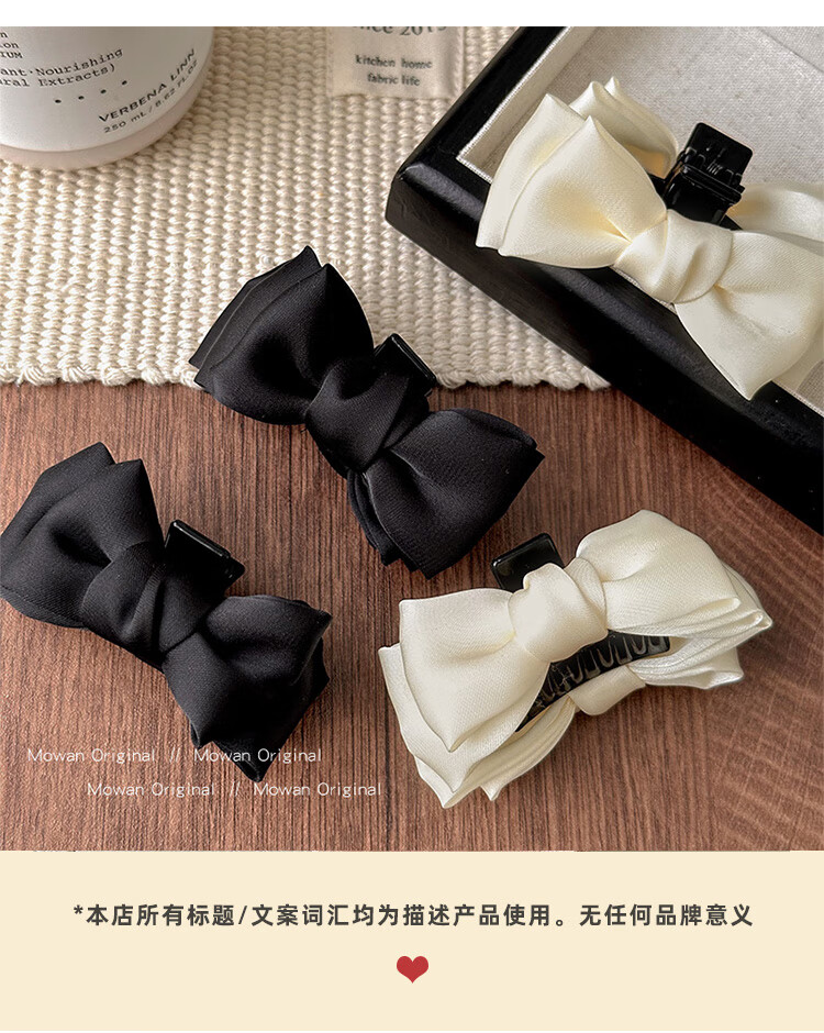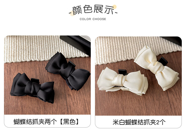 Morning stars sweet black and white double-sided bow hair clip for the back of women's head 2025 new ball head temperament hair clip autumn and winter headwear two bow clips black