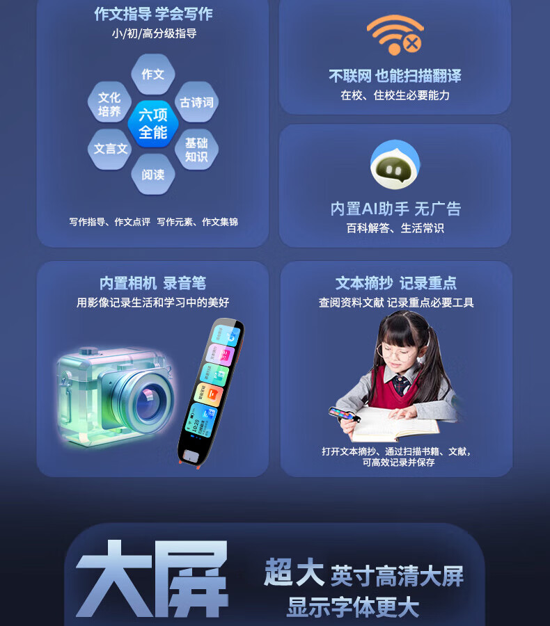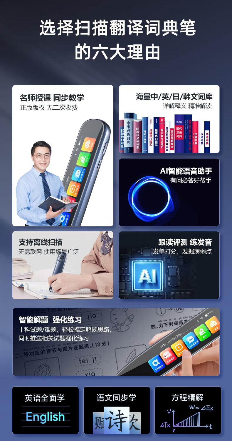 Xuexisi 2025 new English reading pen universal scanning pen primary school junior high school high school students textbook simultaneous translation dictionary pen book scanning pen learning machine upgraded version unlimited books + standard pronunciation + offline scanning 4GB