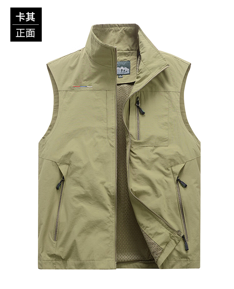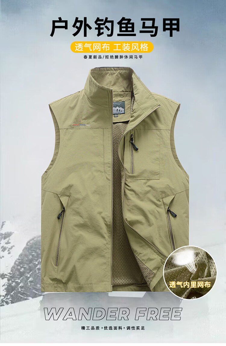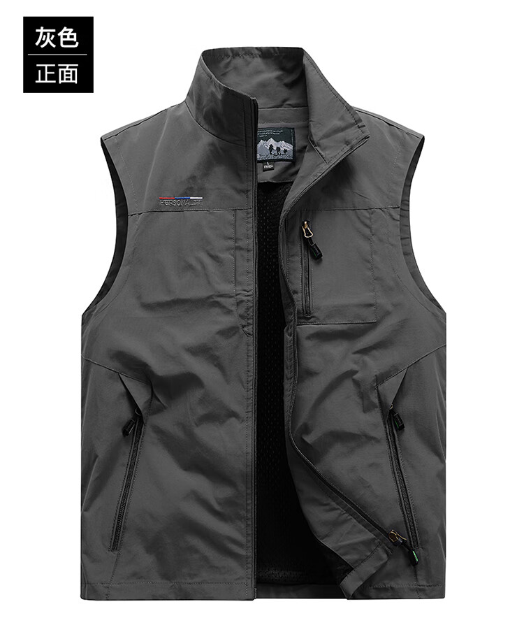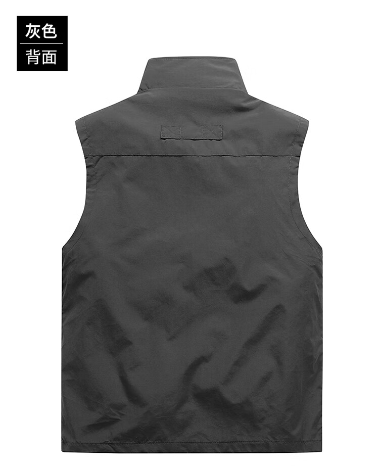 洺威保登工装男背心休闲马甲春秋款户外多口袋钓鱼坎肩立领摄影马夹夏薄款 灰色(加绒双面穿) 2XL (建议140-155斤)