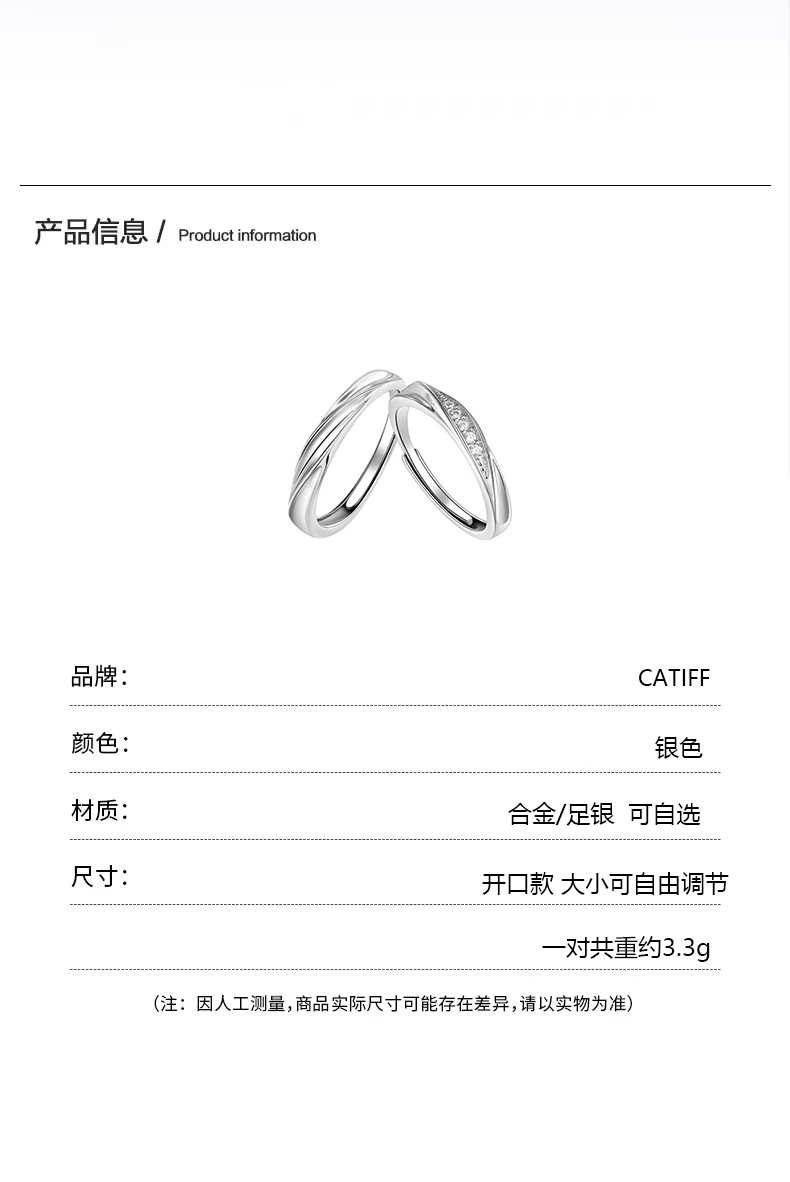 CATIFFS 925 sterling silver couple rings, a pair of Möbius rings, a pair of ring openings, a plain ring, a Valentine's Day gift for your girlfriend, a pair of couple models to share the love together