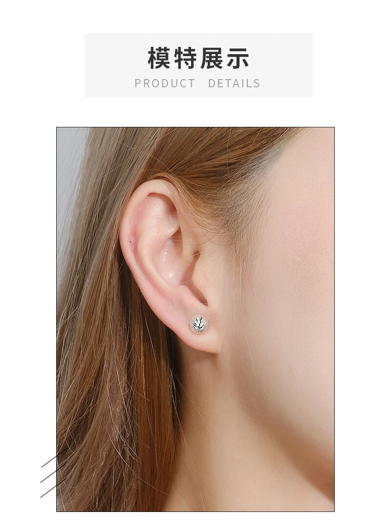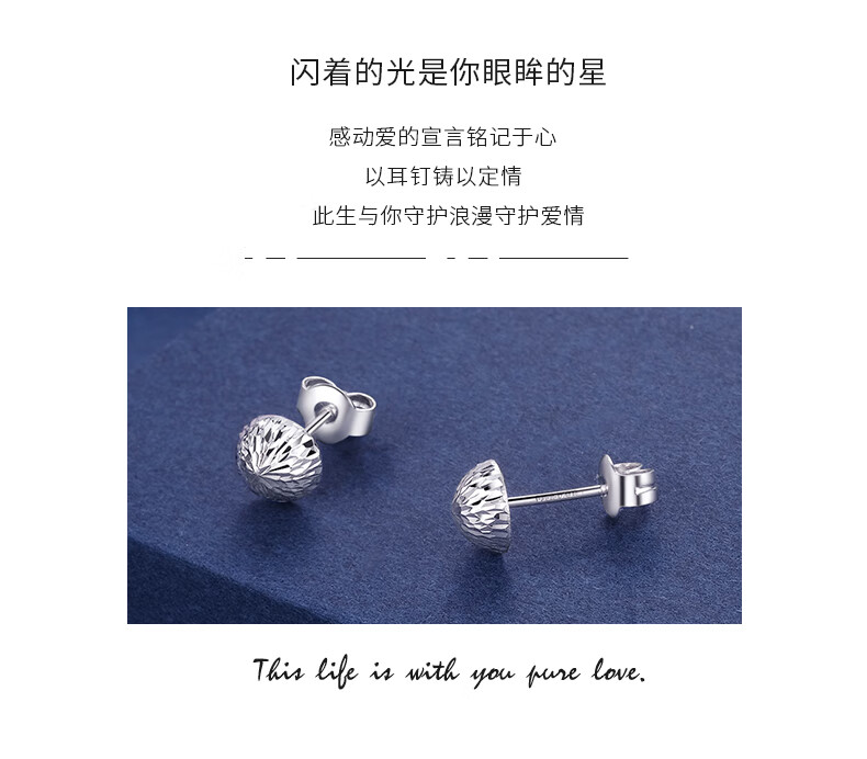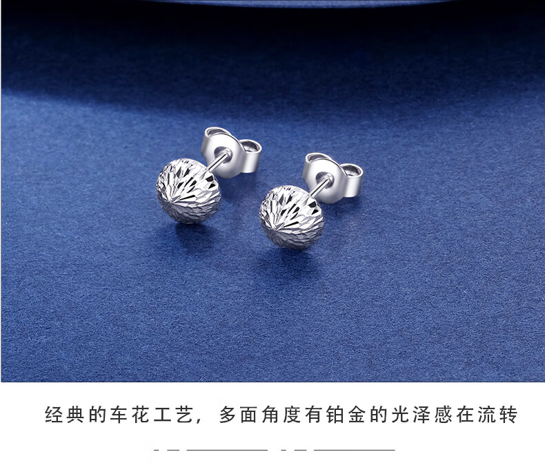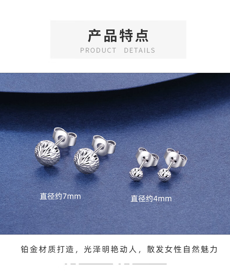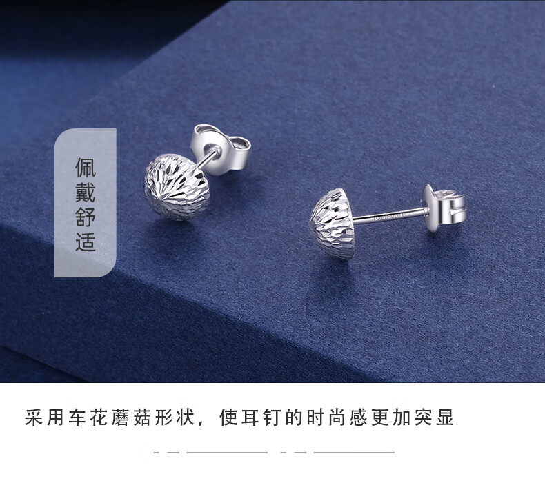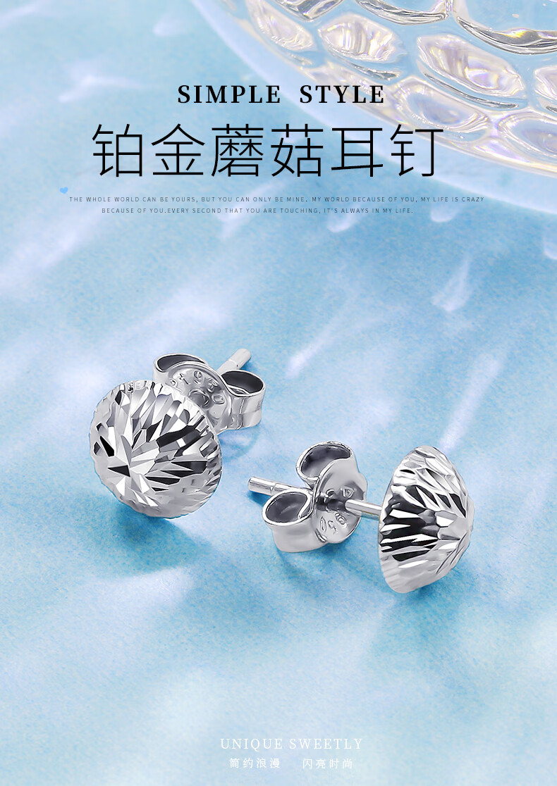 Jinduoxi Platinum PT950 Earrings, Carved Mushroom Earrings, Platinum White Gold Earrings, Women's Earrings, Women's Chinese Valentine's Day Gifts, Weight Approximately 1.3-1.5g, One Pair (About 4mm in Diameter)